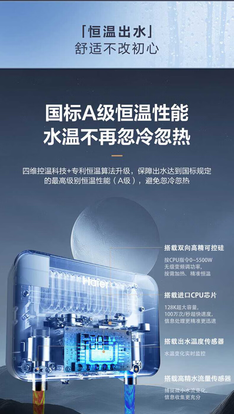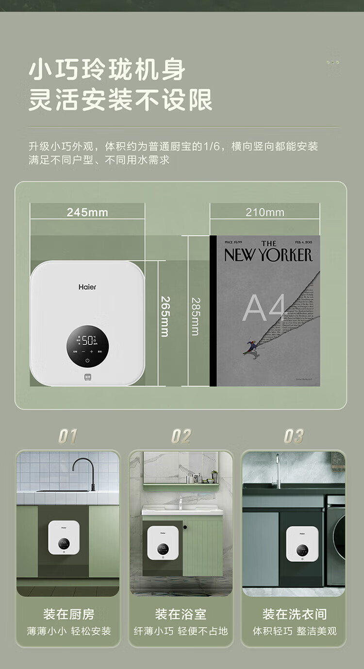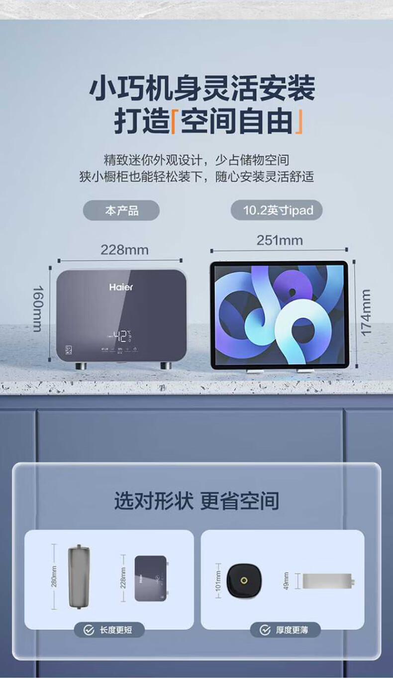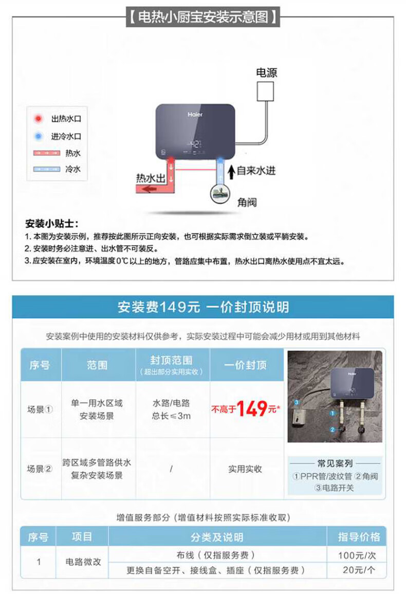 海尔(Haier)热水器即热式小厨宝电热水器电即热 5500W变频即开即热 小尺寸热水无限供应55MINI 0L 5500W 55mini蓝