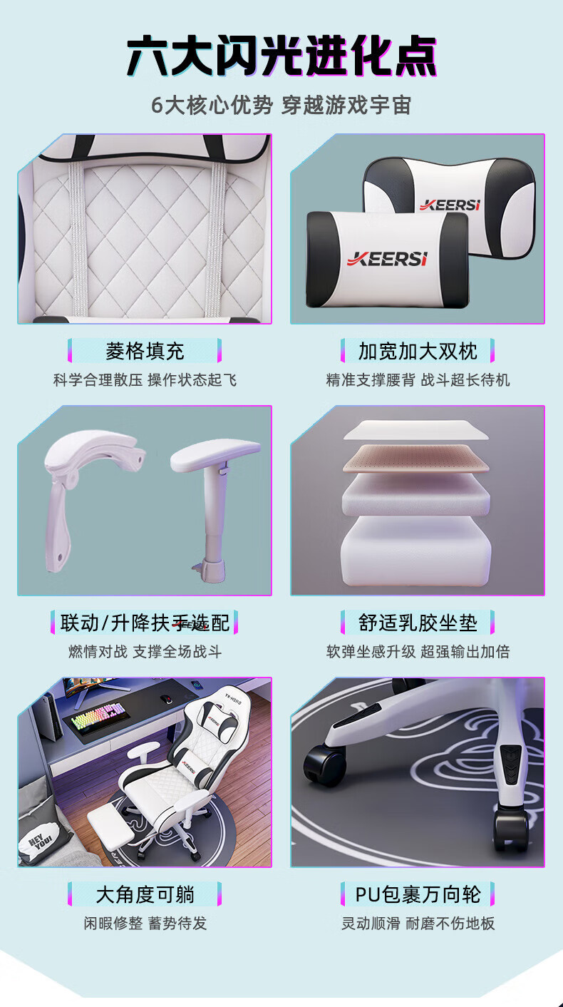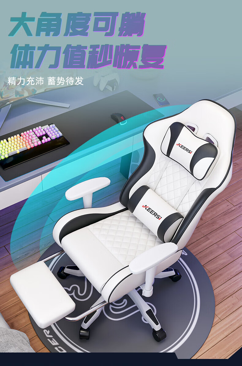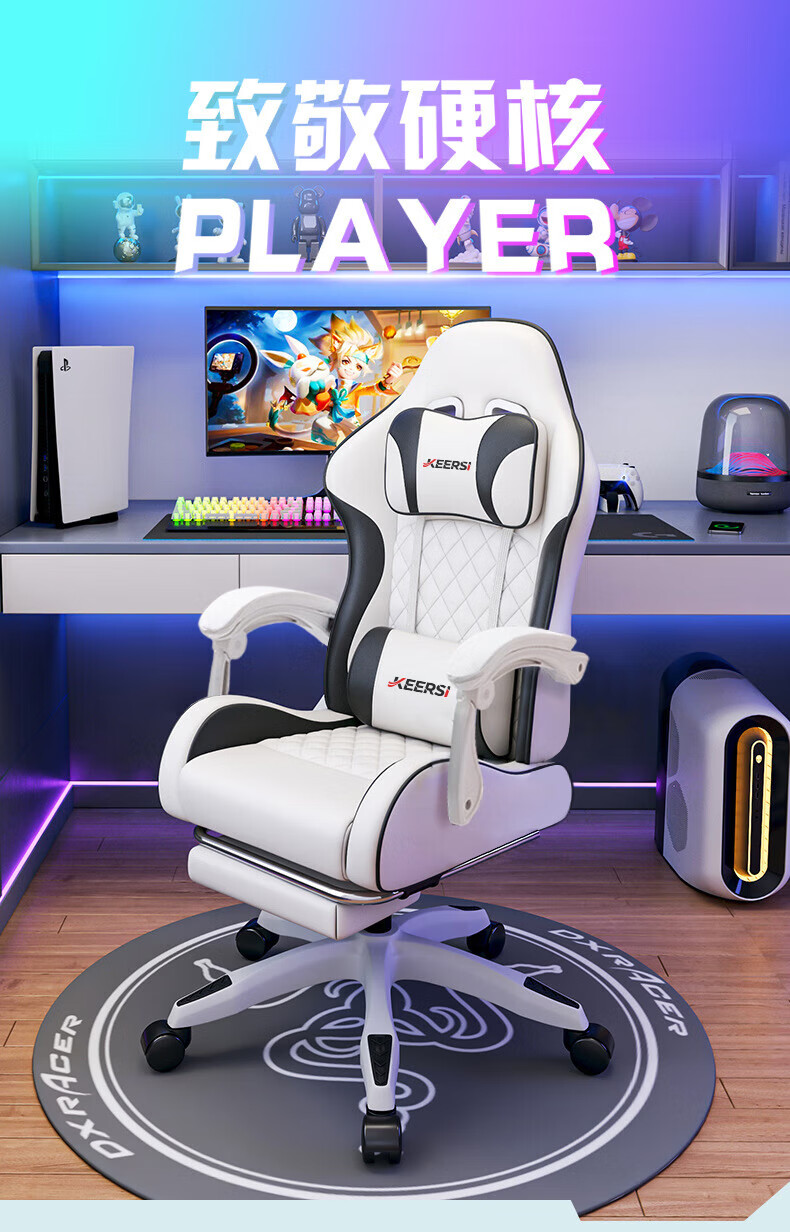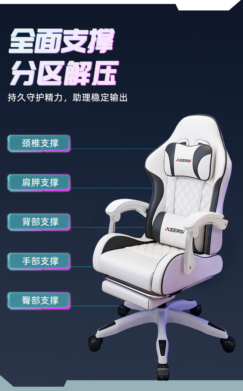 珂尔司电竞椅男电脑椅子久坐舒适家用可躺学生宿舍人体工学升降游戏座椅 万人种草:2代-暴雪白+联动可躺+透气乳胶-无搁脚 尼龙脚