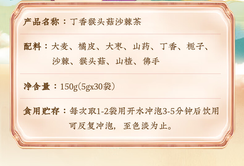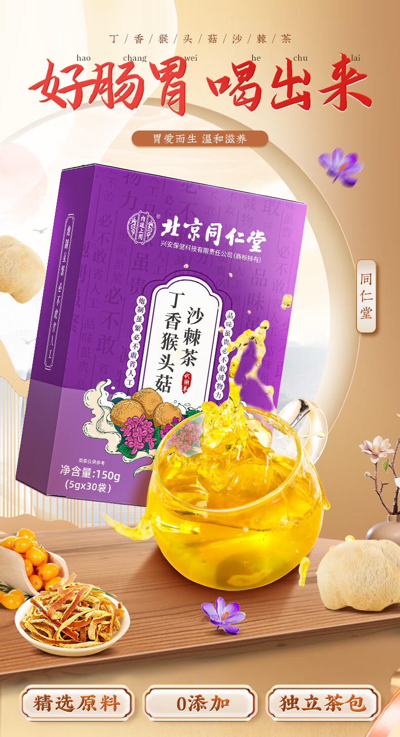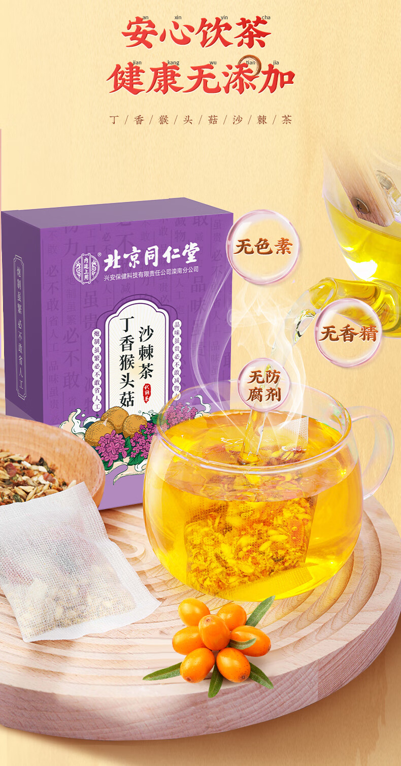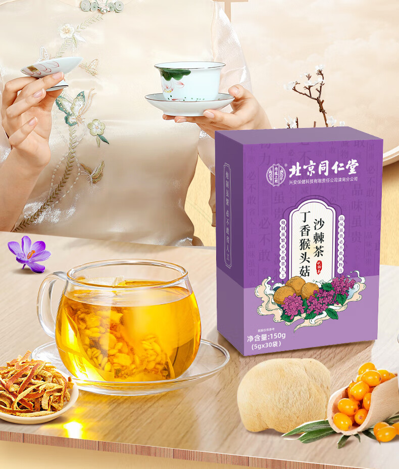北京同仁堂丁香猴头菇沙棘茶 肠胃调理去胃火养胃脾胃不好胀气口臭养生茶 【1盒体验装】5g*30袋/盒