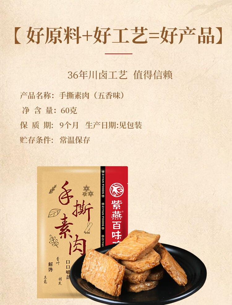 紫燕百味鸡手撕素肉卤香味预制菜素牛排辣卤零食休闲食品辣条豆干60g