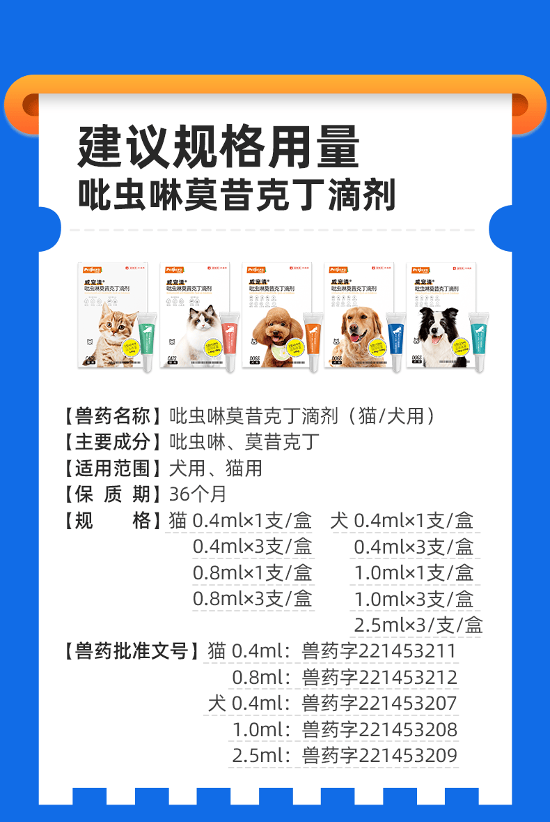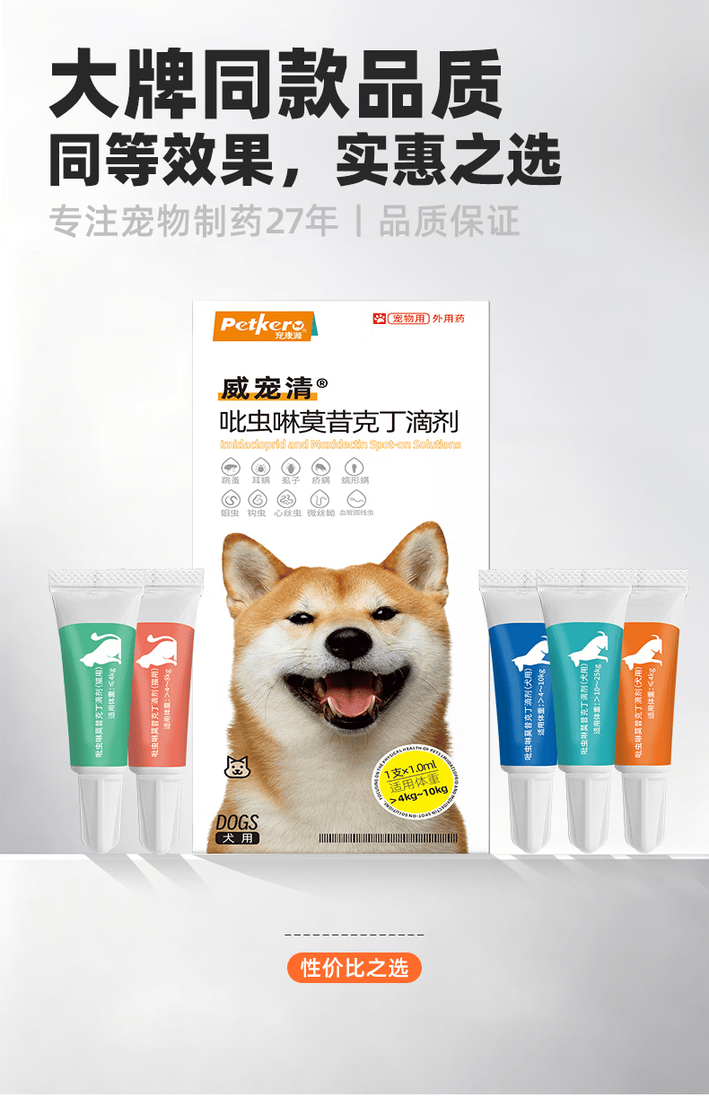 宠康源吡虫啉莫昔克丁滴剂宠物狗狗猫咪驱虫药体内体外合一跳蚤耳螨虫 【狗】8-20斤 1ml*3支