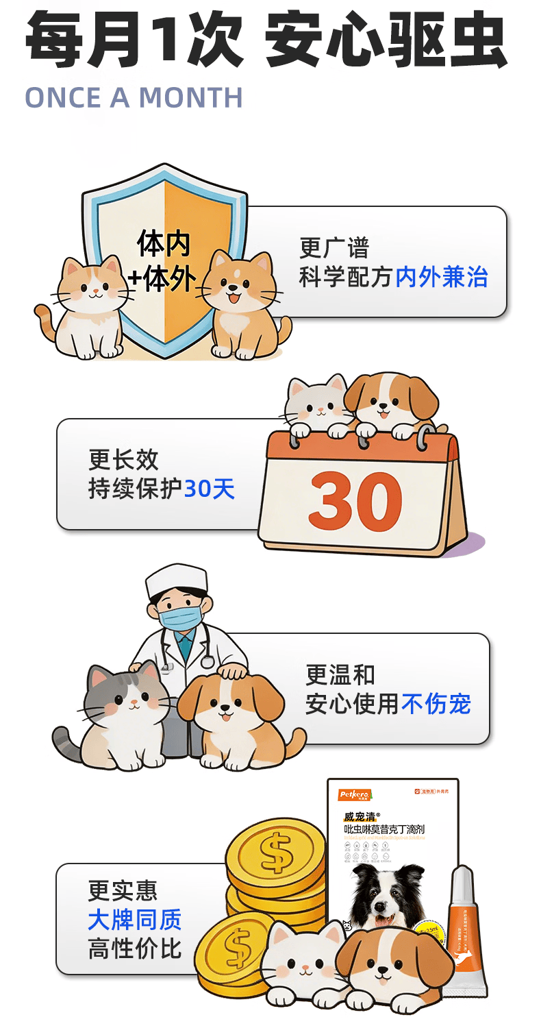 大宠爱特价甩大宠爱成猫幼猫驱虫猫咪驱虫体内外幼猫成猫 精品成猫内外驱套餐【一月量】