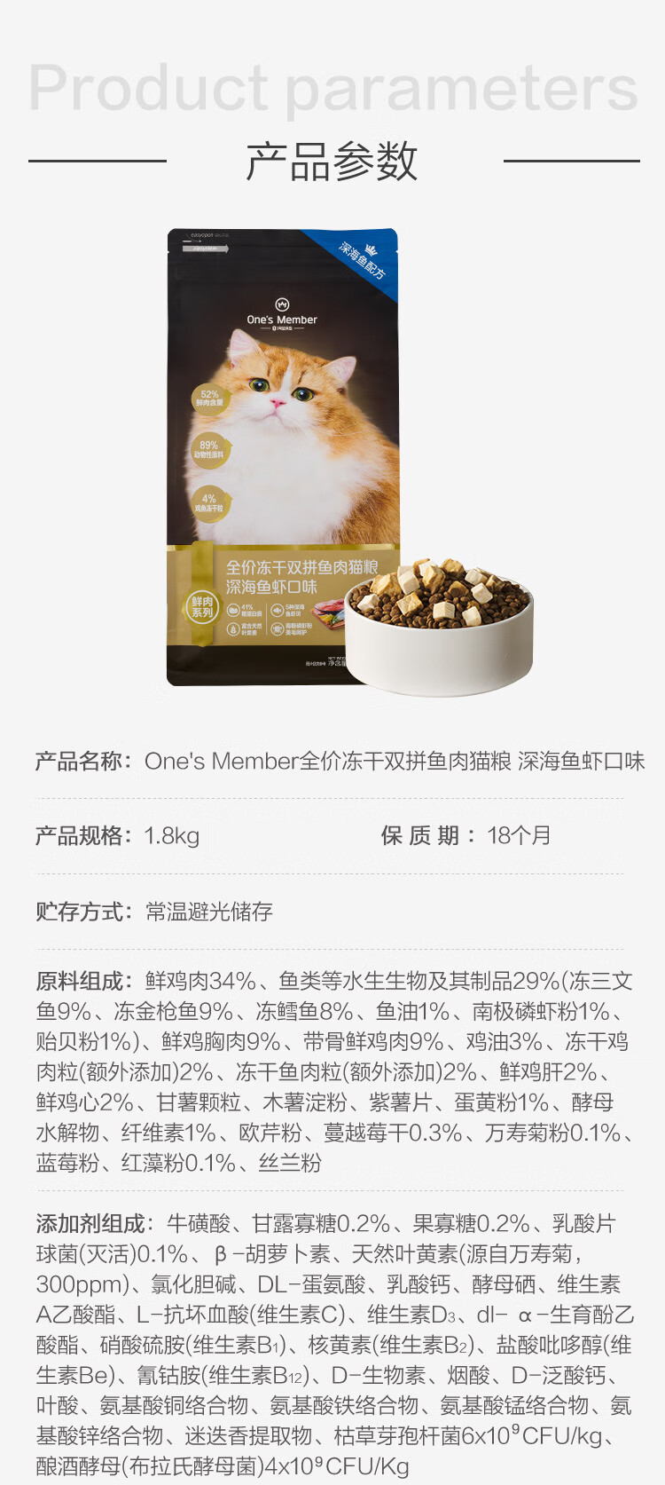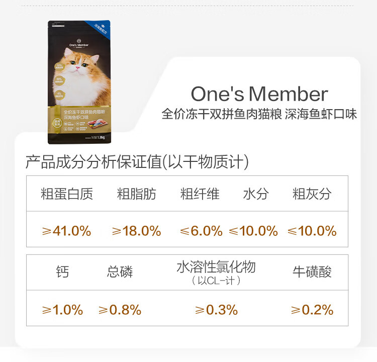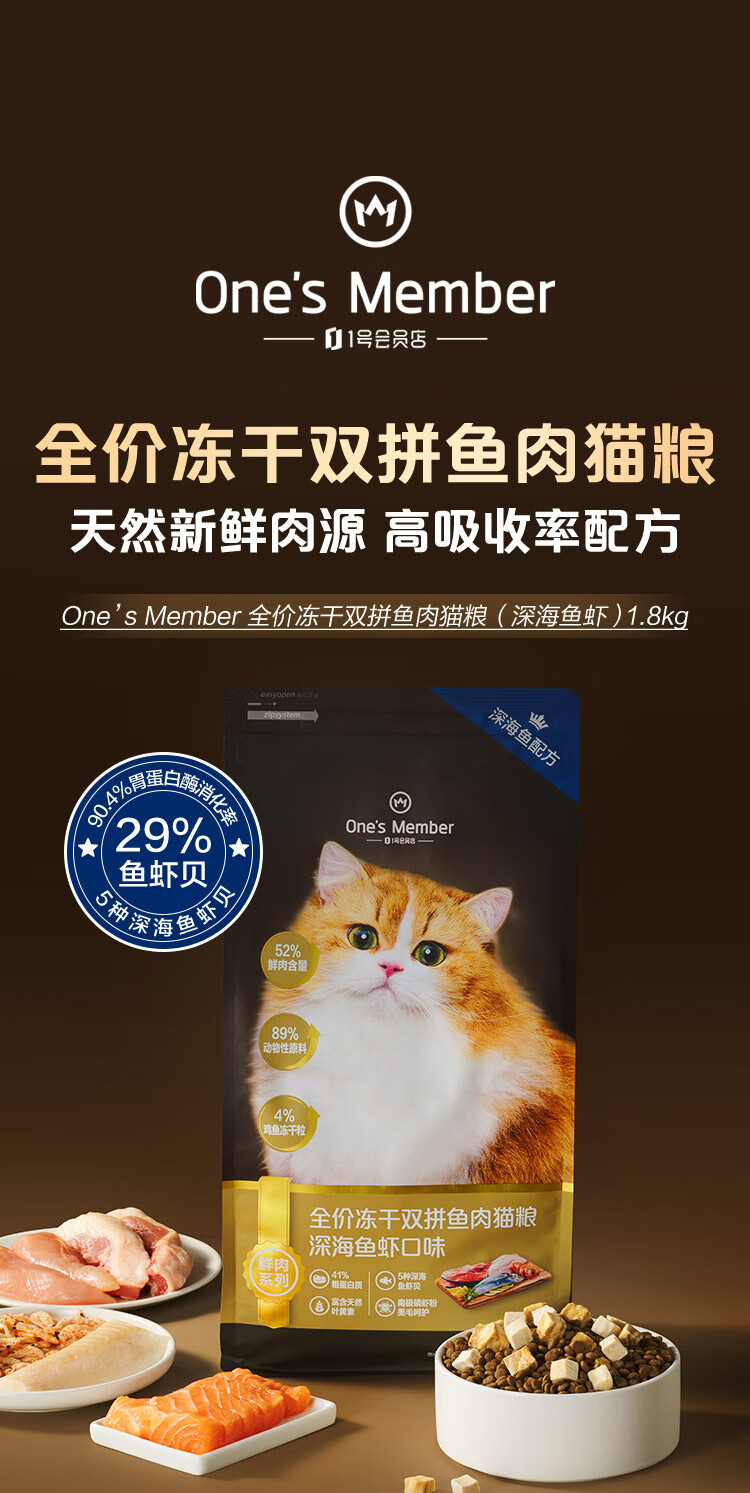 1号会员店(One's Member)全价冻干双拼鱼肉猫粮 深海鱼虾口味1.8kg