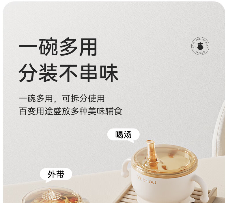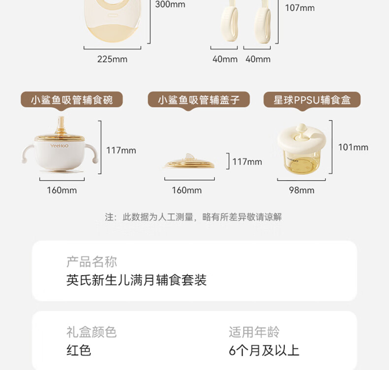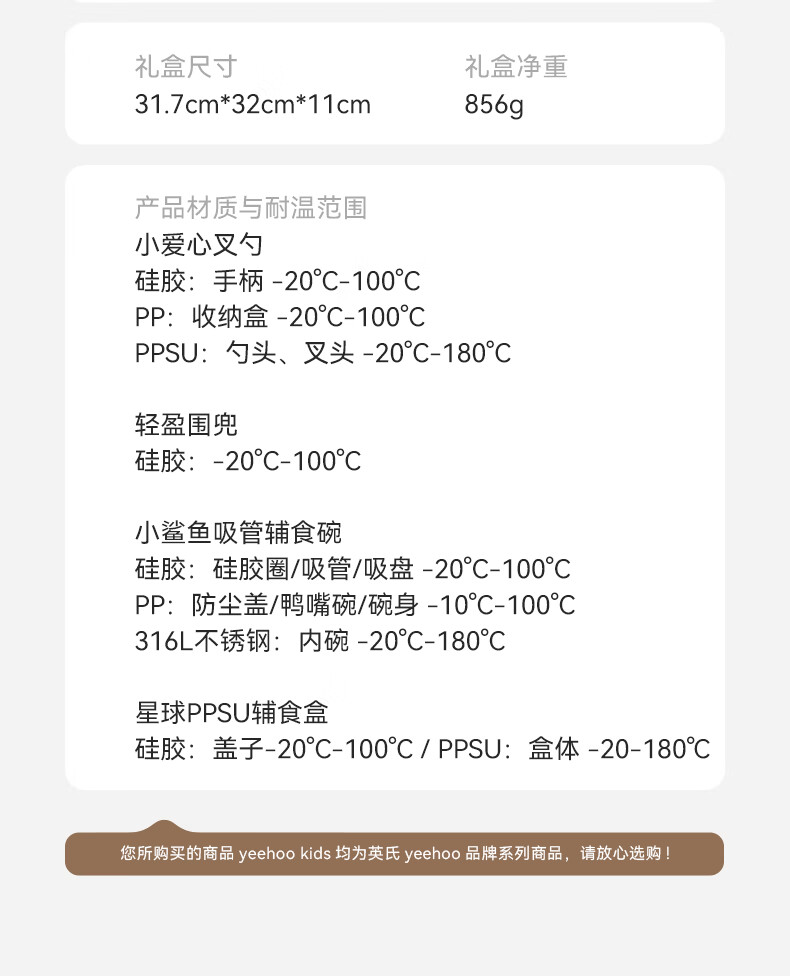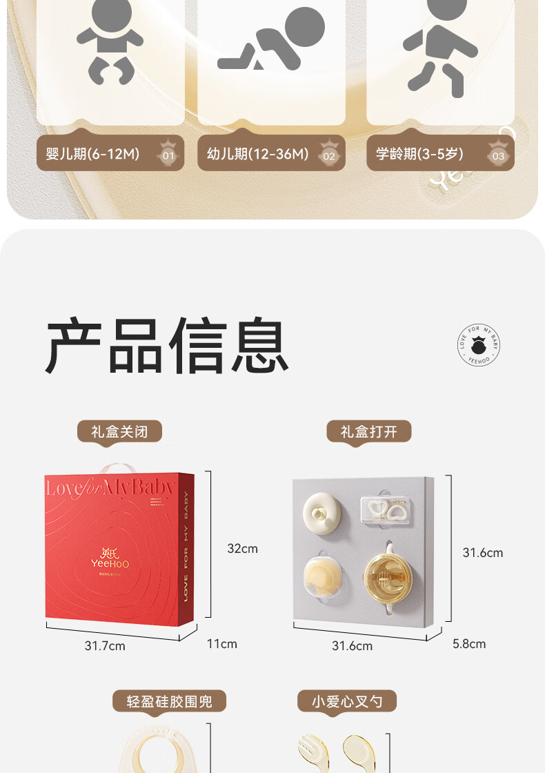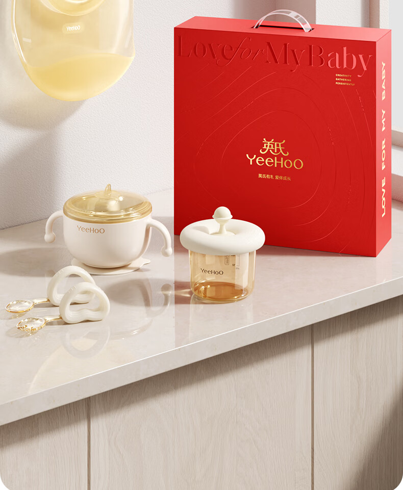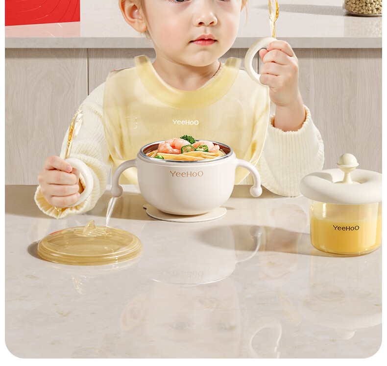 英氏(YEEHOO)儿童餐具礼盒装宝宝辅食碗训练叉勺辅食盒吃饭围兜喂养五件套