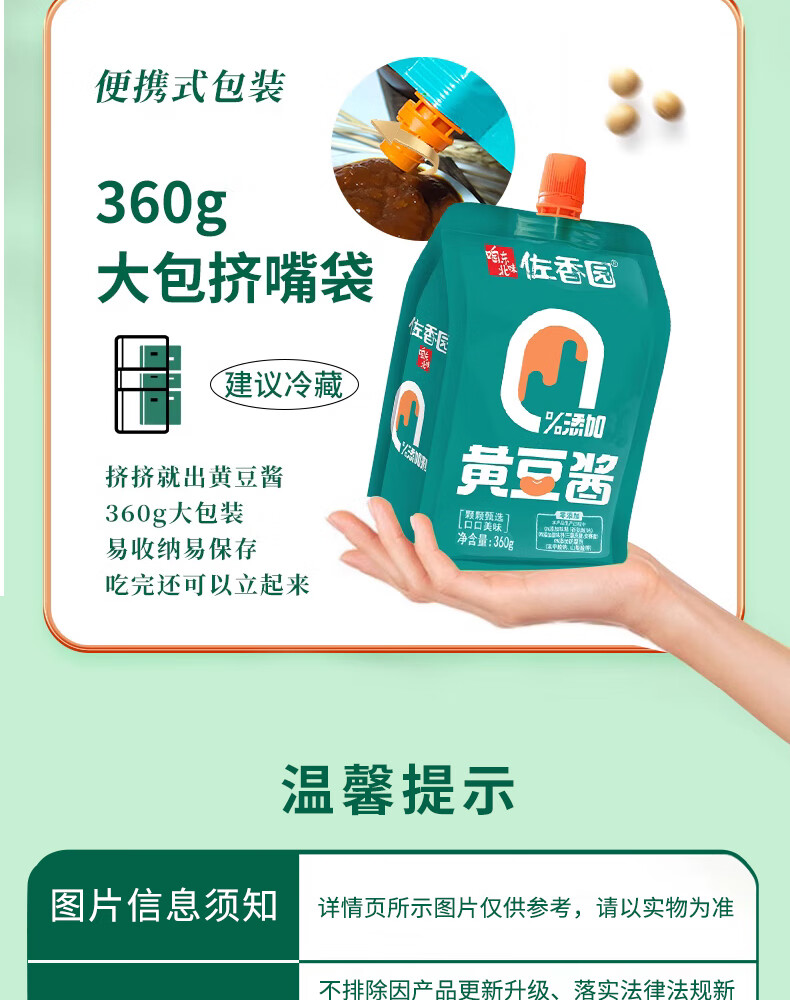 佐香园黄豆酱360g 【0添加】豆豉 正宗东北大酱豆瓣酱 即食拌面下饭酱