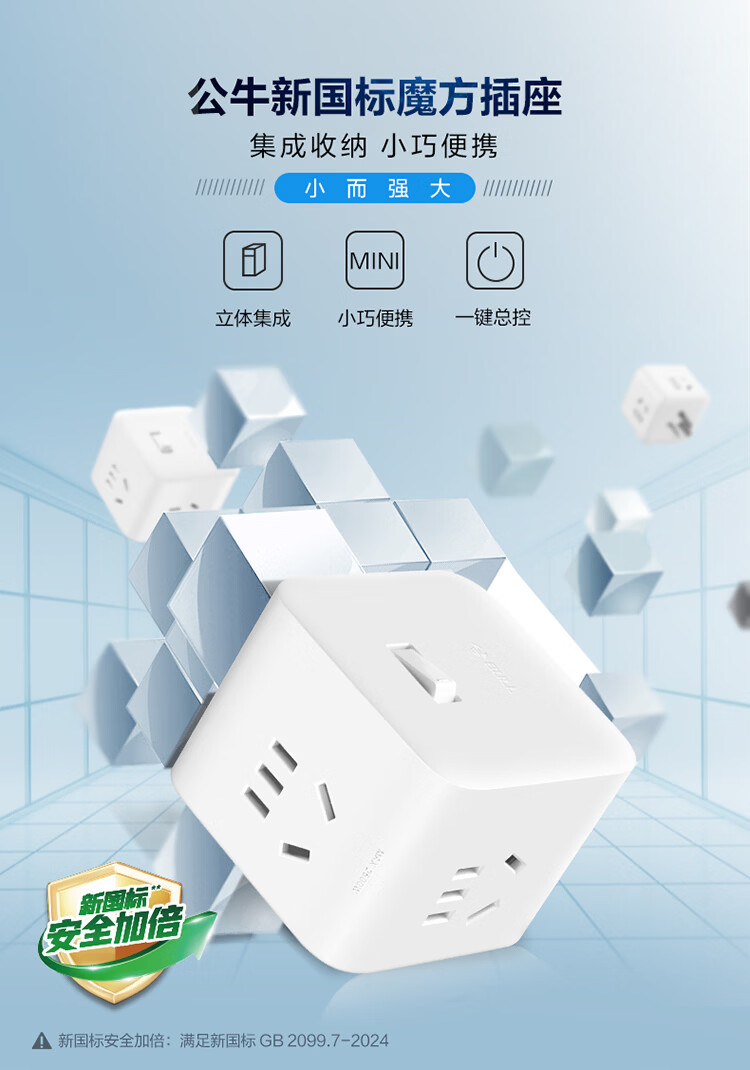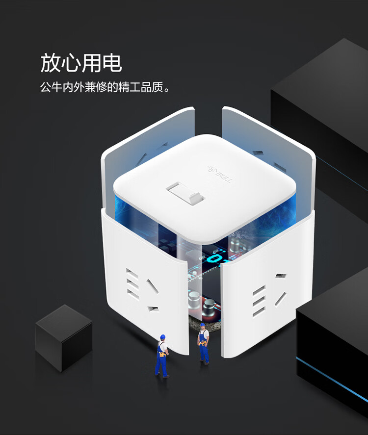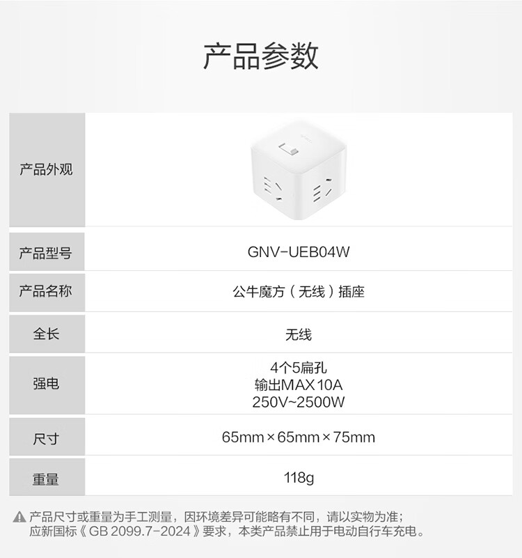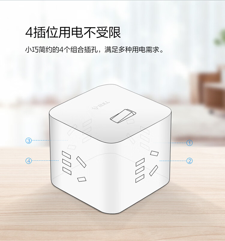 公牛(BULL) 魔方插座 插线板/插排/排插/接线板/拖线板 4插孔无线魔方总控开关插座 GNV-UEB04W