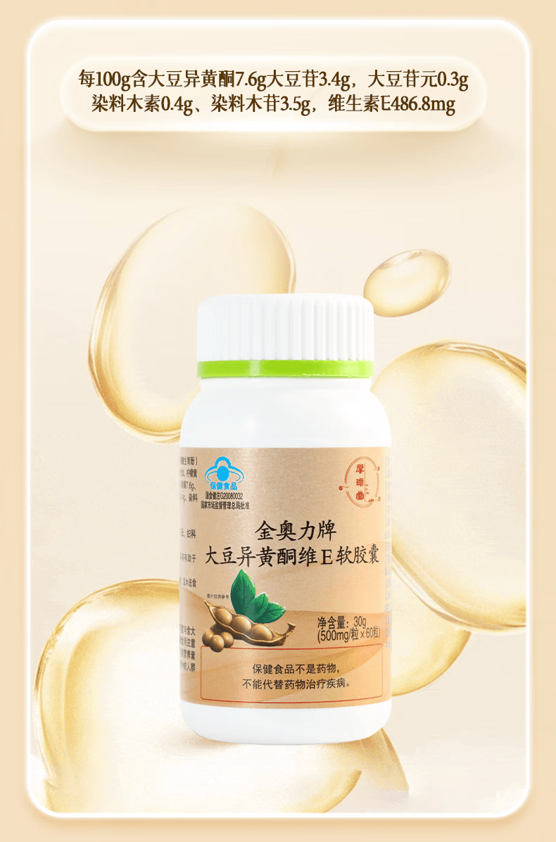 厚璞堂大豆异黄酮维E软胶囊有助于改善骨密度关爱健康正品保障 1盒装 60粒*1盒