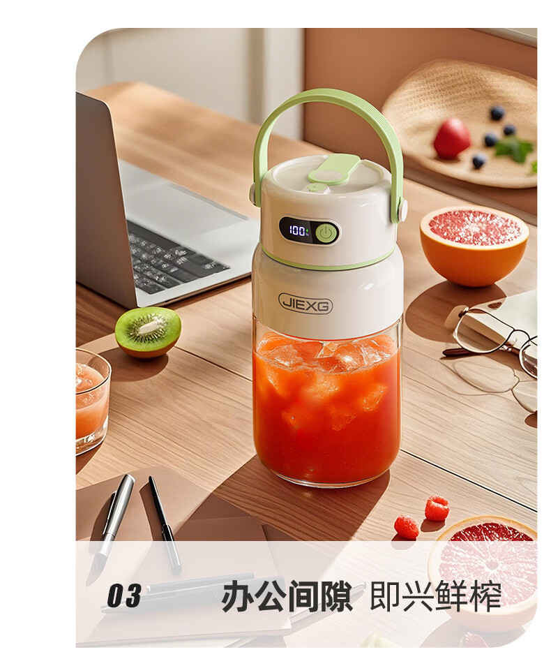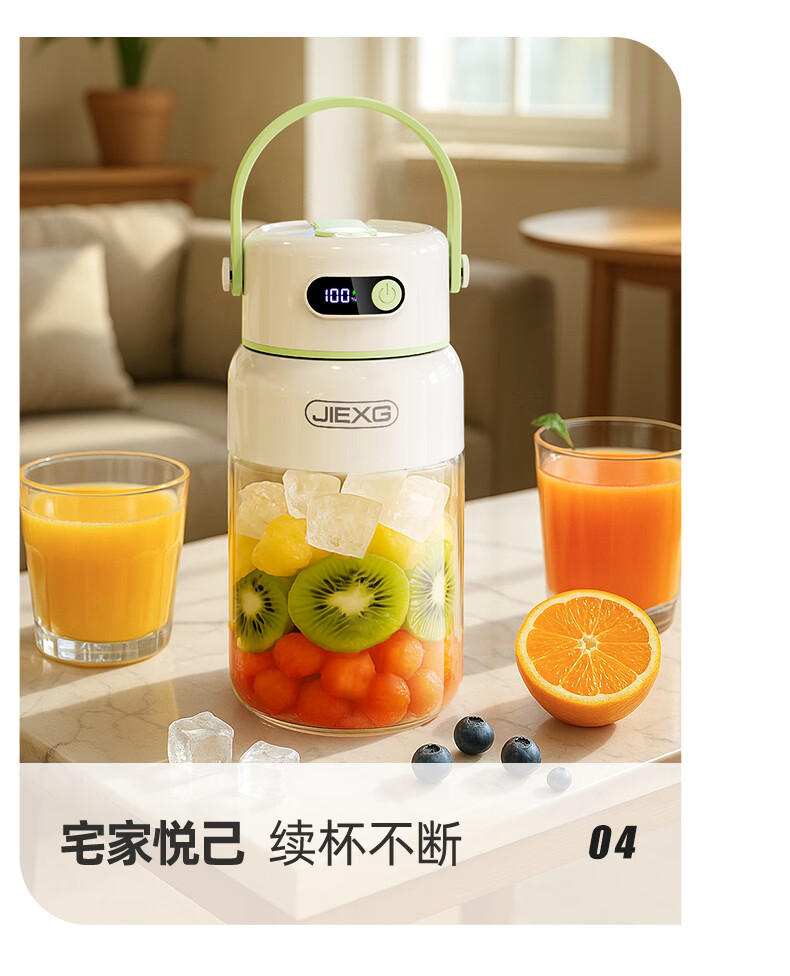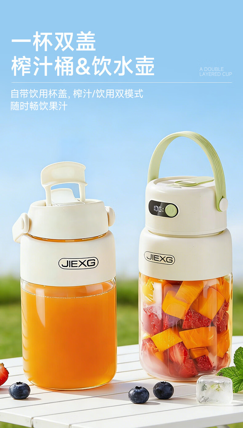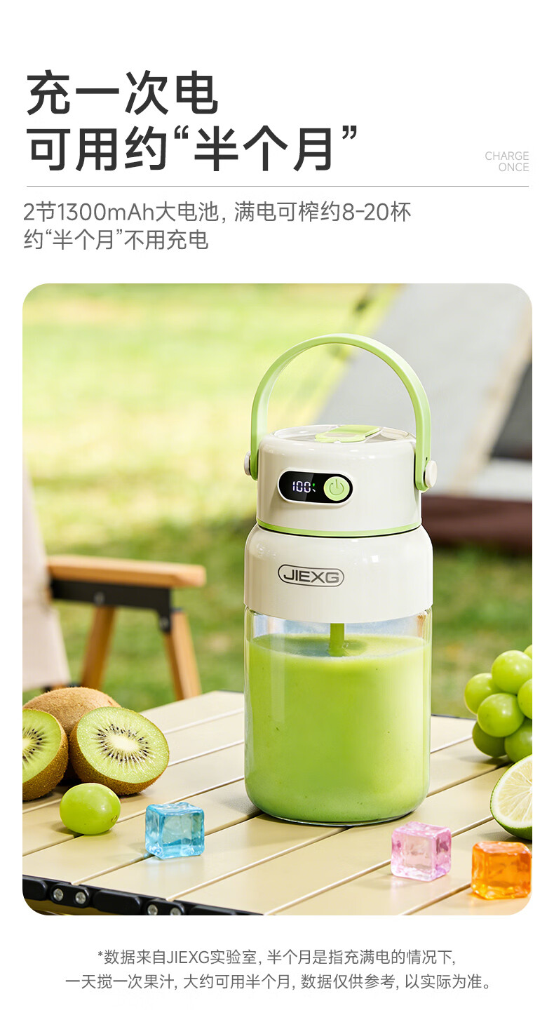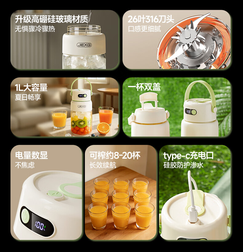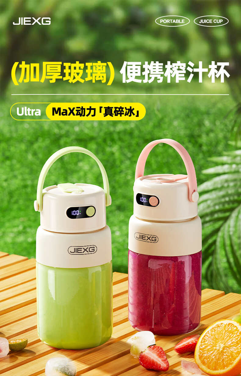 JIEXG榨汁机无线果蔬榨汁杯便携式迷你充电大容量加厚玻璃小型家用奶昔果汁机 1000ml【高硼硅玻璃】可碎冰+长续航