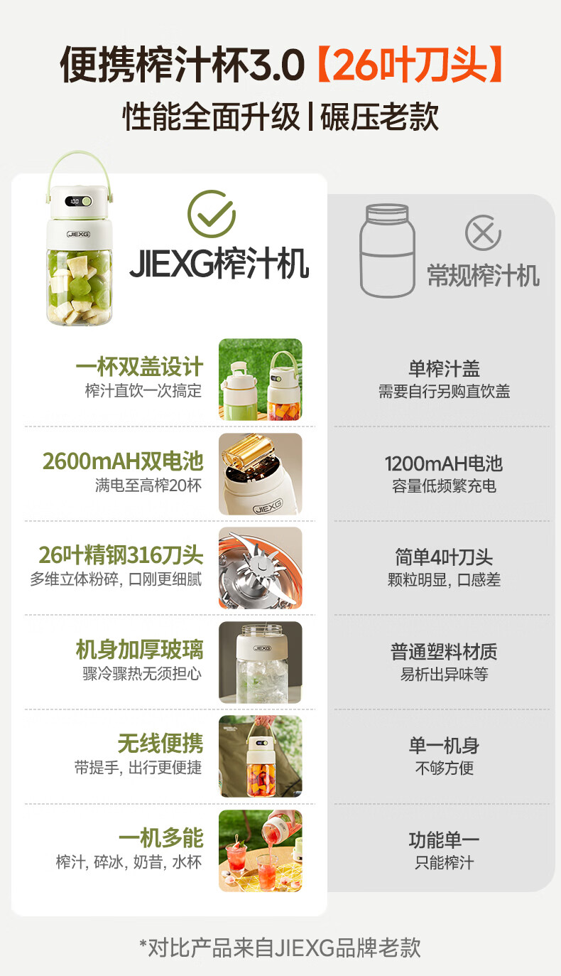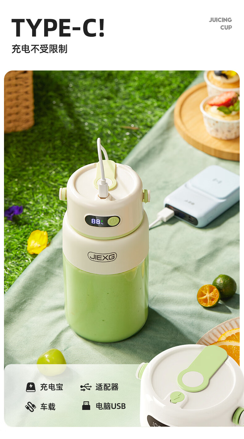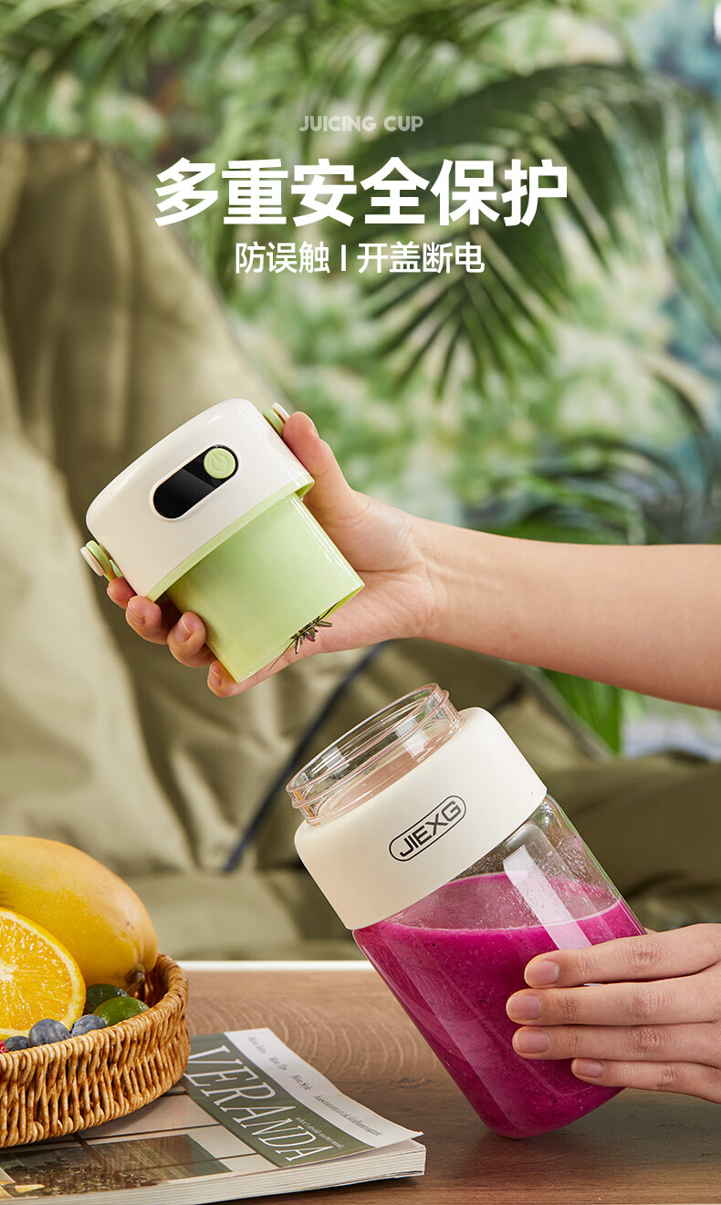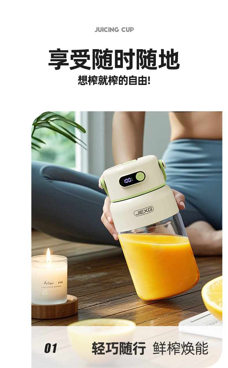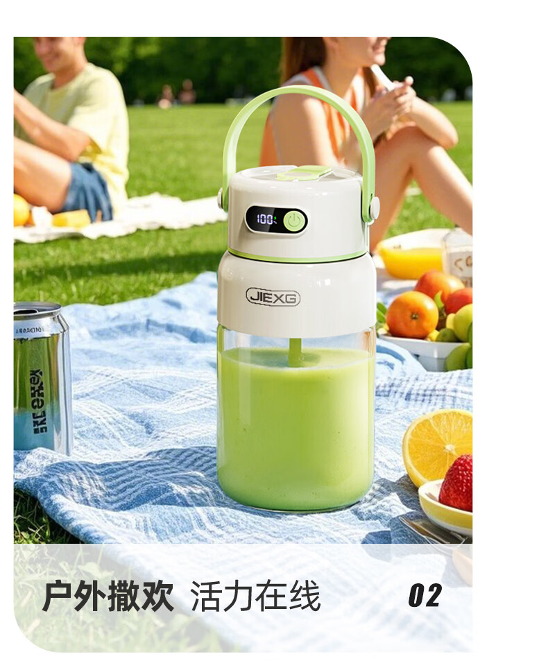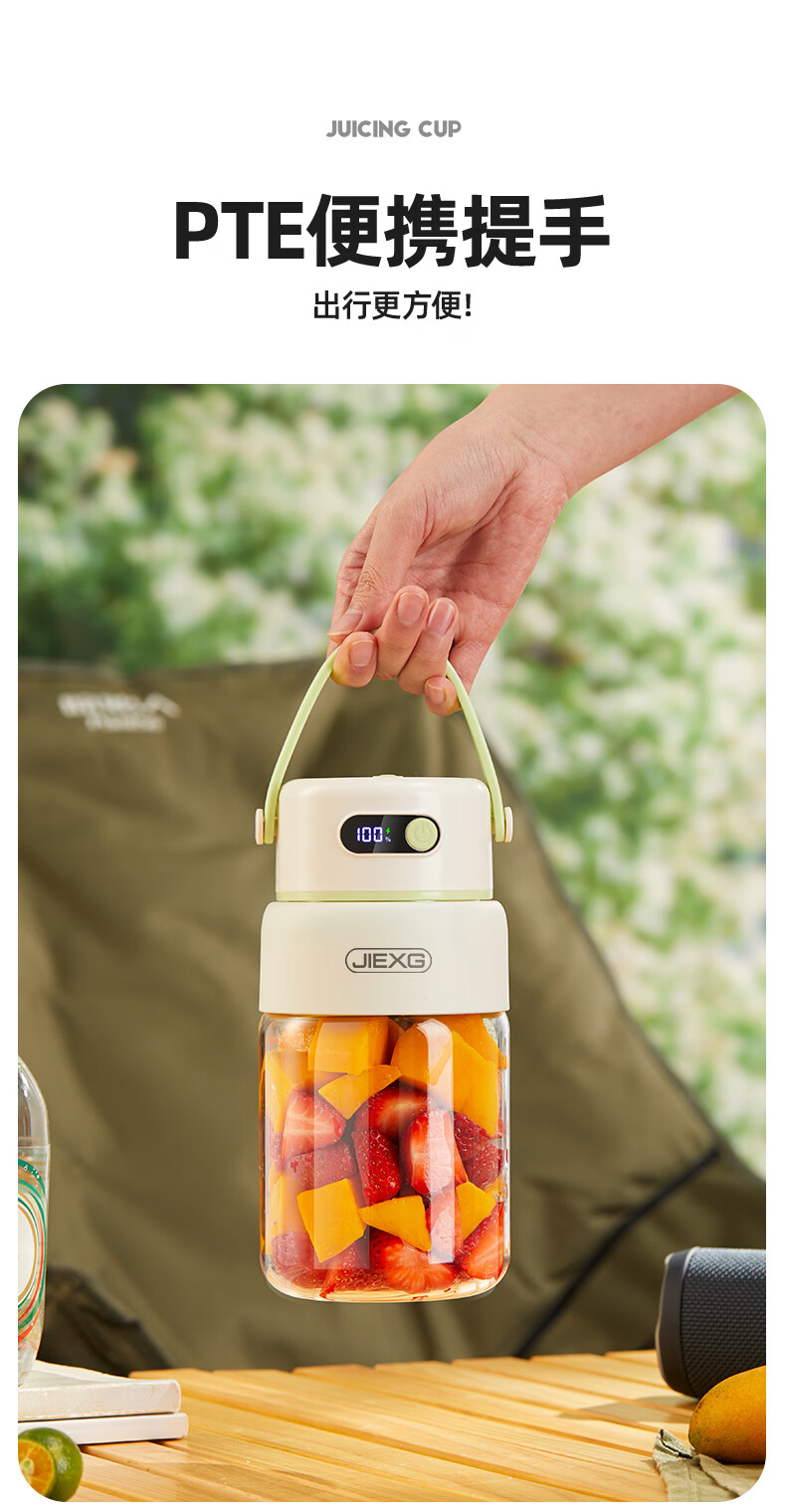 JIEXG榨汁机无线果蔬榨汁杯便携式迷你充电大容量加厚玻璃小型家用奶昔果汁机 1000ml【高硼硅玻璃】可碎冰+长续航