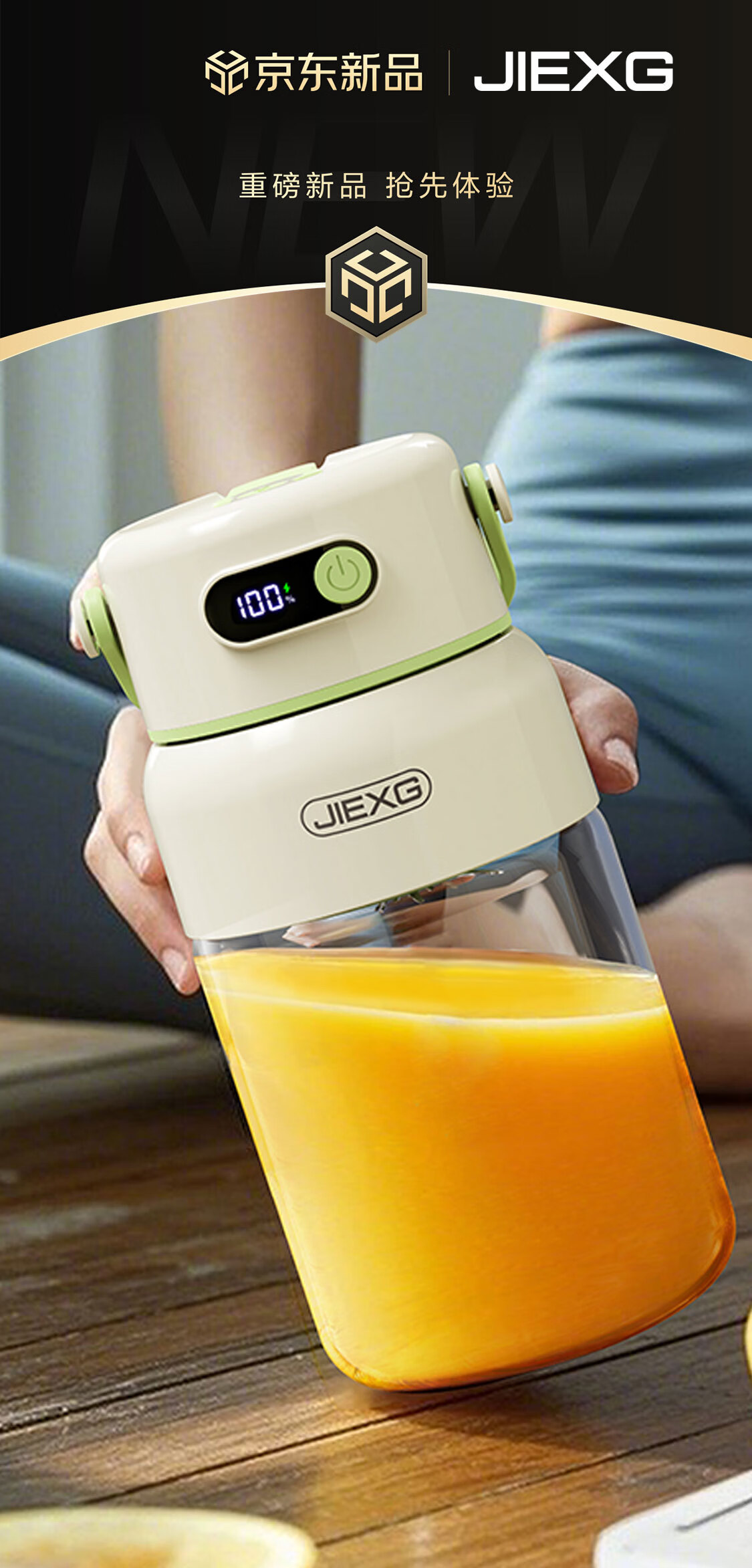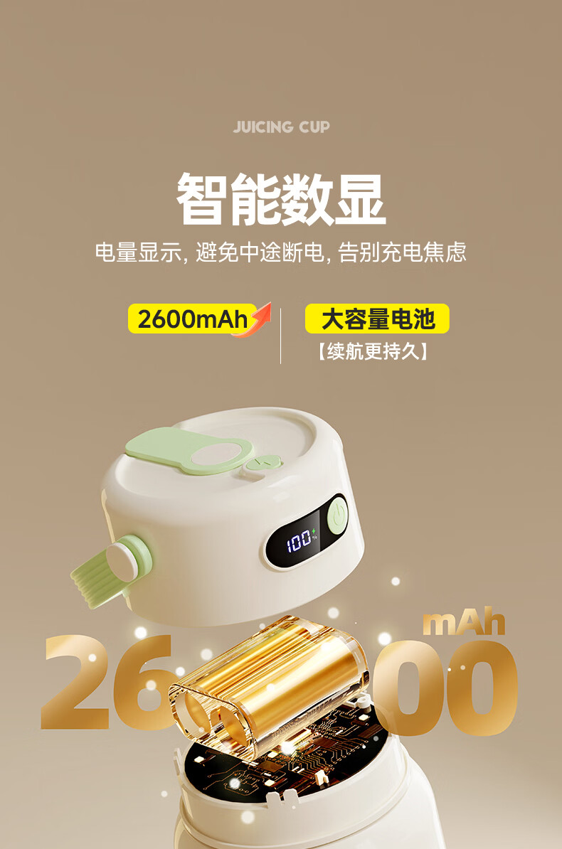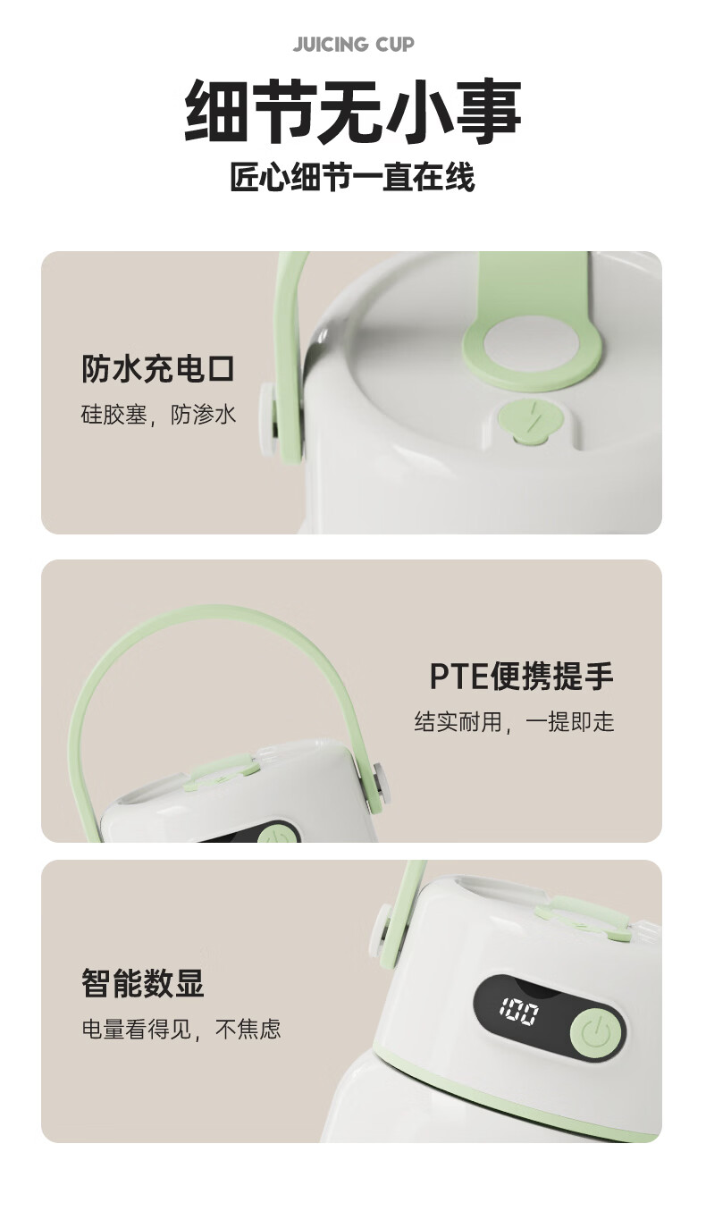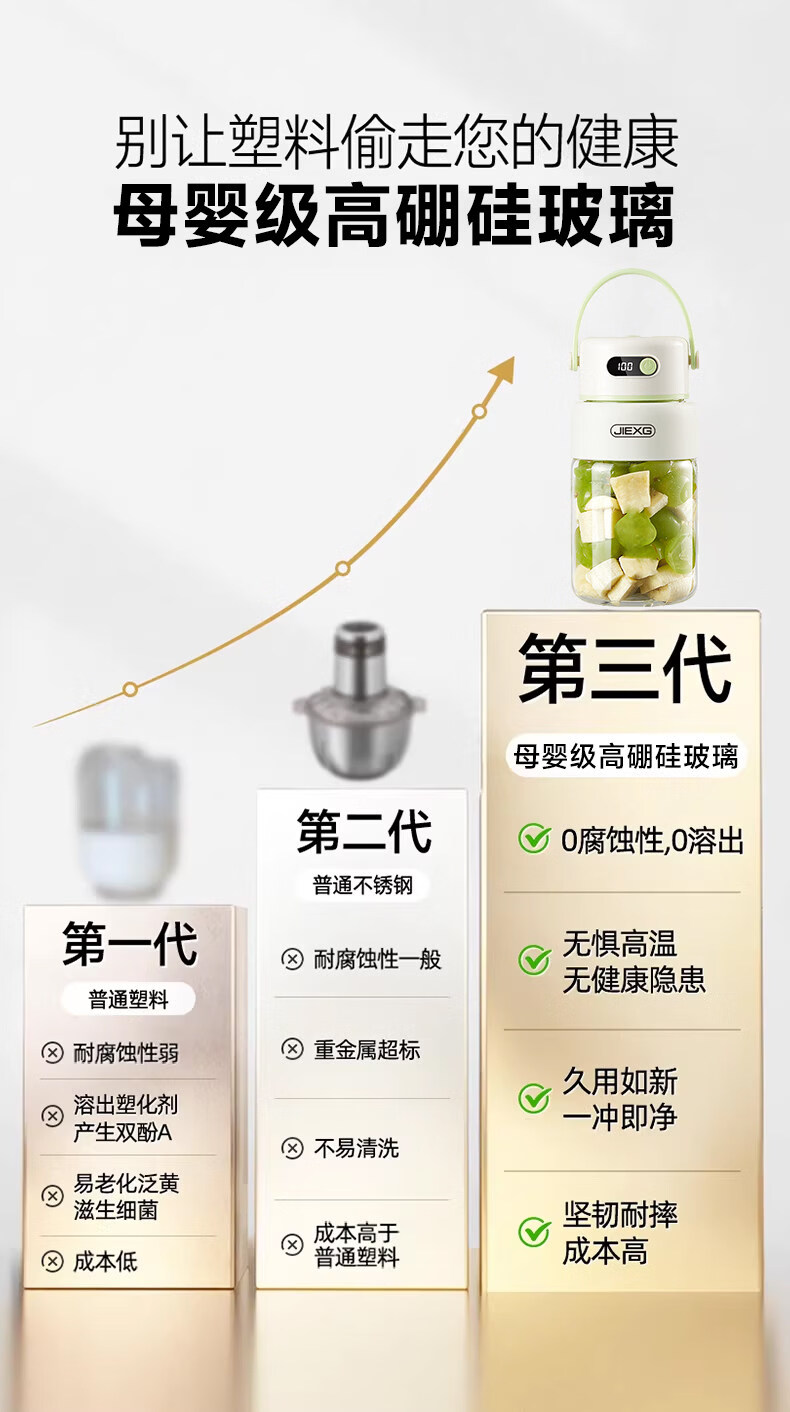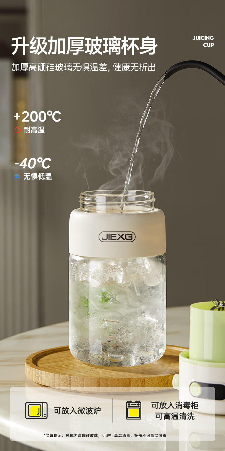 JIEXG榨汁机无线果蔬榨汁杯便携式迷你充电大容量加厚玻璃小型家用奶昔果汁机 1000ml【高硼硅玻璃】可碎冰+长续航
