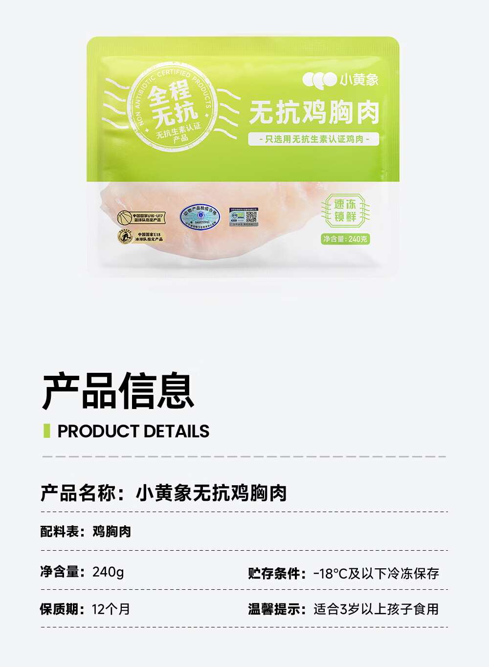 小黄象无抗鸡翅中琵琶腿鸡胸肉鸡翅根鸡腿肉丁黄焖鸡腿块冷冻生鲜 鸡爪270g*4袋