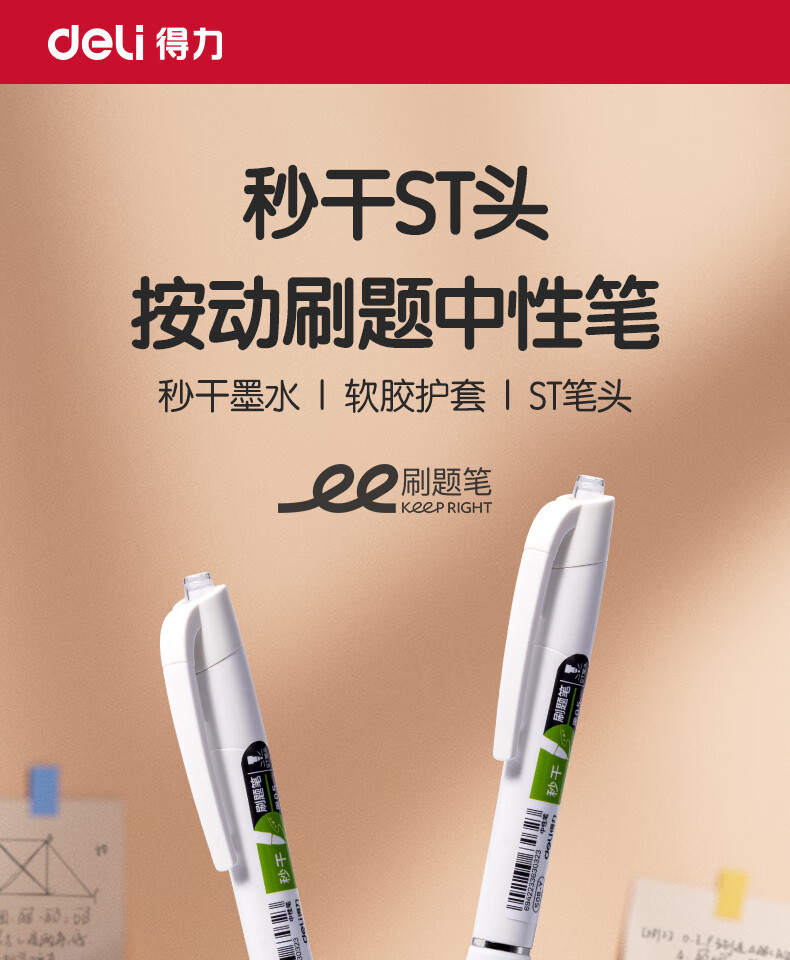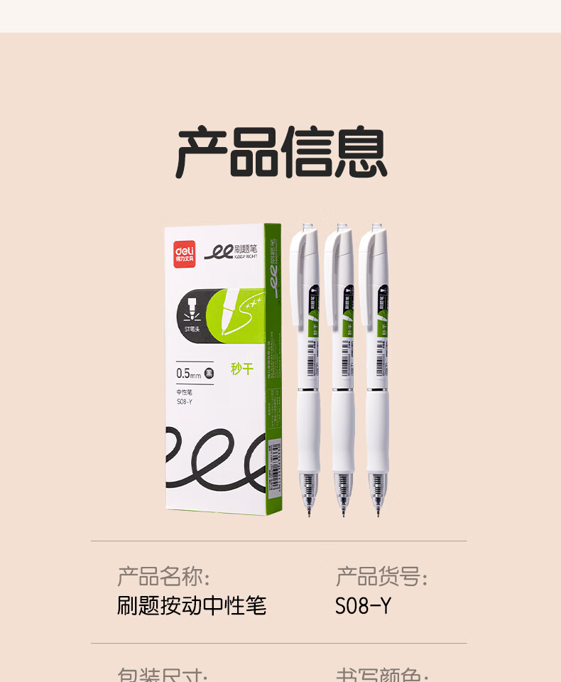 得力(deli)【S08秒干款】S08速干刷题小白笔学生考试按动中性笔ST头签字笔黑笔水笔 【蓝色 10支】秒干