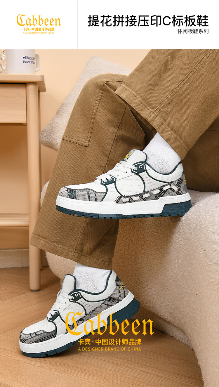 卡宾男鞋冬季新款厚底鞋子男压印C标设计小众板鞋百搭增高男士休闲鞋 黑色 41 【标准皮鞋码】