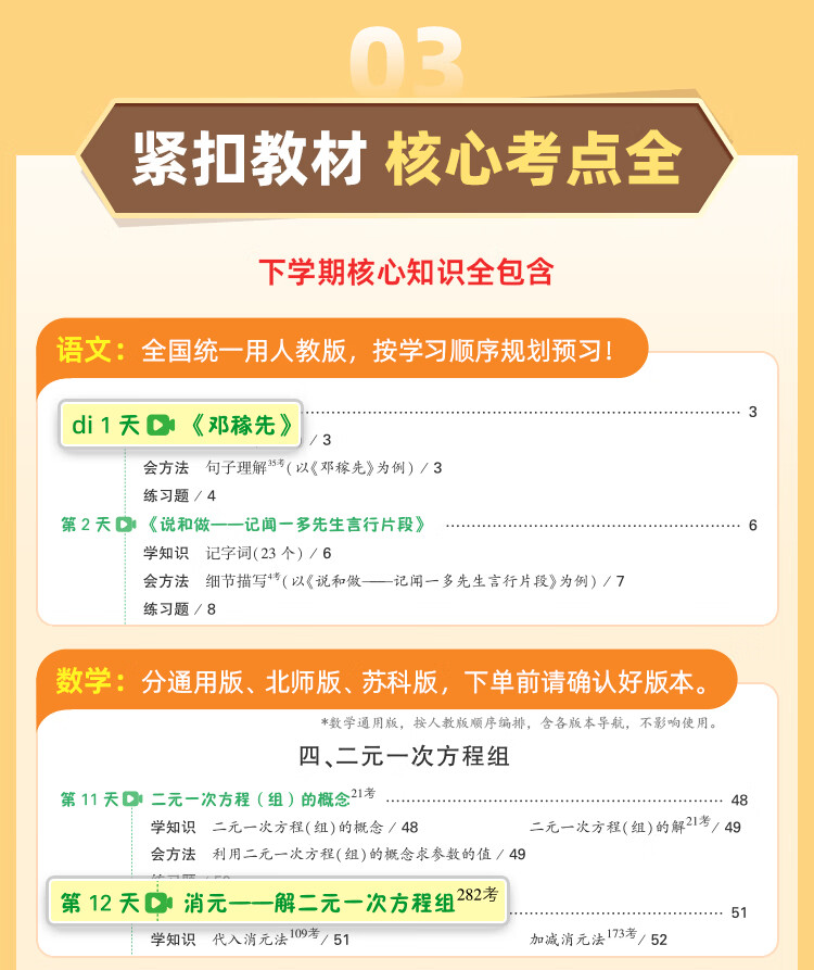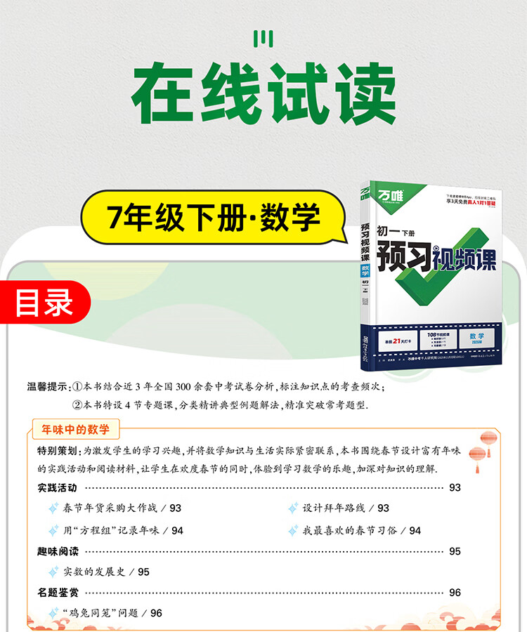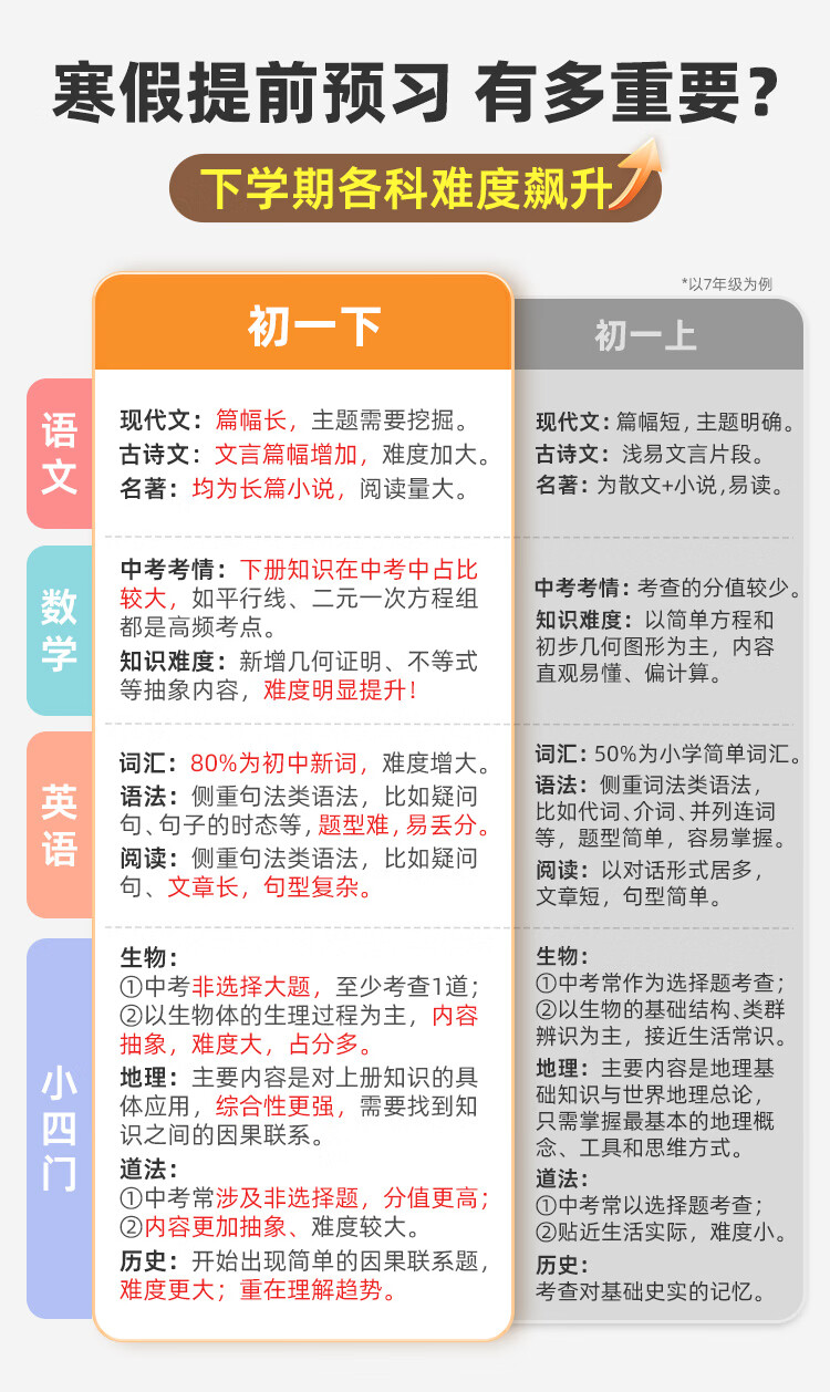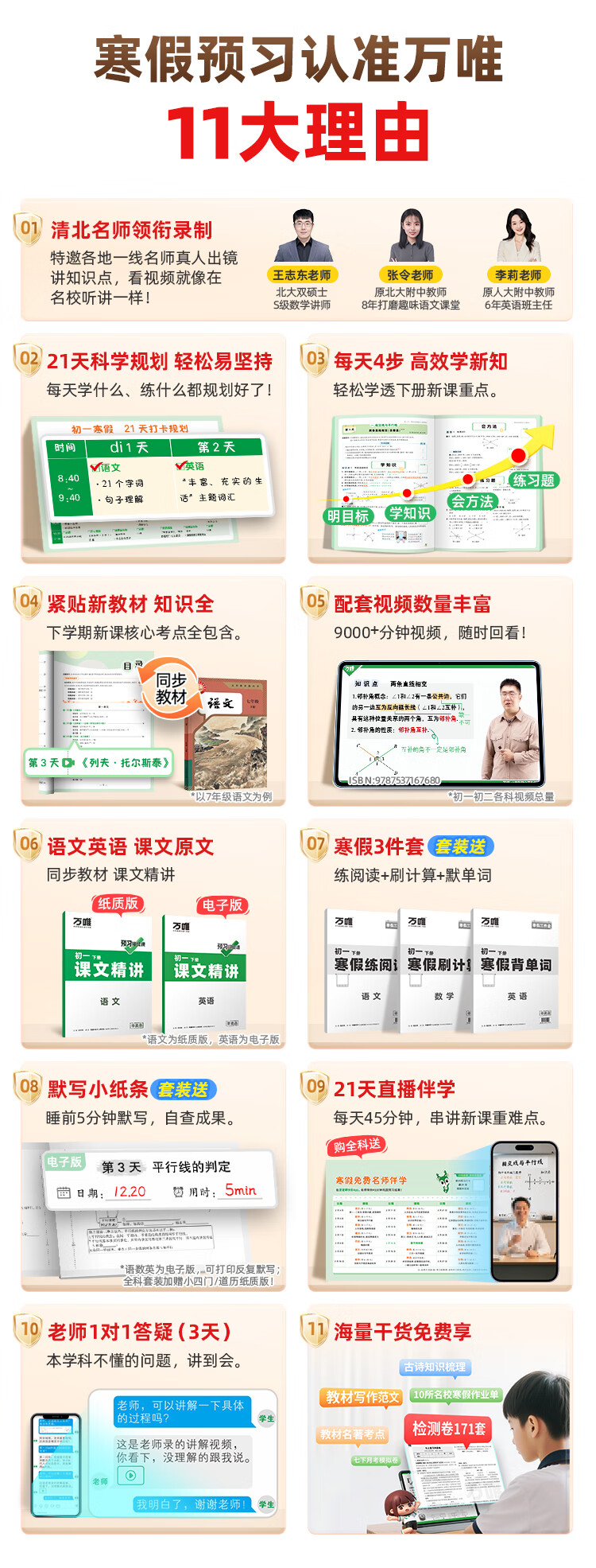 2026春万唯中考初中预习视频课初一初二七八年级下册语文数学英语物理小四门下册知识万唯官方旗舰店寒假预习资料人教版万维教育 7年级下册 【语数英生地道历】7科4本
