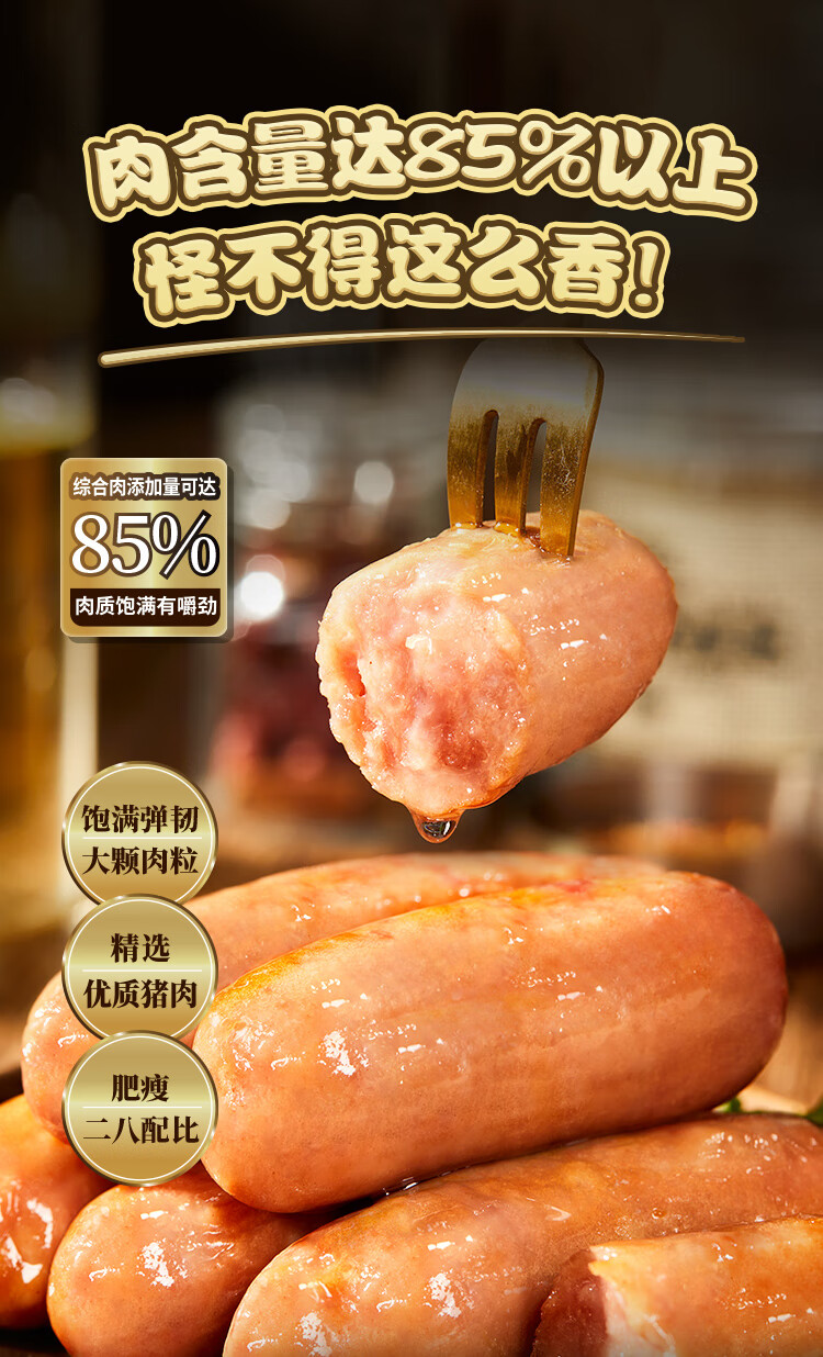 粮全其美火山石烤肠爆汁地道肉肠热狗肠包邮手抓饼早餐火腿肠香肠 火山石肉粒烤肠50g*20根