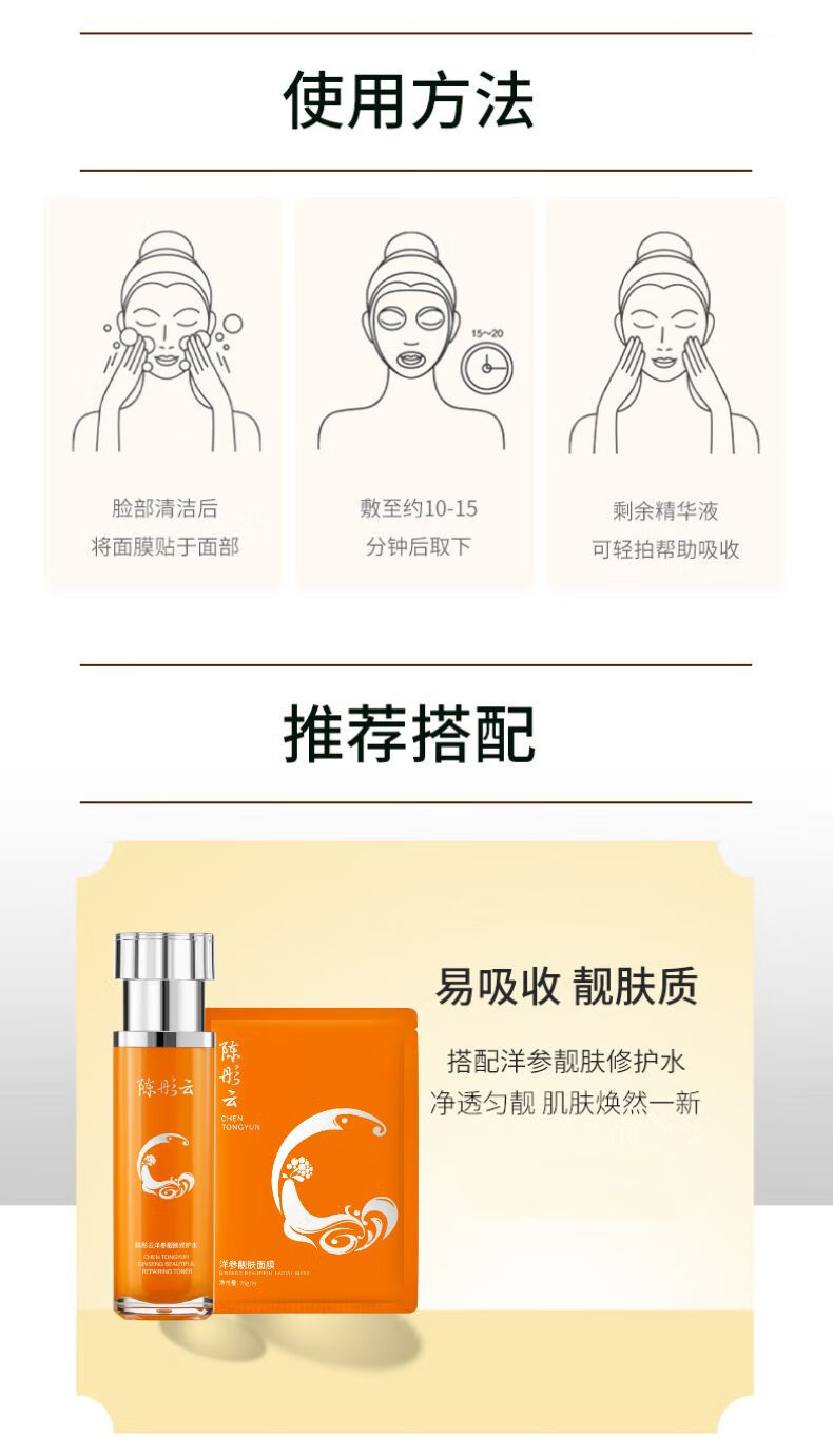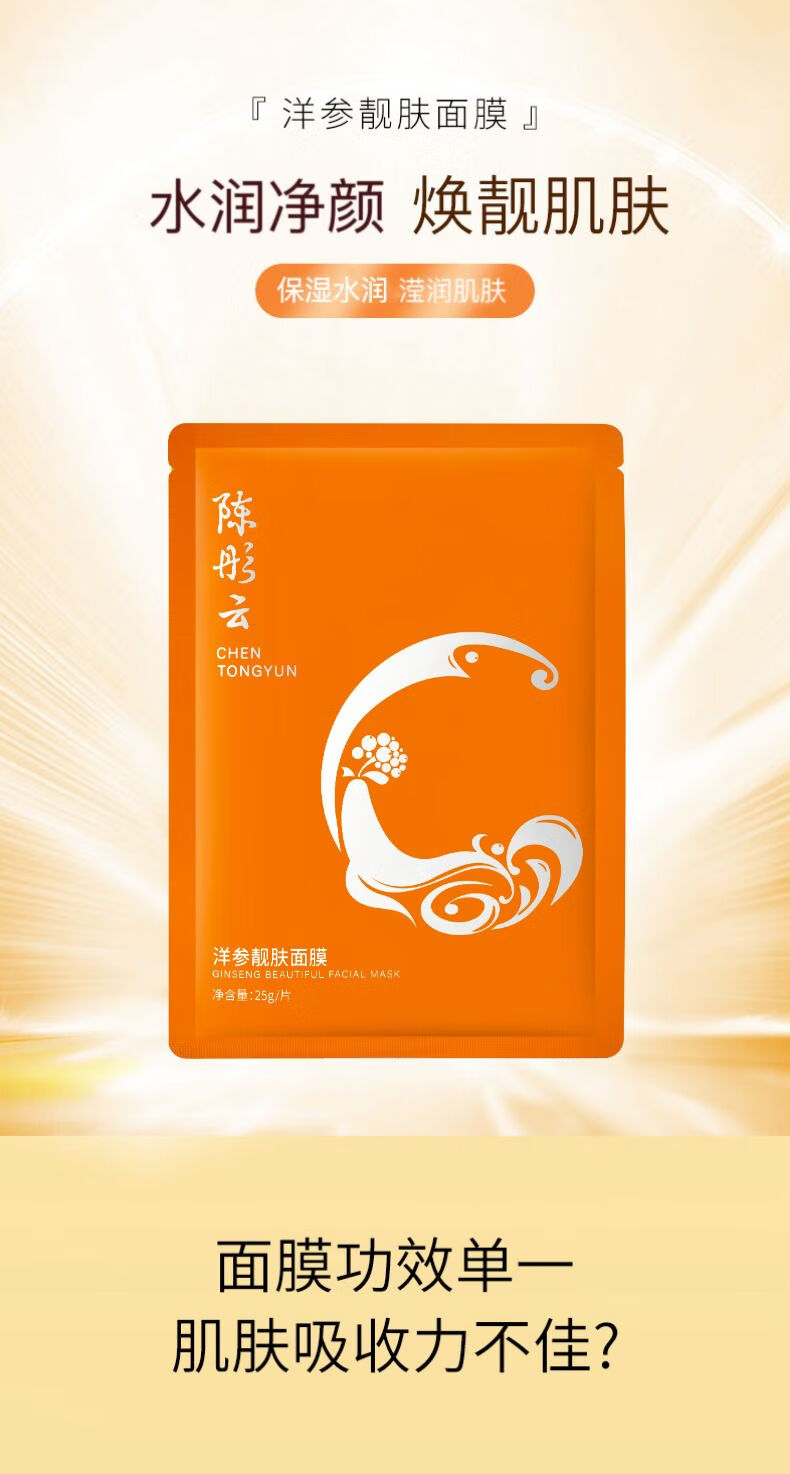 陈彤云洋参靓肤面膜 25g/片*8 补水保湿 水润净透 陈彤云洋参靓肤面膜8片*1盒