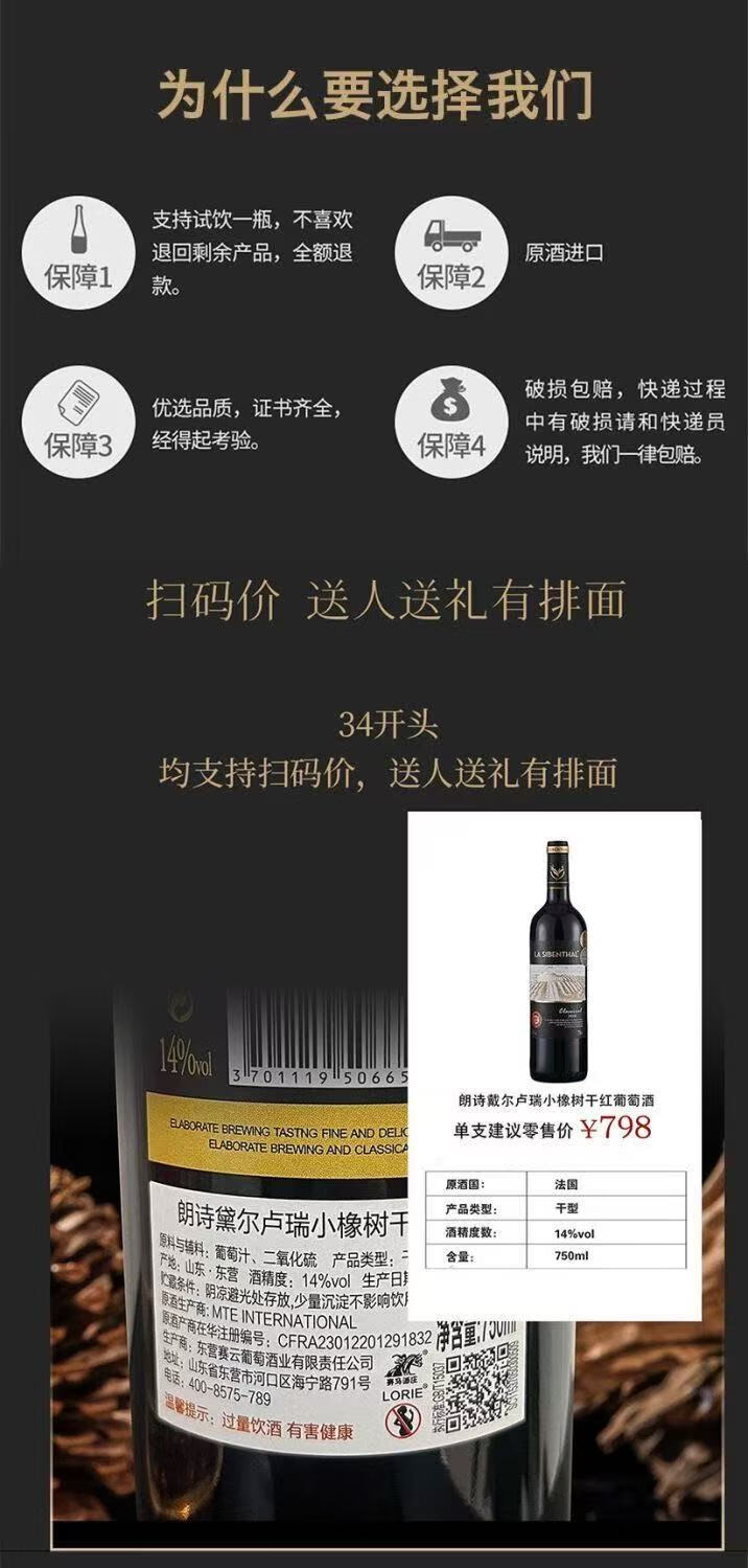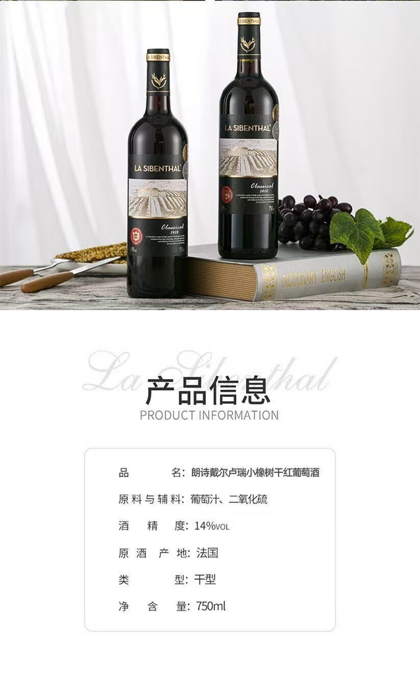 赛马酒庄朗诗黛尔红酒 卢瑞小橡树 14度干红葡萄酒 750ml*6