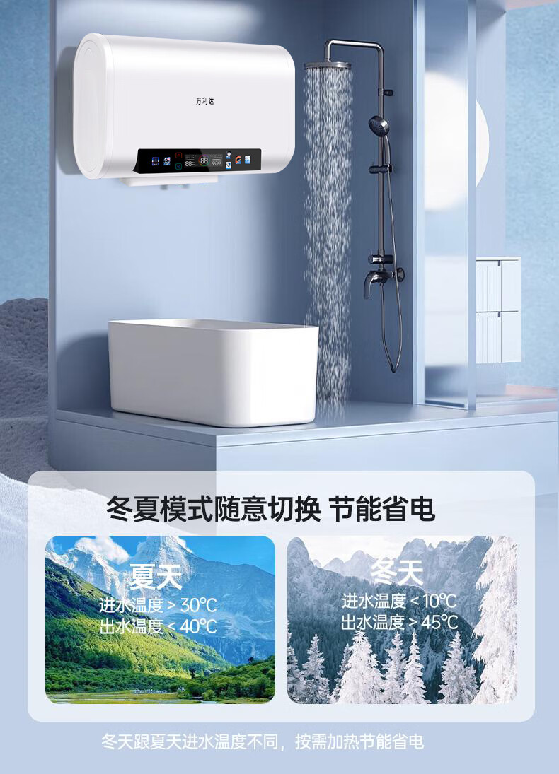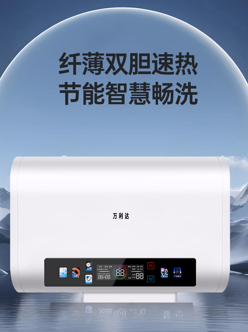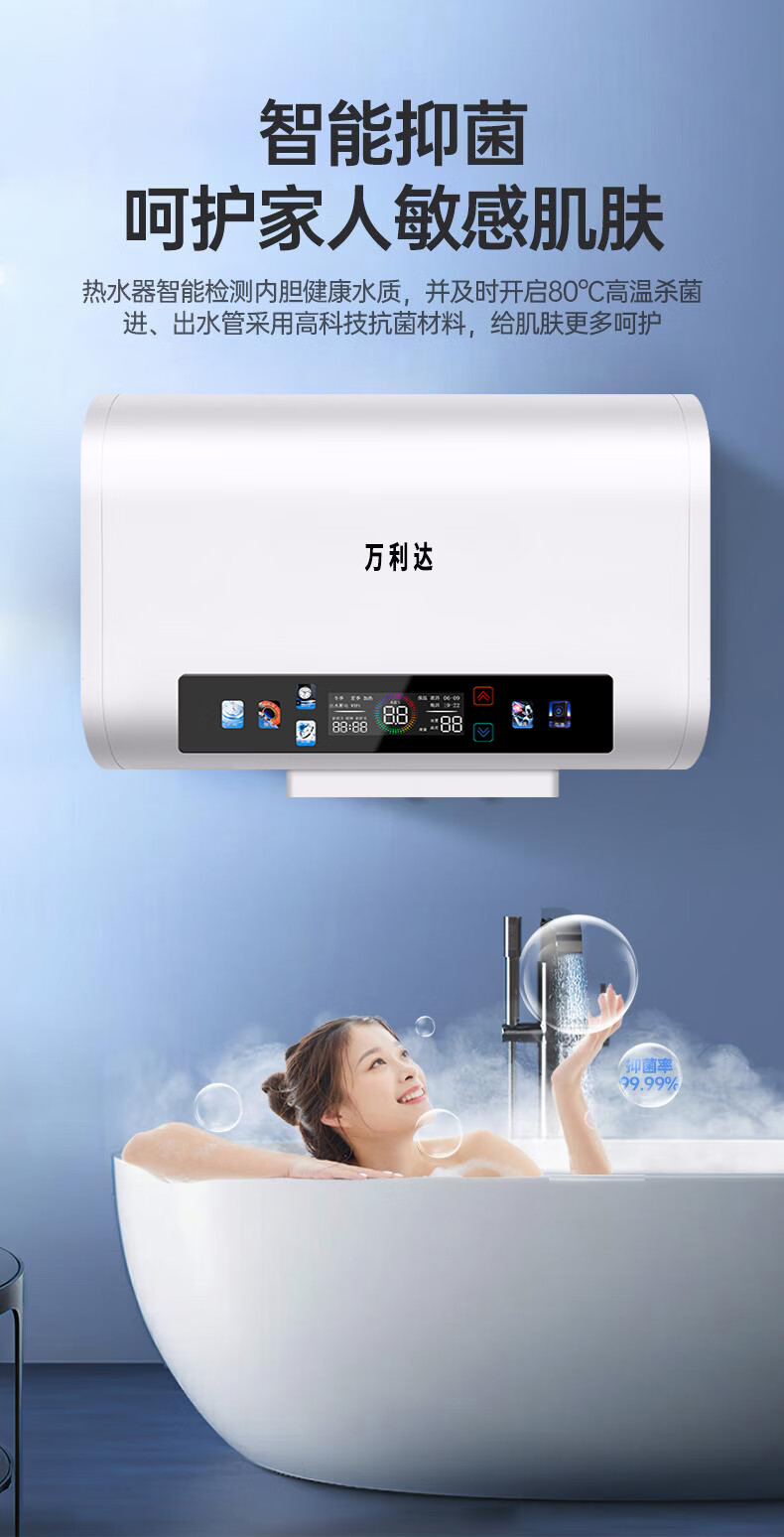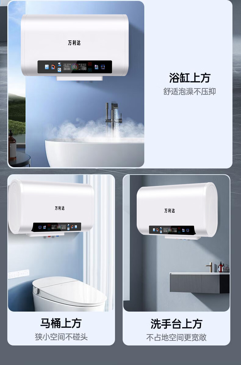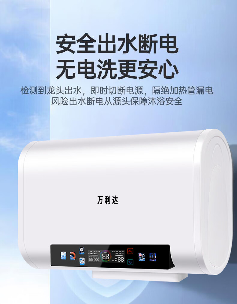 万利达电热水器家用卫生间一级能效速热储水式热水器厨房洗澡出租房节能 灰色机械【圆桶】100L 出水断电+防电墙 上门安装