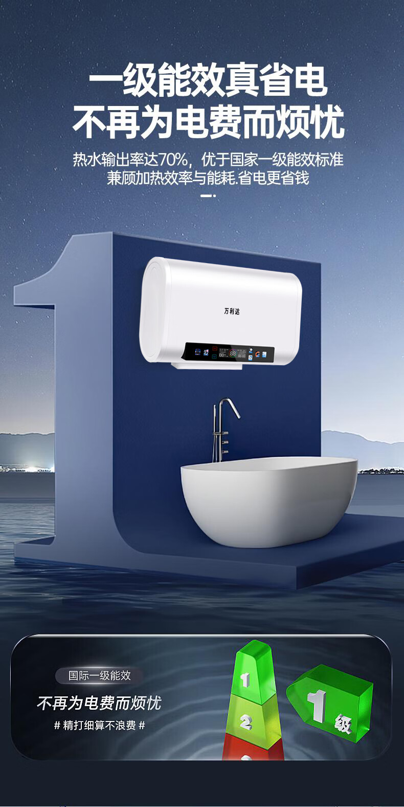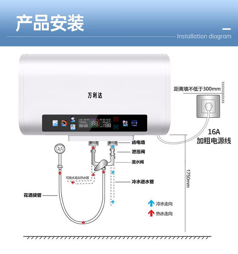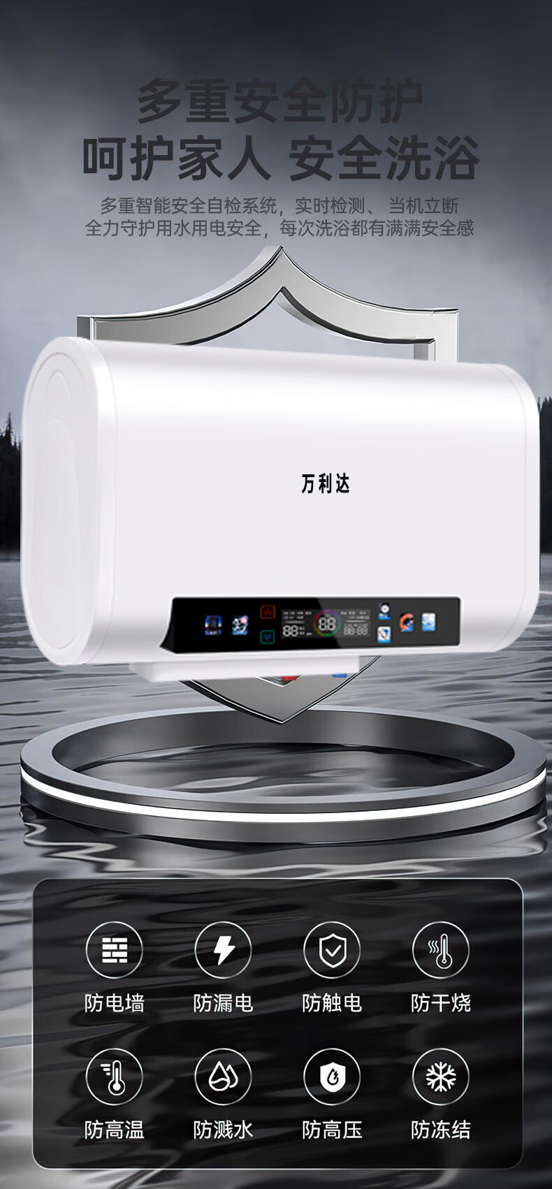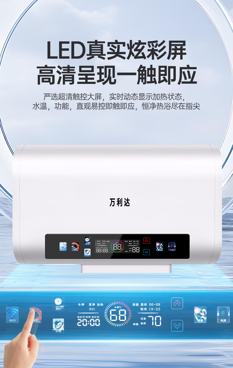 万利达电热水器家用卫生间一级能效速热储水式热水器厨房洗澡出租房节能 灰色机械【圆桶】100L 出水断电+防电墙 上门安装
