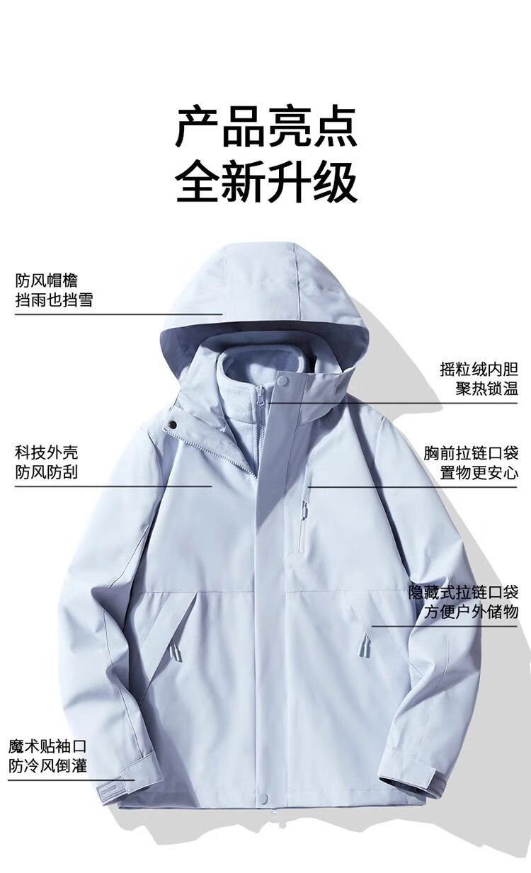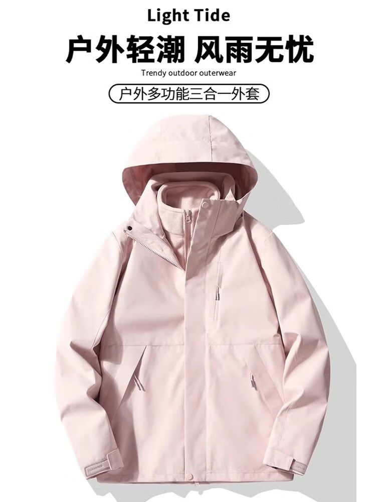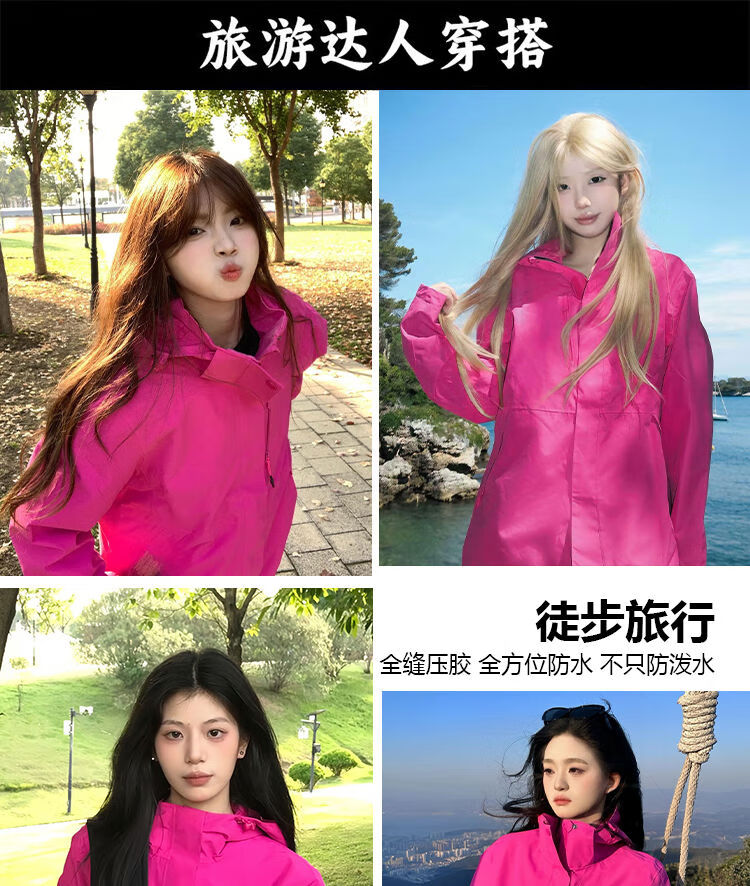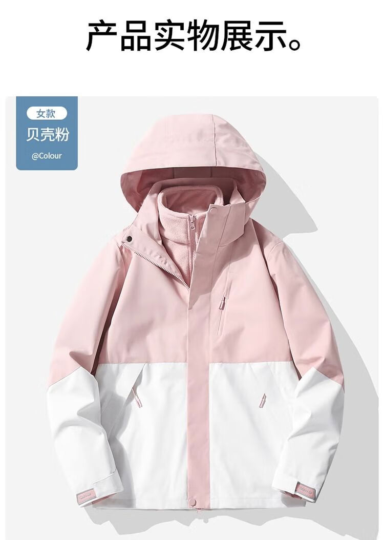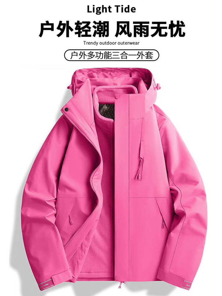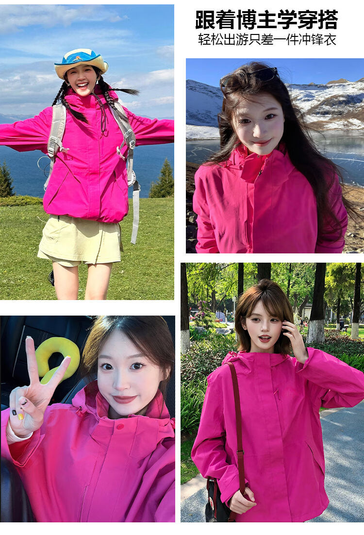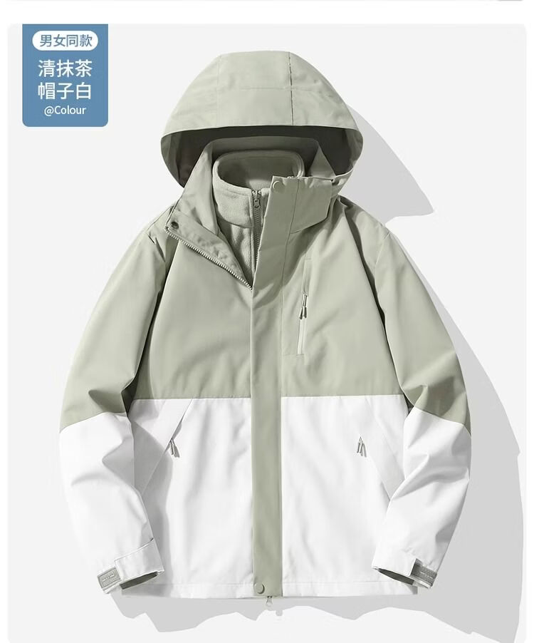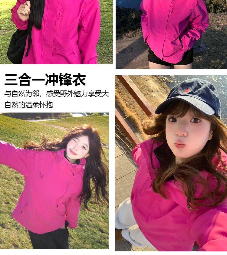 宰搂玫红色三合一冲锋衣女款2025新款多巴胺户外防风小个子徒步登山服 96888男女-苹果绿流云白三合一可拆卸 6XL