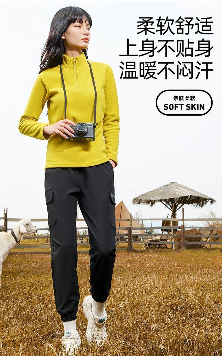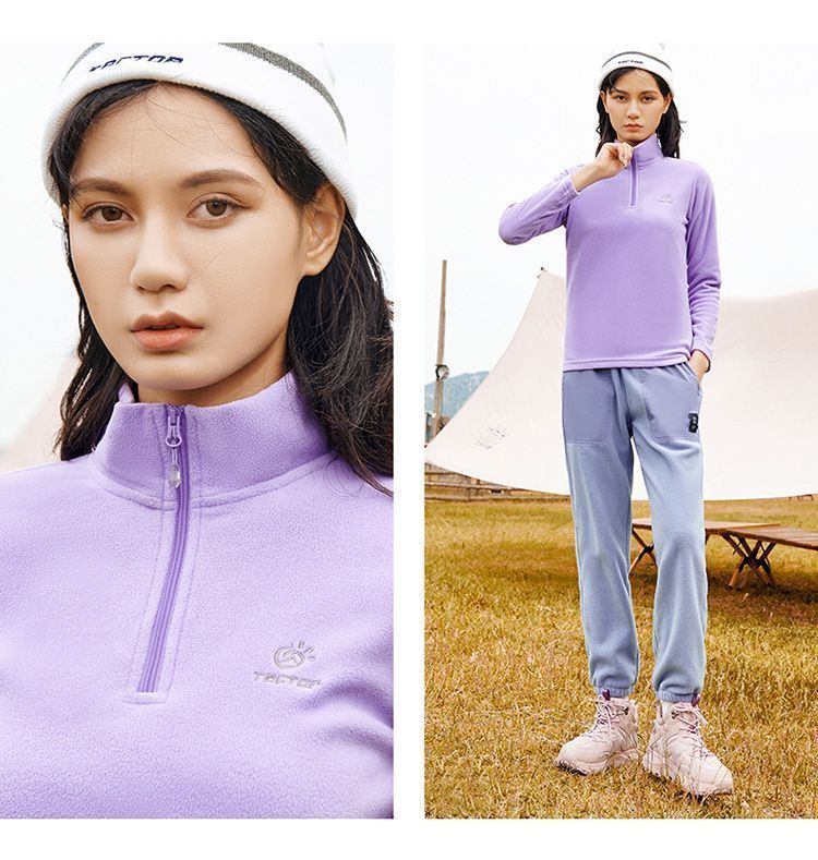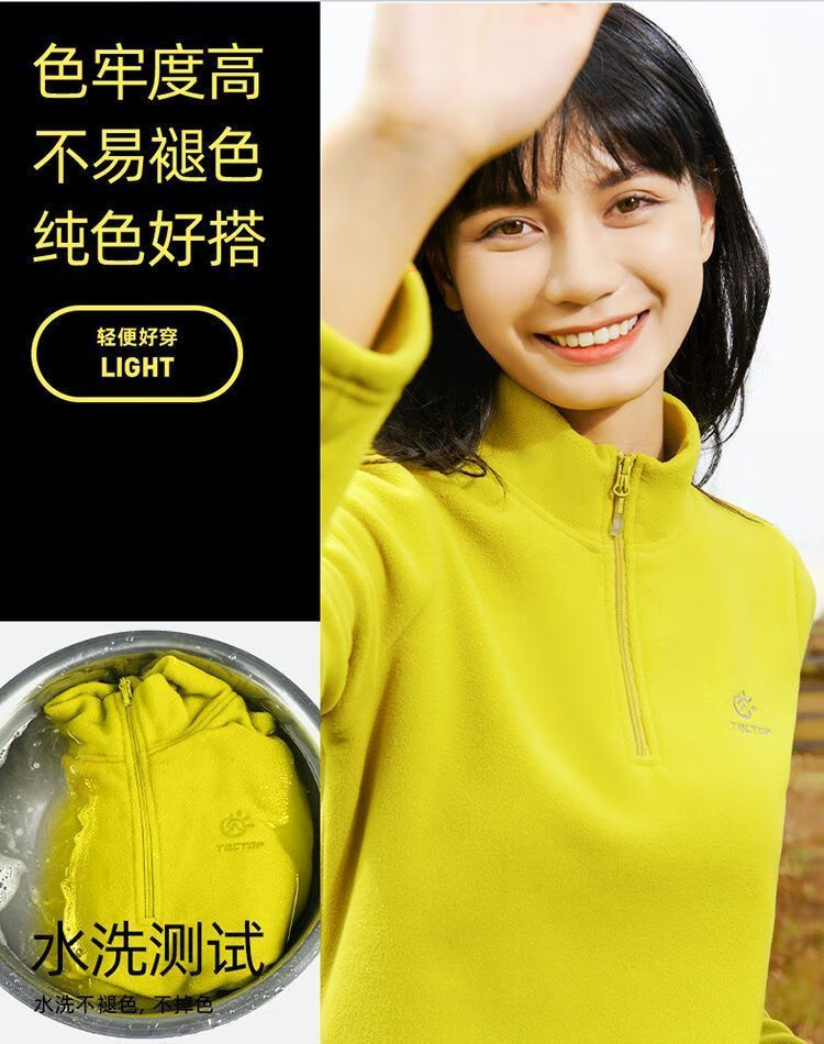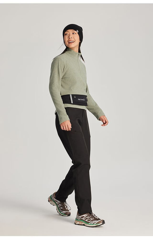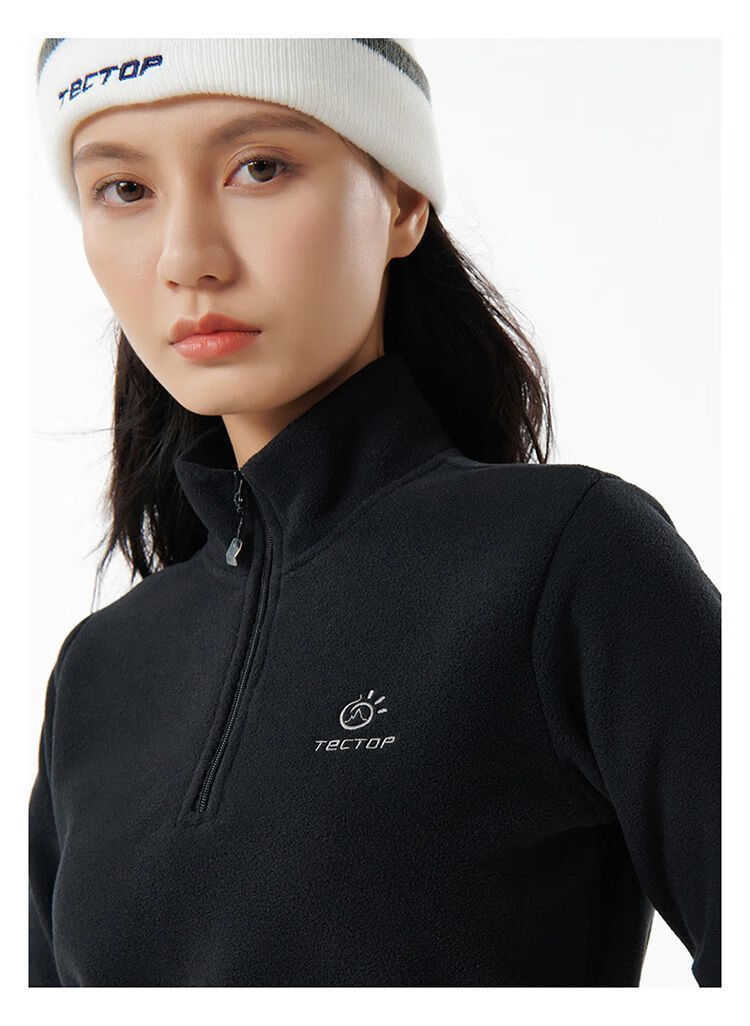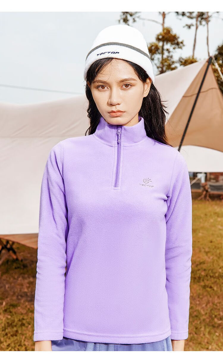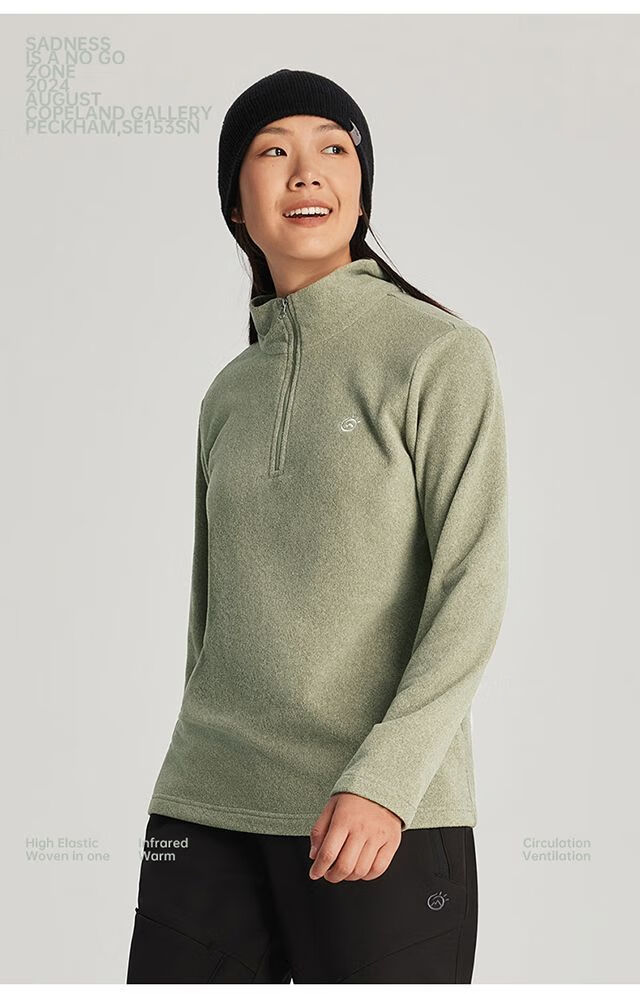 探拓(TECTOP)加绒抓绒衣冬季保暖户外登山徒步运动内搭衣摇粒绒打底衫立领 艾绿色-女款【加绒抓绒衣保暖 M