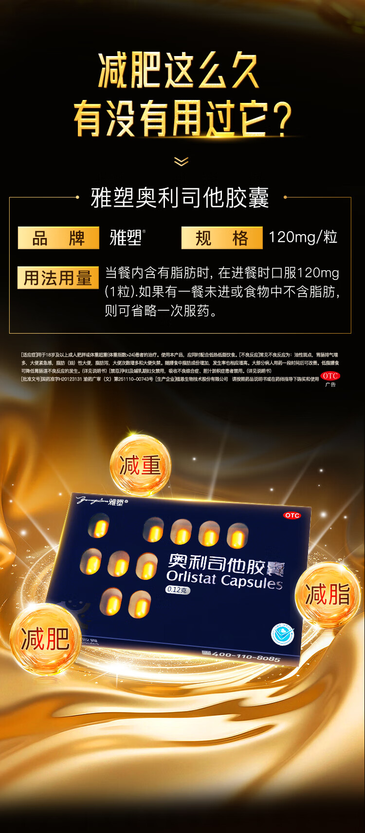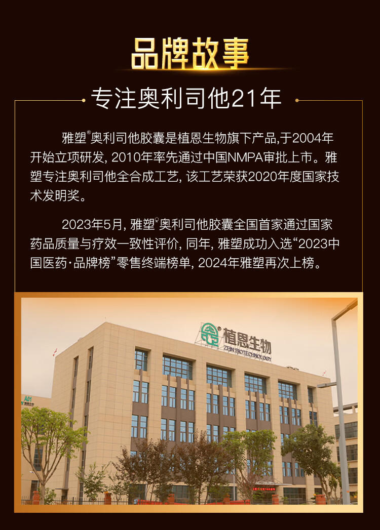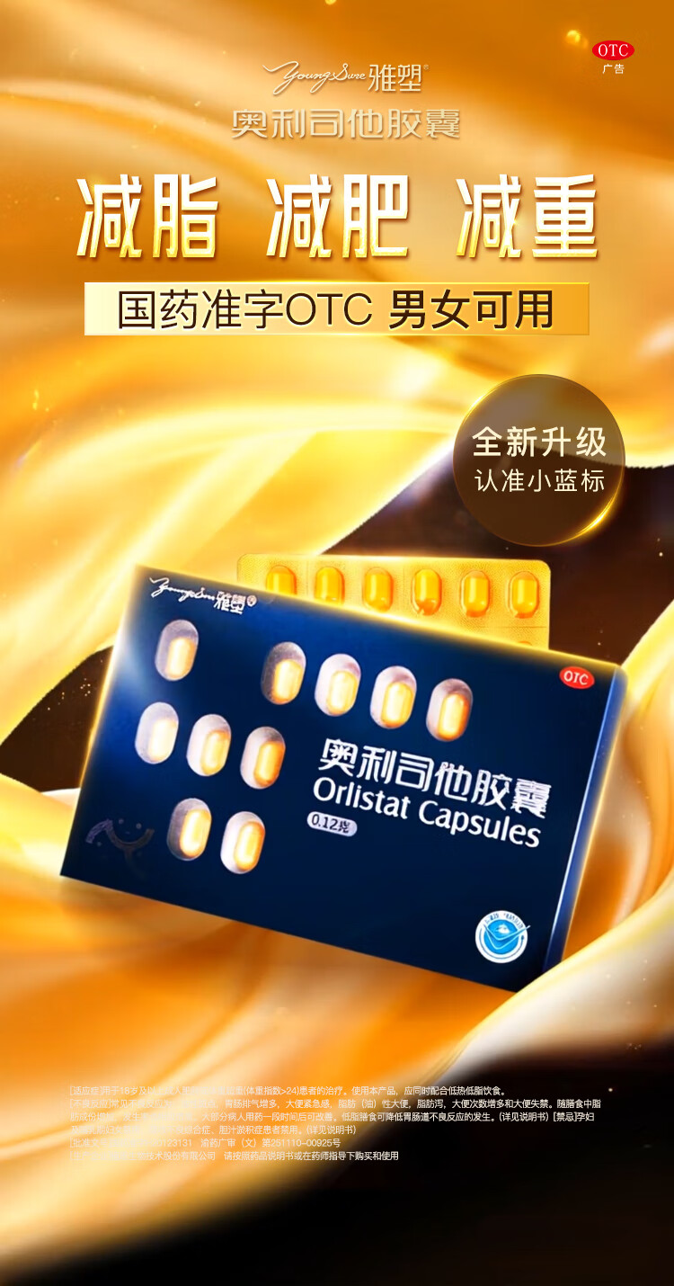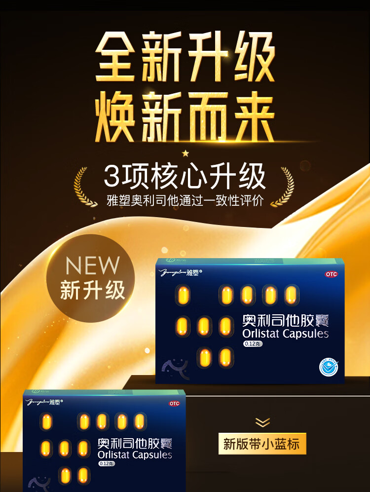 [雅塑]奥利司他胶囊 0.12g*18粒 1盒装 0.12g*18粒/盒 用于肥胖或体重超重患者(体重指数>24)的治疗