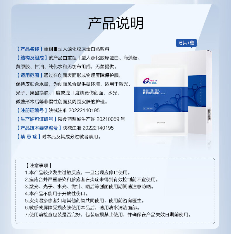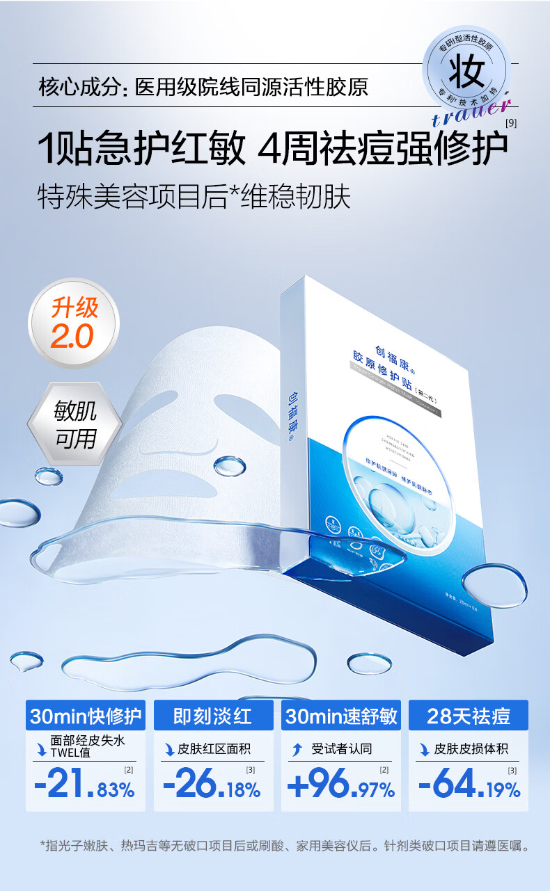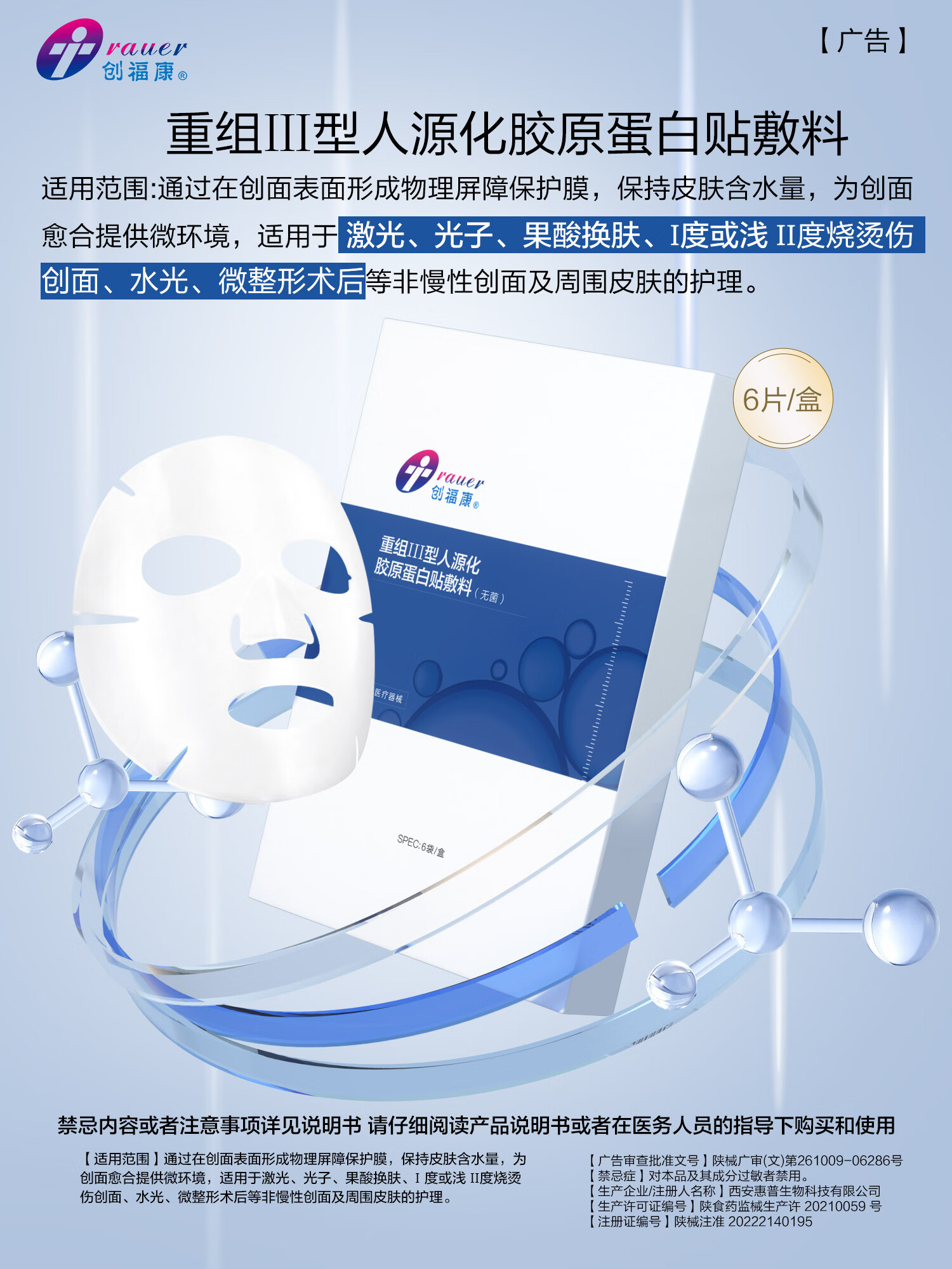 创福康重组胶原蛋白敷料医用修护贴紧致滋养透亮面膜组合 到手10片