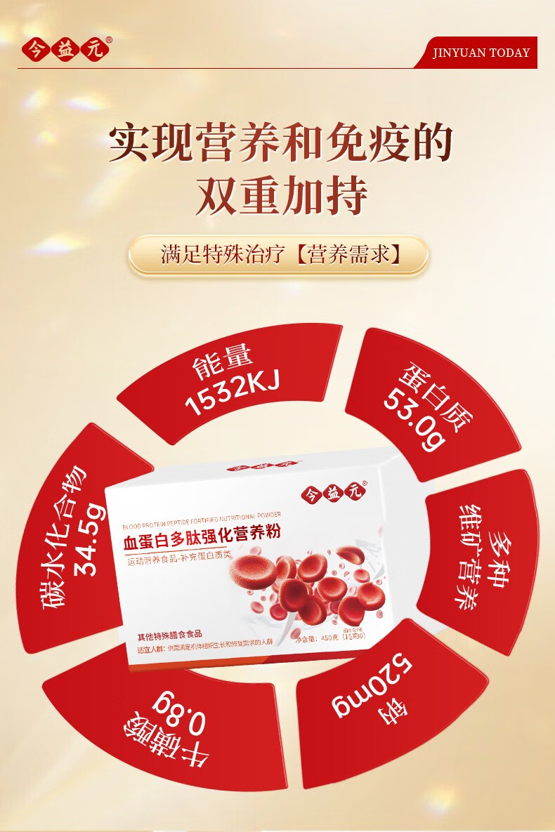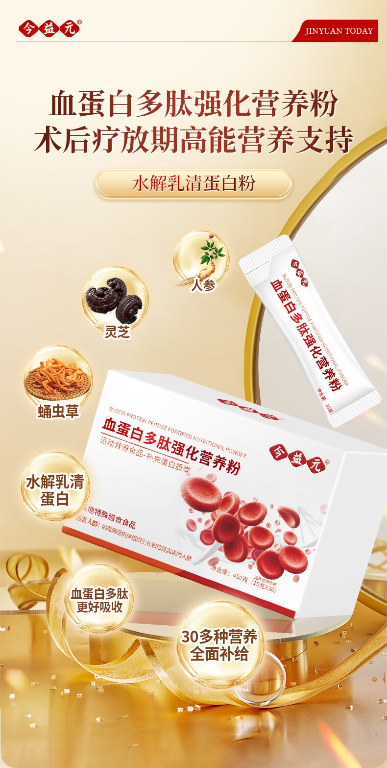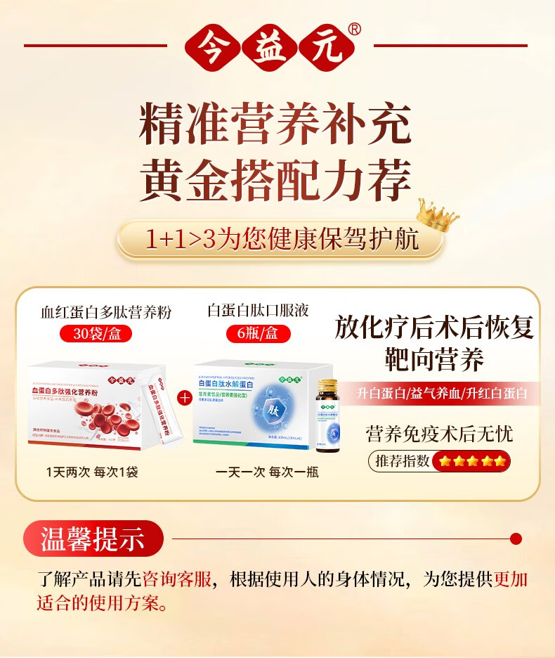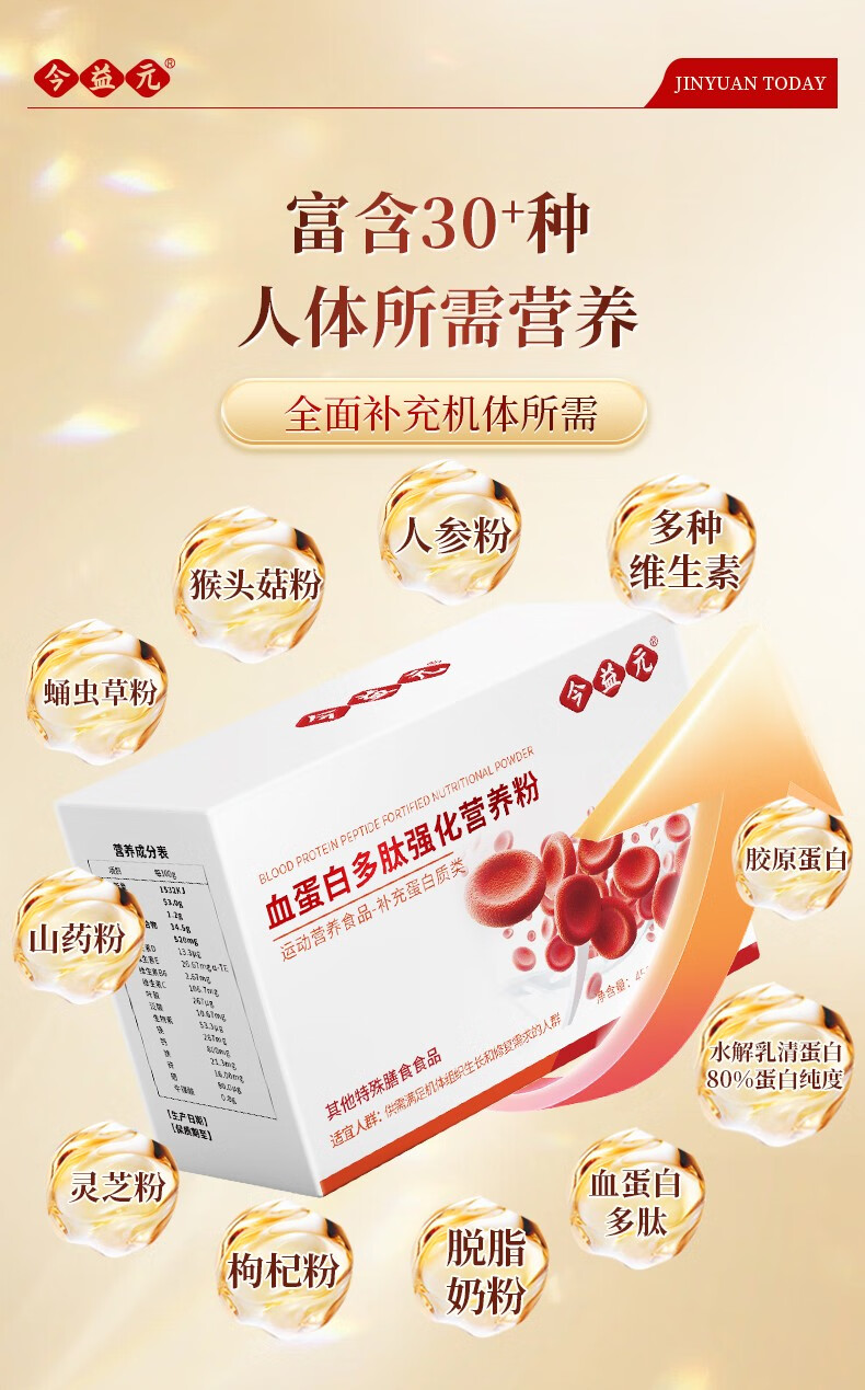 今益元血红蛋白肽水解乳清蛋白质营养粉术后恢复特殊时期补充营养品代餐 血蛋白2盒+白蛋白4盒 1200ml*60包
