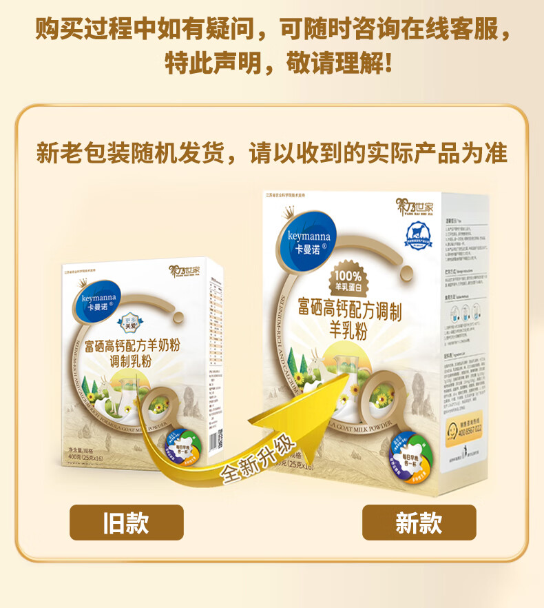卡曼诺 养乃世家卡曼诺富硒高钙配方羊奶粉学生全家营养中老年成人健康