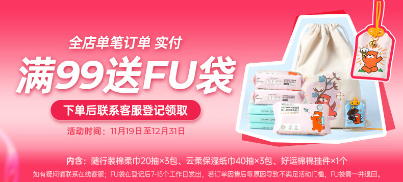 蓬松生活100%全棉柔巾80抽*6包婴儿一次性洗脸巾宝宝干湿两用纯棉