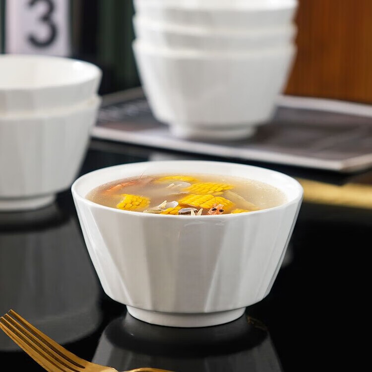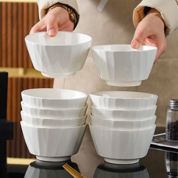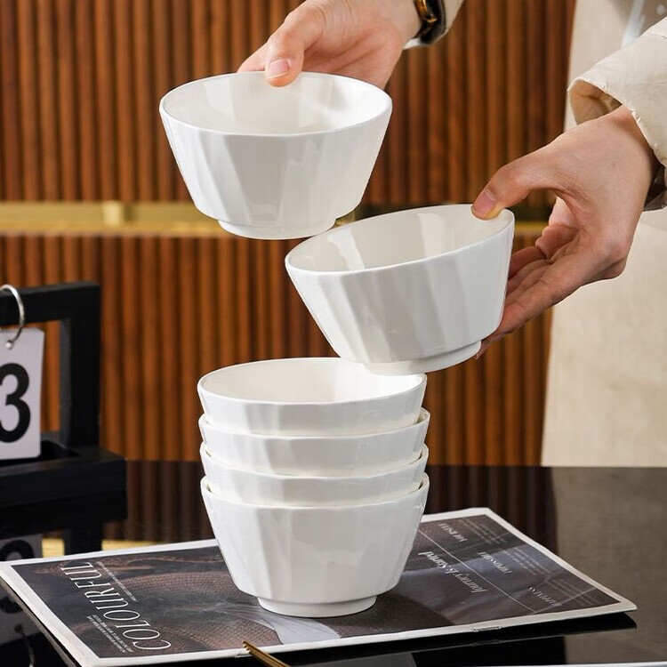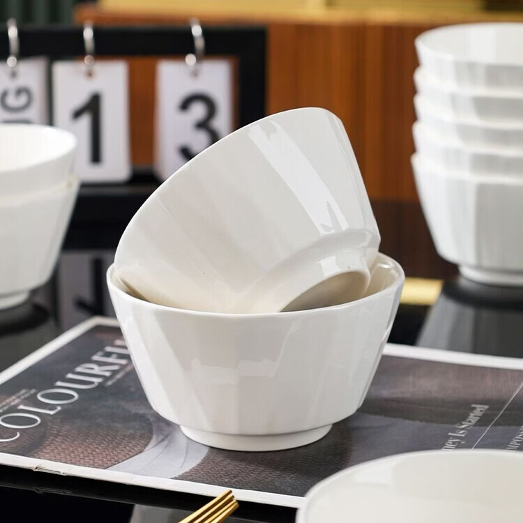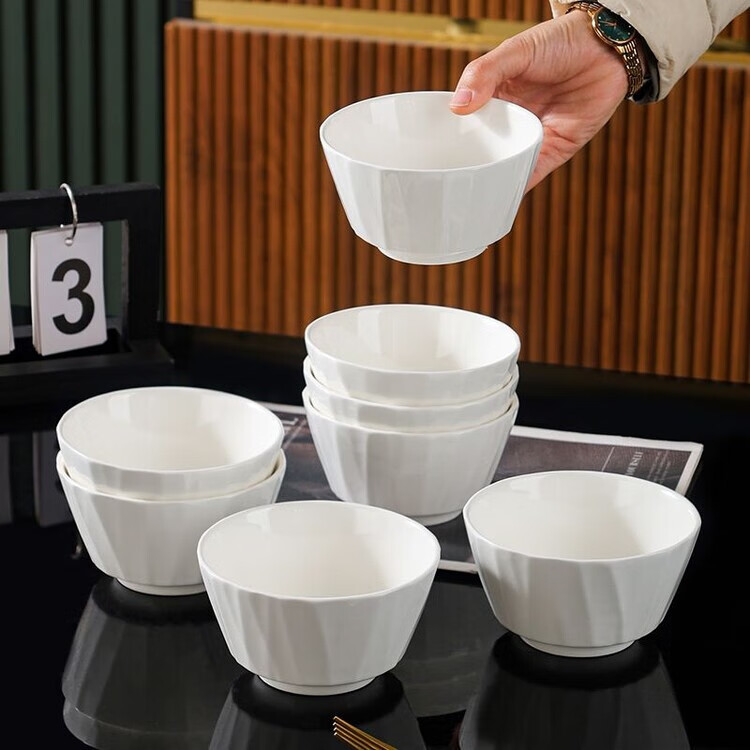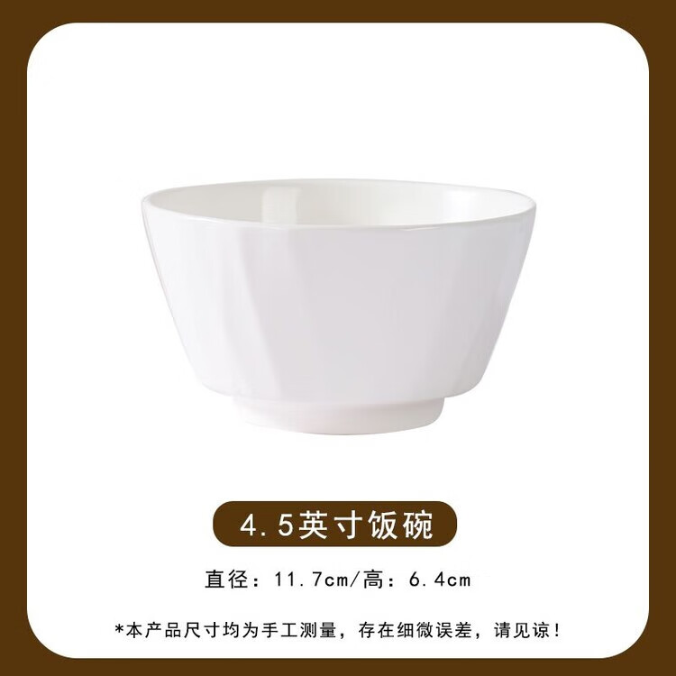 简漾简约纯白饭碗2025新款北欧风碗盘餐具碗家用吃饭琉璃釉下彩米饭碗 洁白如玉琉璃碗 4.5英寸2个装