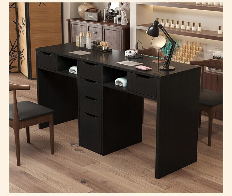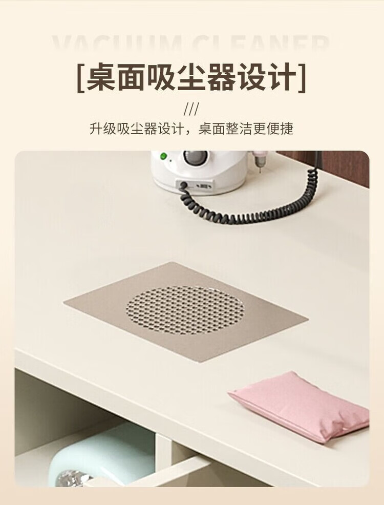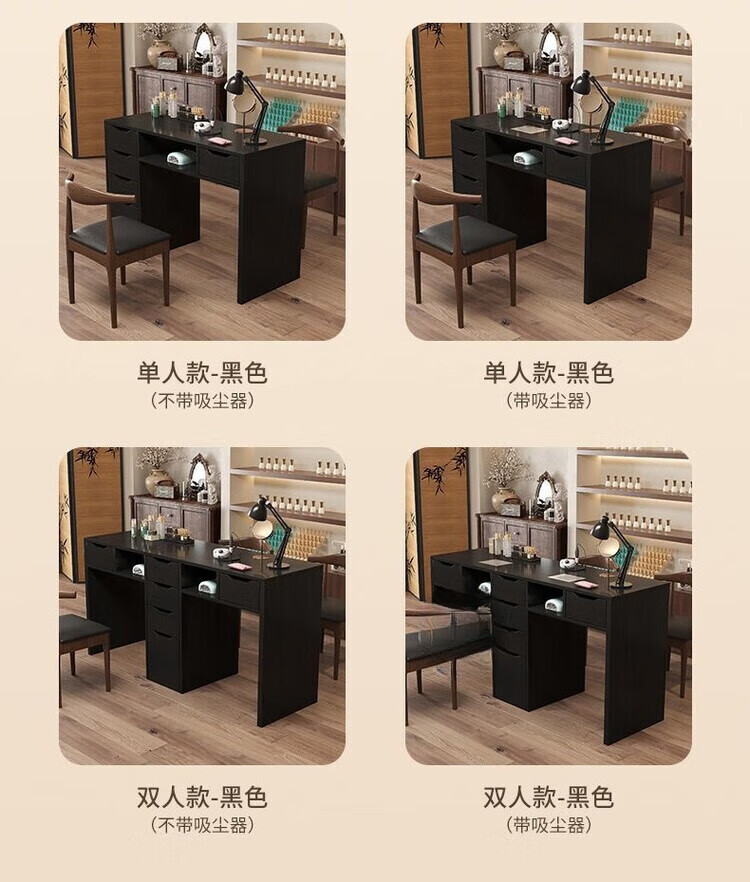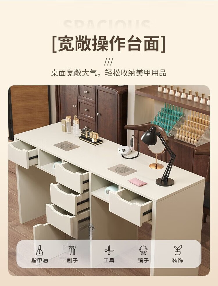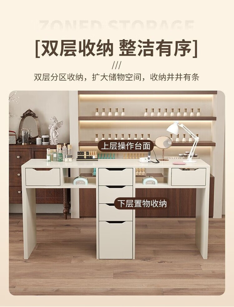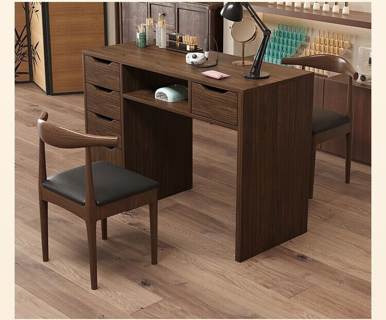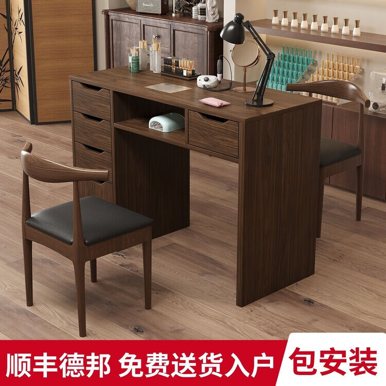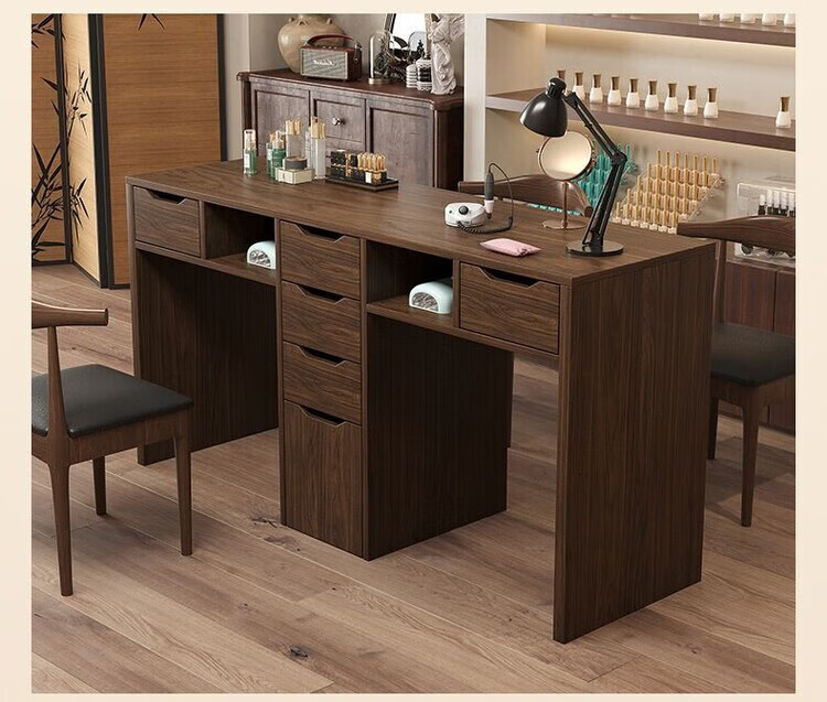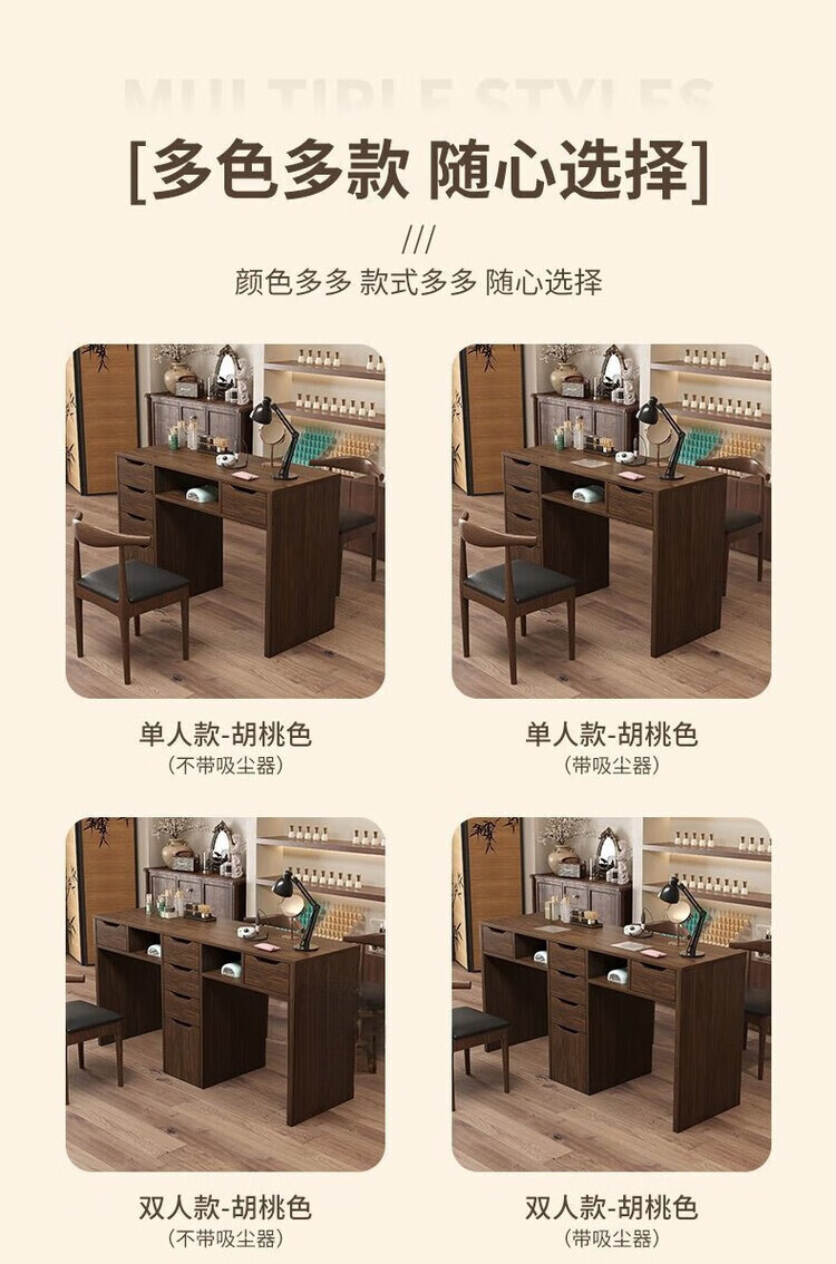 迈途森原木升级复古加厚收纳款多功能美甲简约吸尘器经济型双层美甲桌 克拉胡桃色--送货上门+包安装 普通款】100长40宽78高