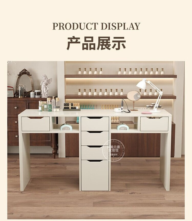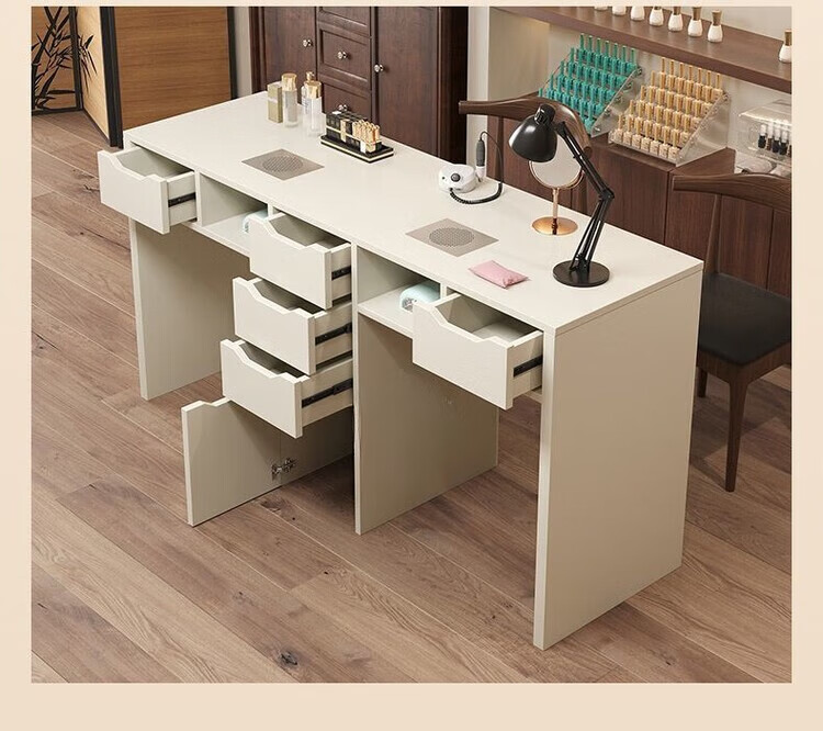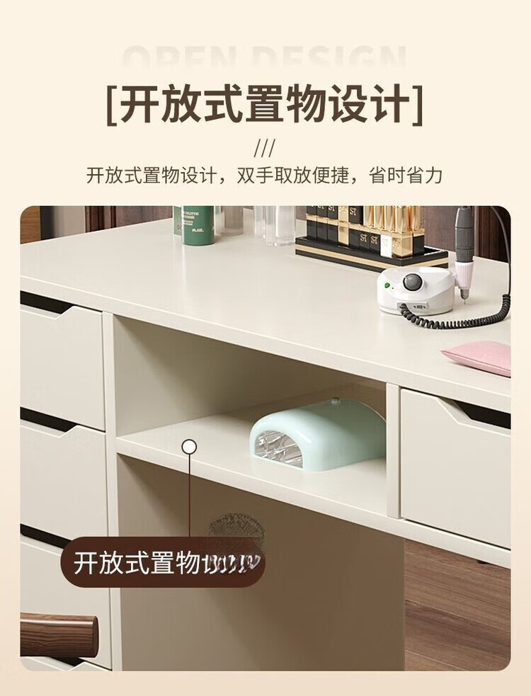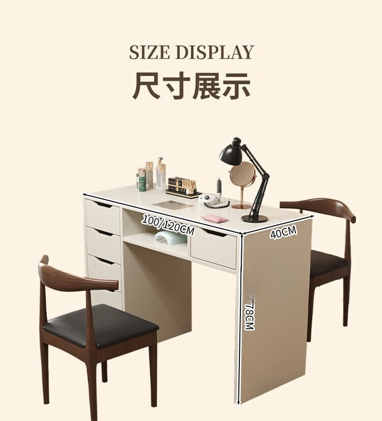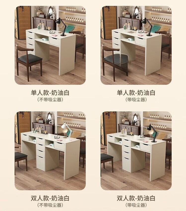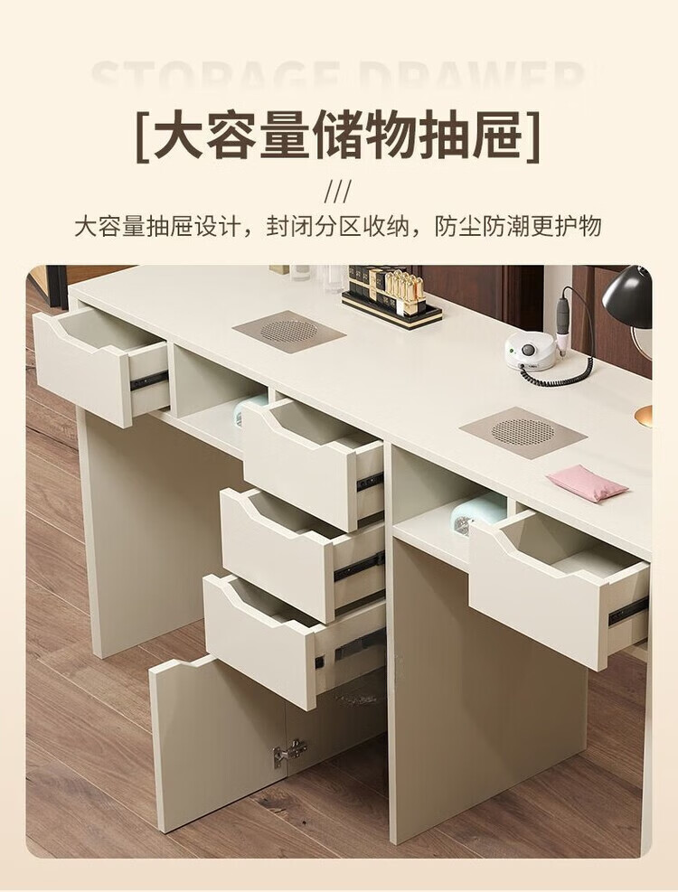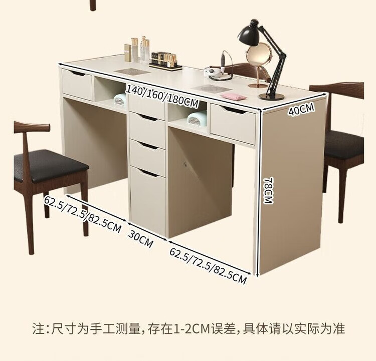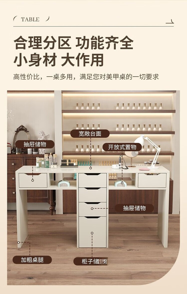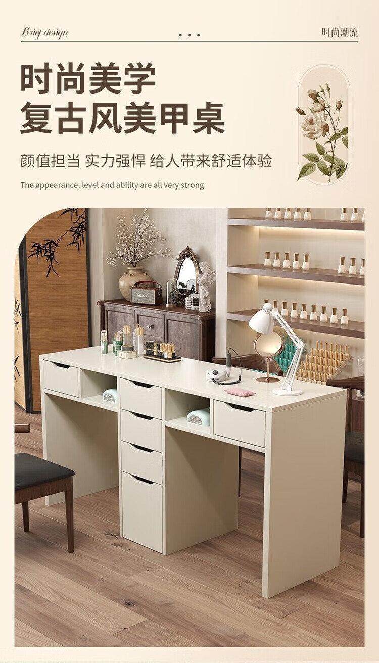 迈途森原木升级复古加厚收纳款多功能美甲简约吸尘器经济型双层美甲桌 克拉胡桃色--送货上门+包安装 普通款】100长40宽78高