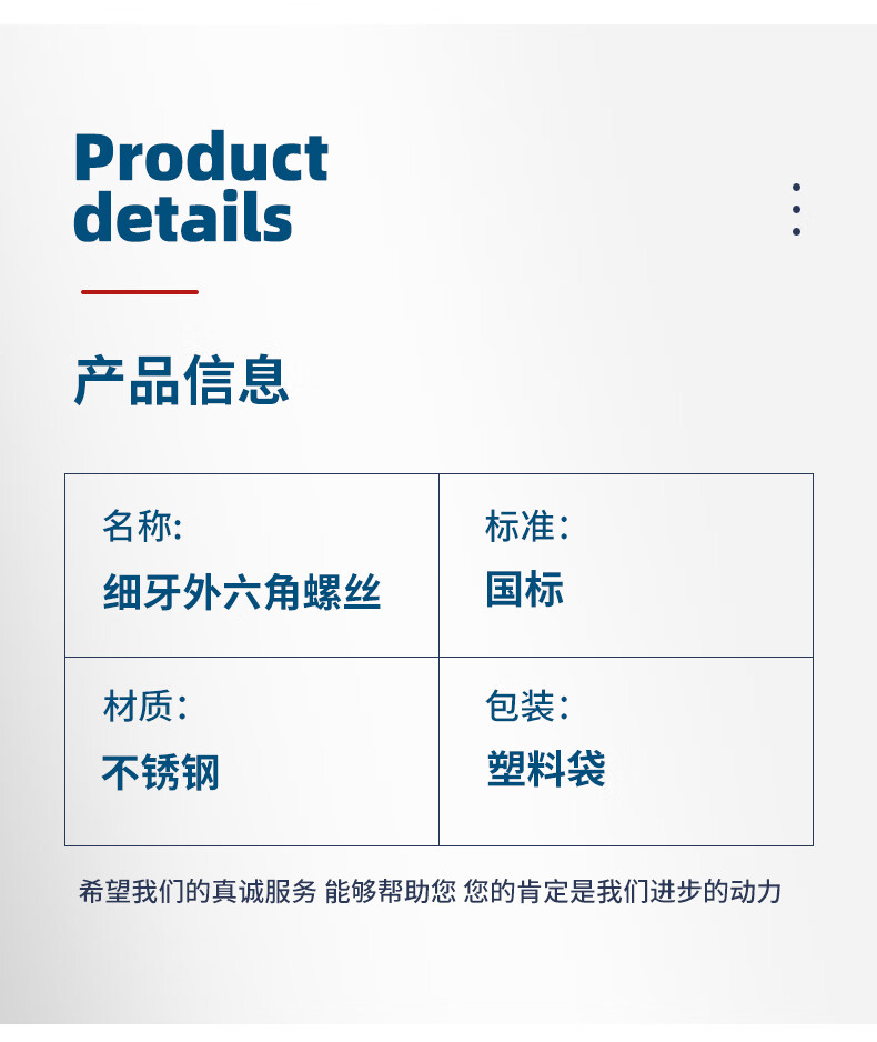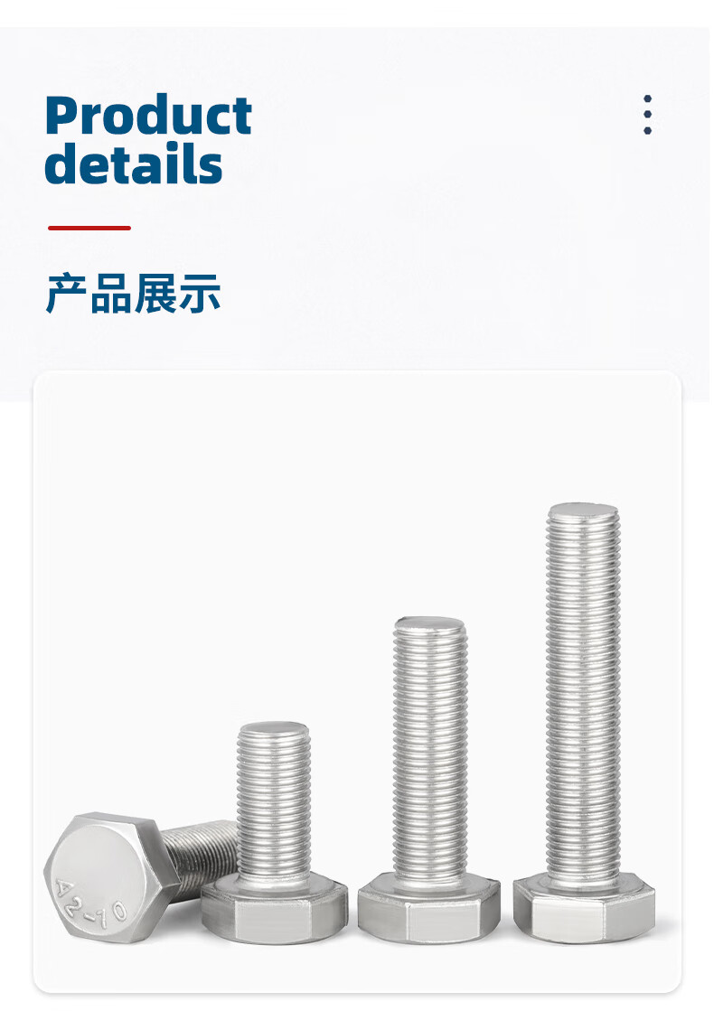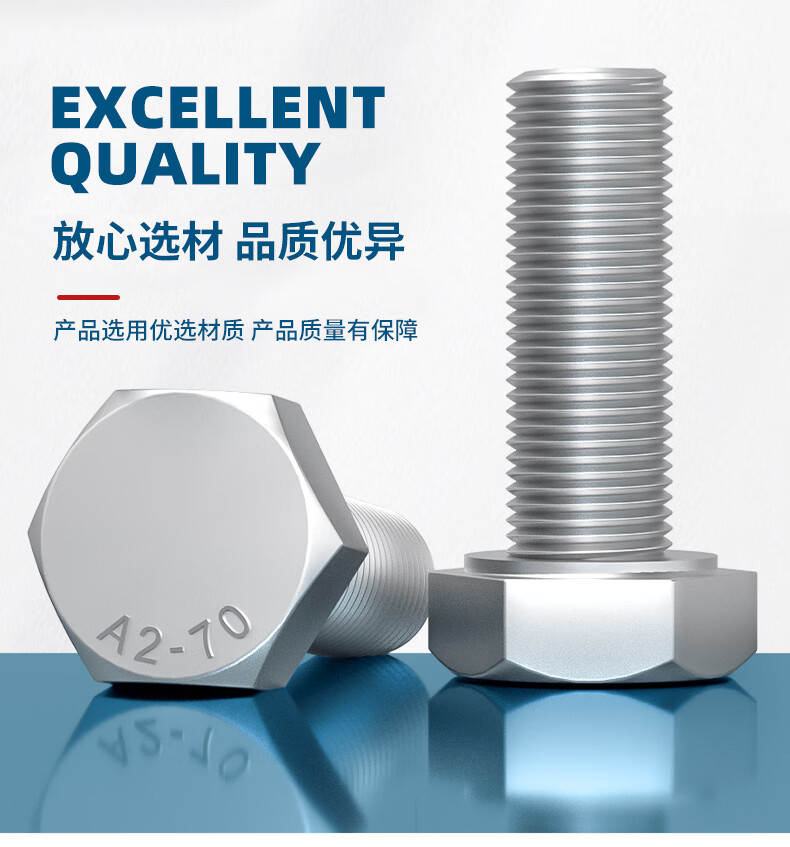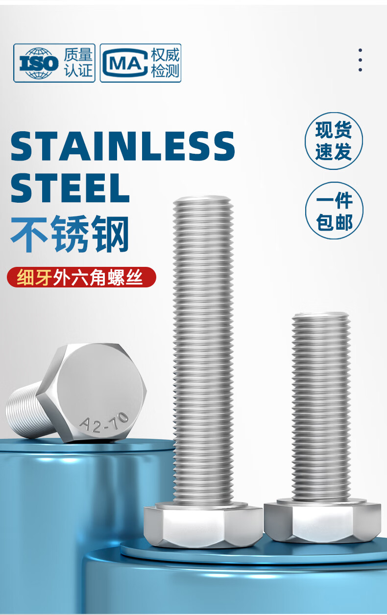 天卓五金细牙外六角螺丝304不锈钢螺栓M6M8M10M12M14M16M18M20*1/1.25/1.5 M6-0.75*8【50个】
