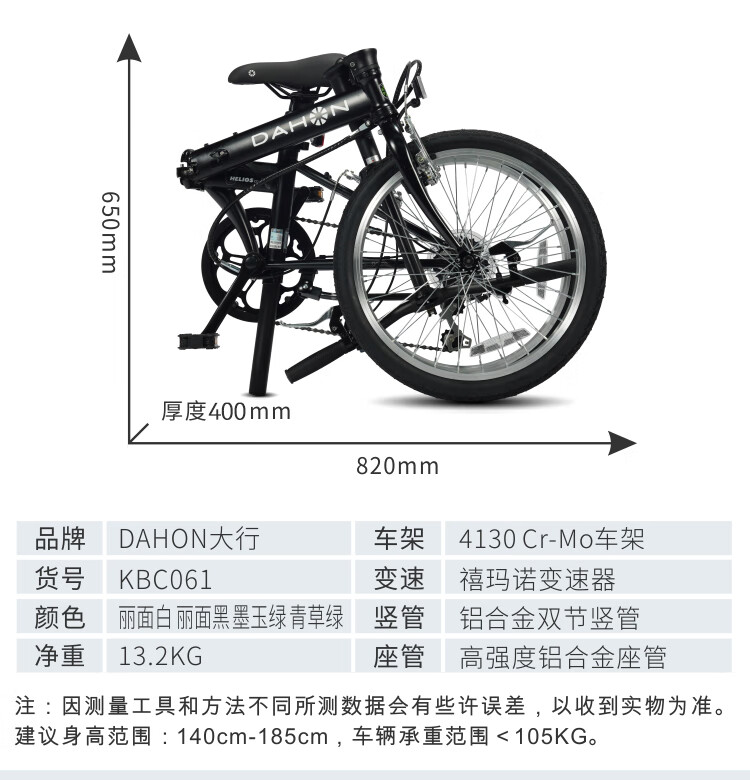 大行(DAHON)D6经典折叠自行车20英寸6速折叠车成人男女士学生折叠单车KBC061 墨绿色
