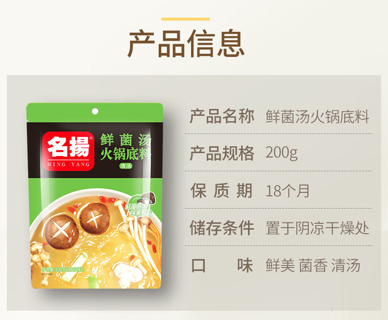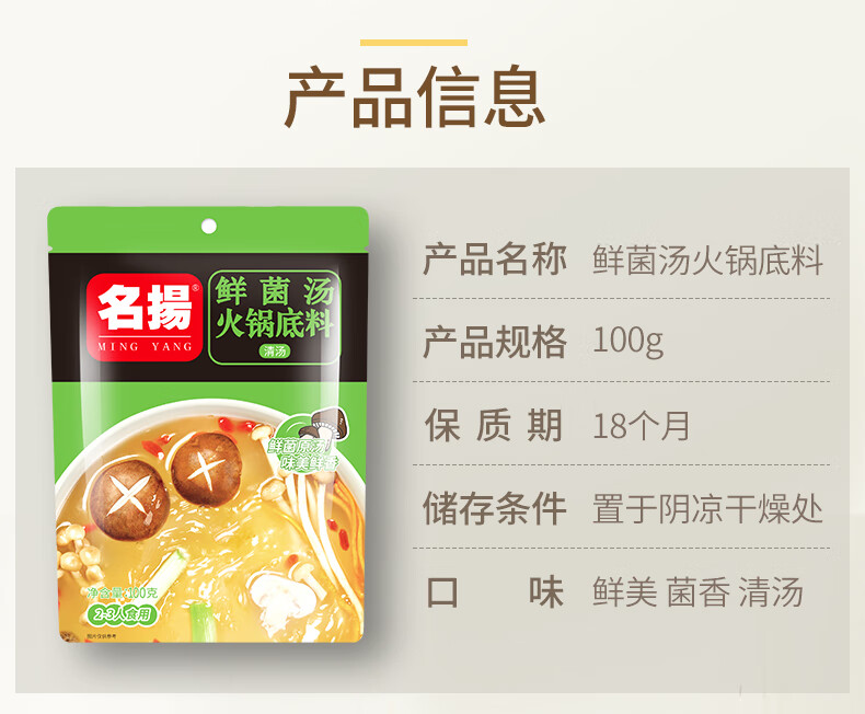名揚名扬菌汤火锅底料菌汤鲜美菌菇汤不辣火锅料家用鸳鸯锅 鲜菌汤100g+番茄100g