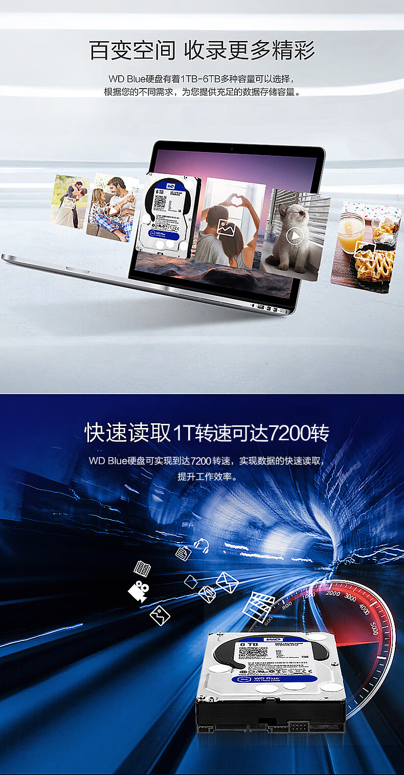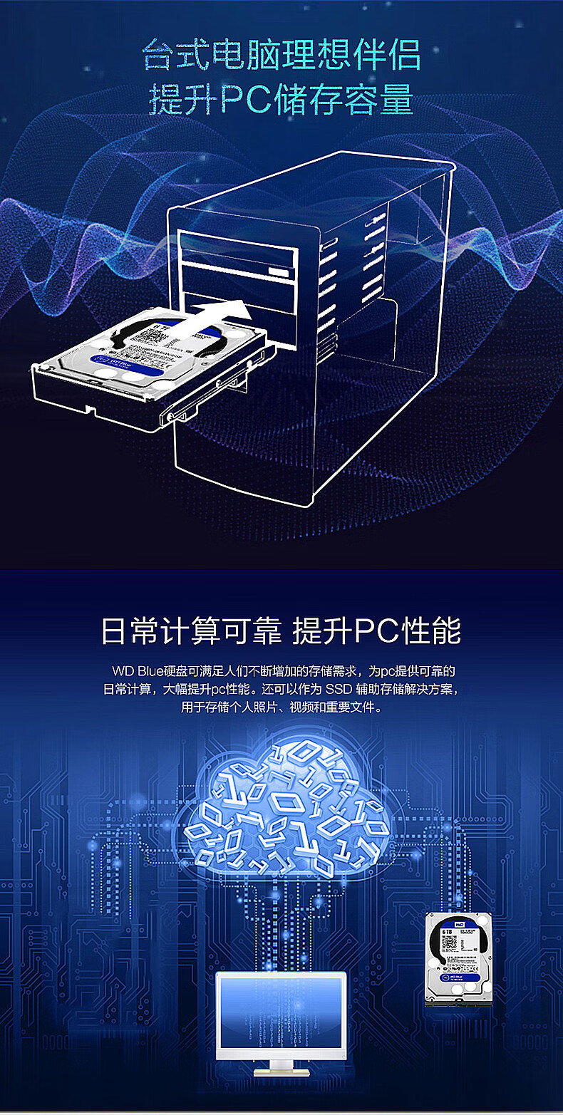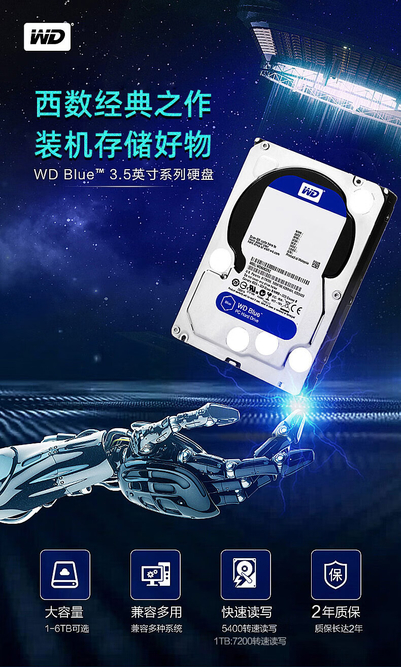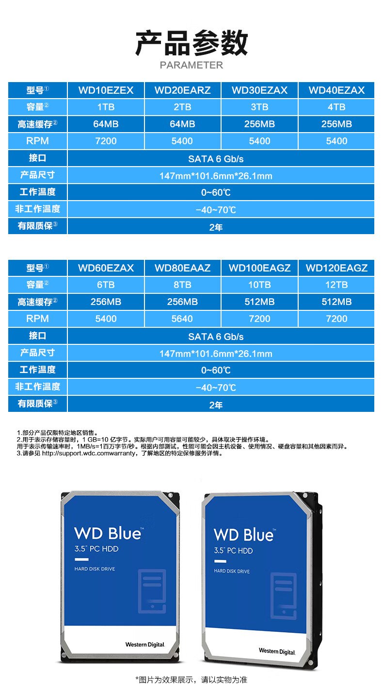 西部数据(WD)台式机机械硬盘 WD Blue 西数蓝盘 CMR垂直 SATA 4TB (WD40EZAX)