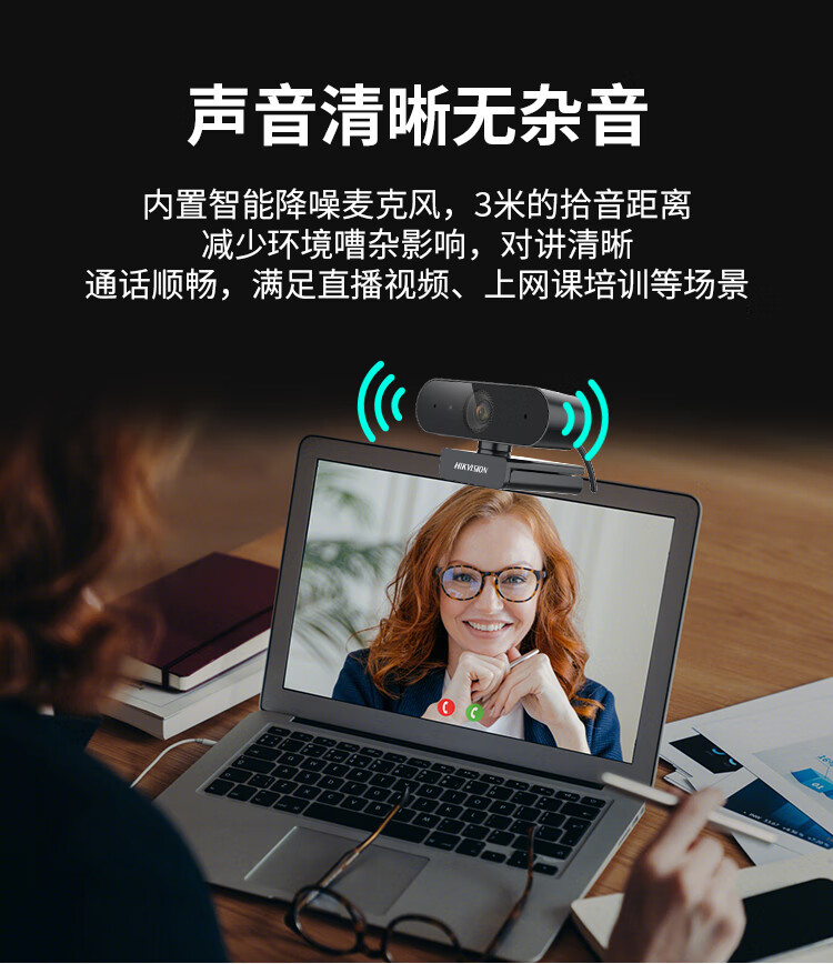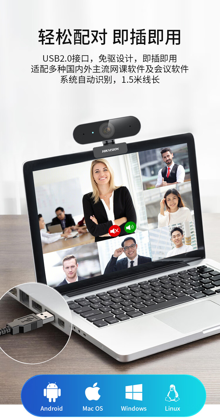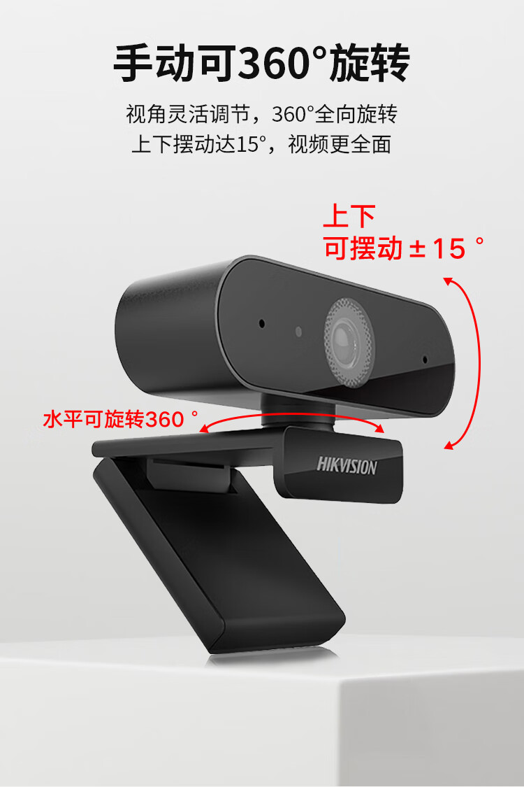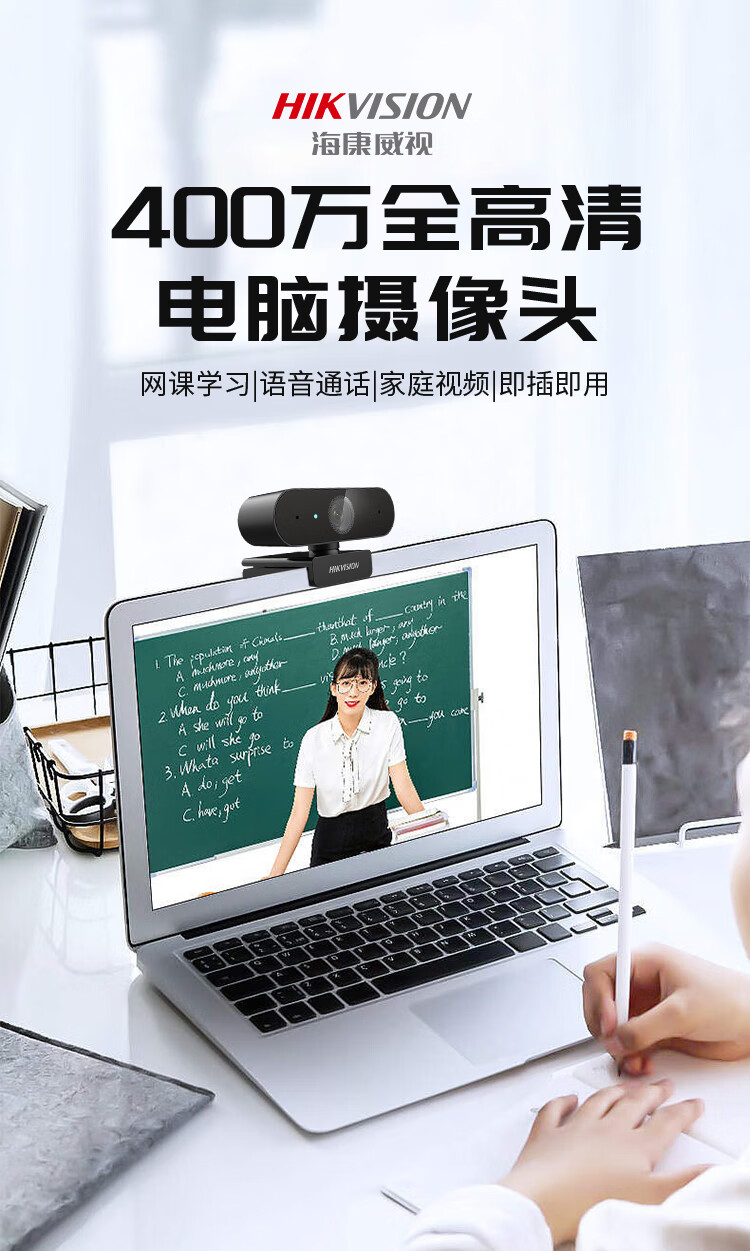 HIKVISION海康威视电脑摄像头2K高清广角带麦克风USB免驱即插即用外接笔记本台式机视频会议直播带货E14