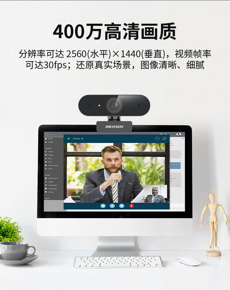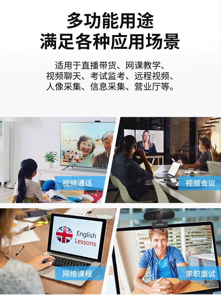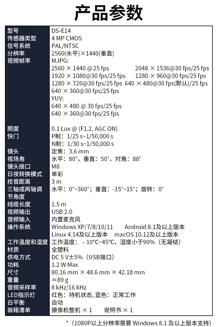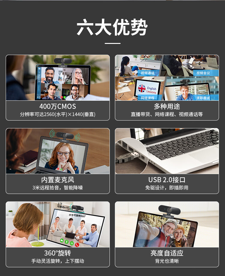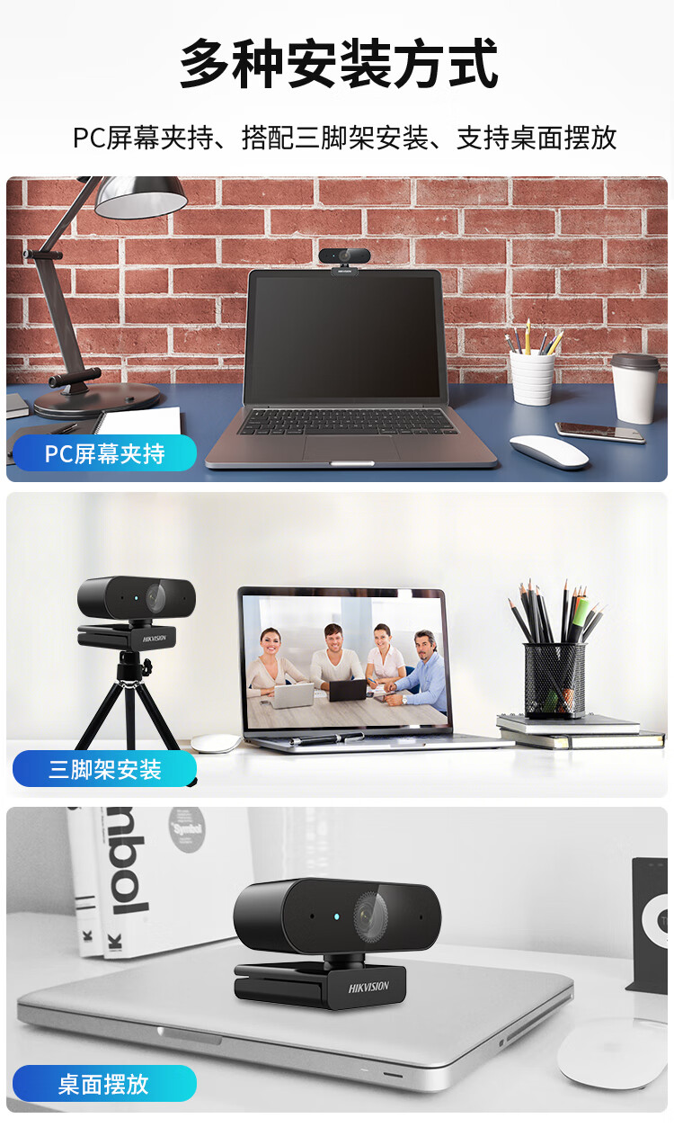 HIKVISION海康威视电脑摄像头2K高清广角带麦克风USB免驱即插即用外接笔记本台式机视频会议直播带货E14