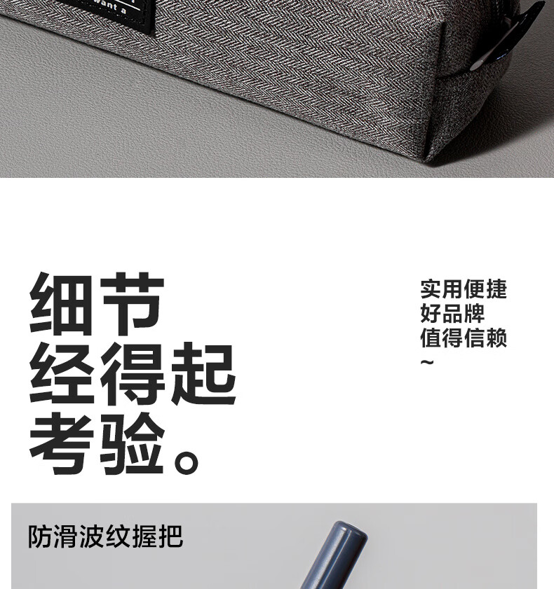 晨光(M&G)晨光笔袋大容量透明双层简约清新创意高中文具超大防水学生文具盒 浅灰色 晨光笔袋