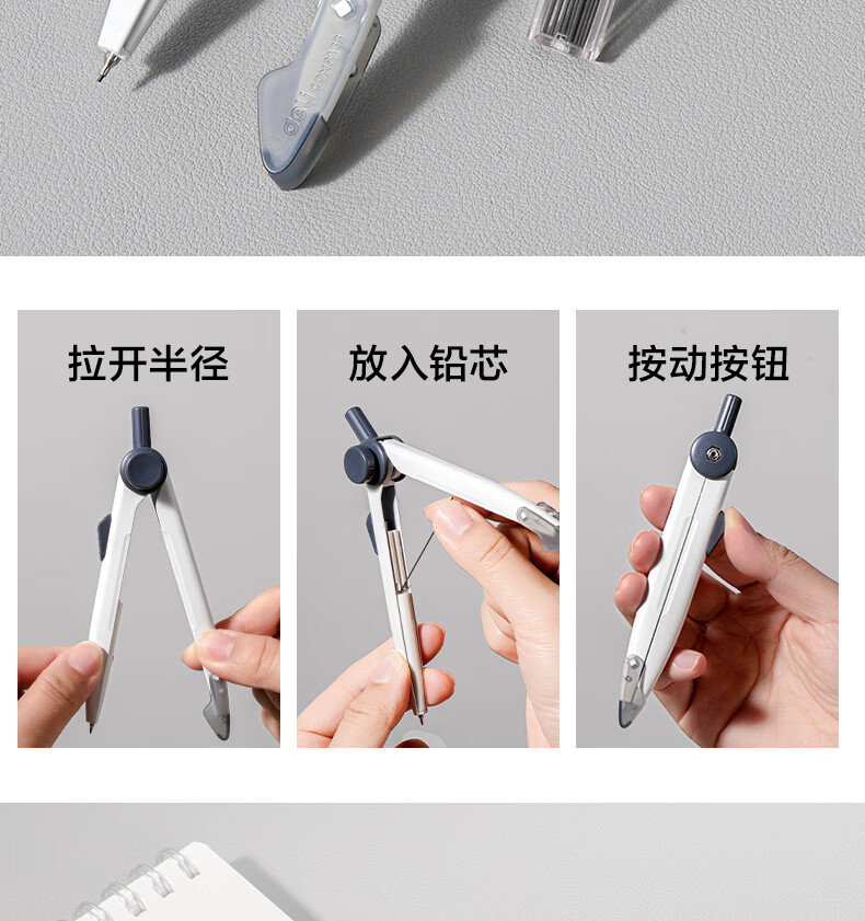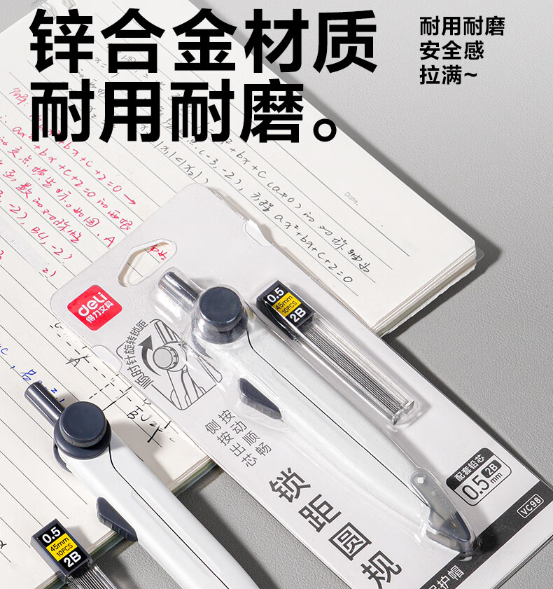 得力锁距圆规初中生小学生专用金属圆规高颜值中高考2b推荐角度可锁定稳定精准画圆黑科技高中生尺规 1卡装【笔型圆规】奶咖色 附0.5mm铅芯 无规格