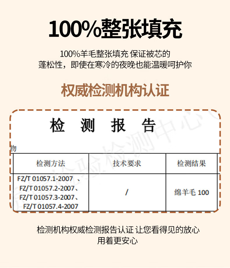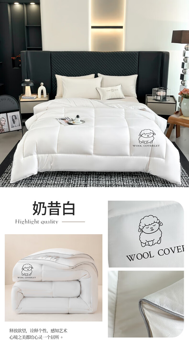 恒源祥澳洲进口羊毛被羊毛被子冬被子棉被加厚保暖冬季被芯8-10斤 方格款奶昔白 150x200cm 【4斤夏被】