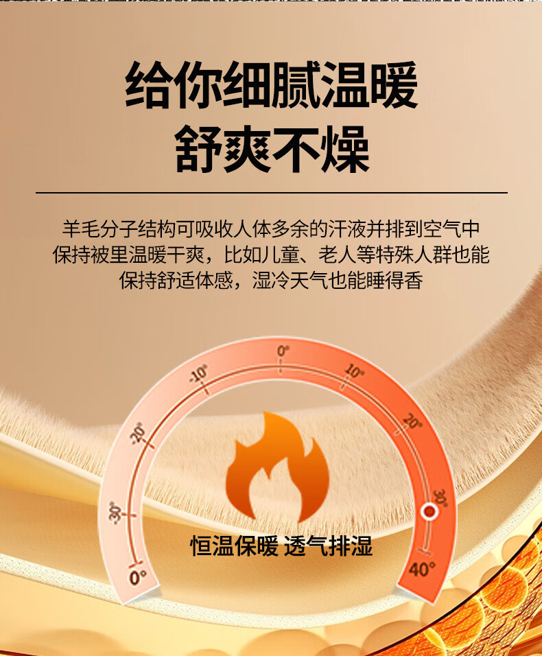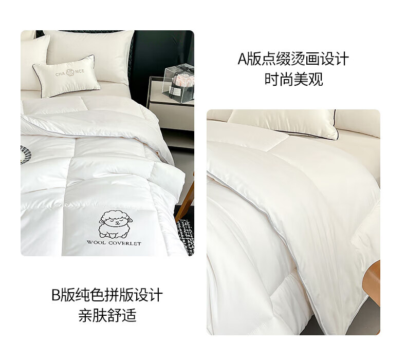恒源祥澳洲羊毛被春秋被冬被芯加厚保暖羊毛单人被子10斤厚棉被褥 白色 150x200cm【4斤夏被】