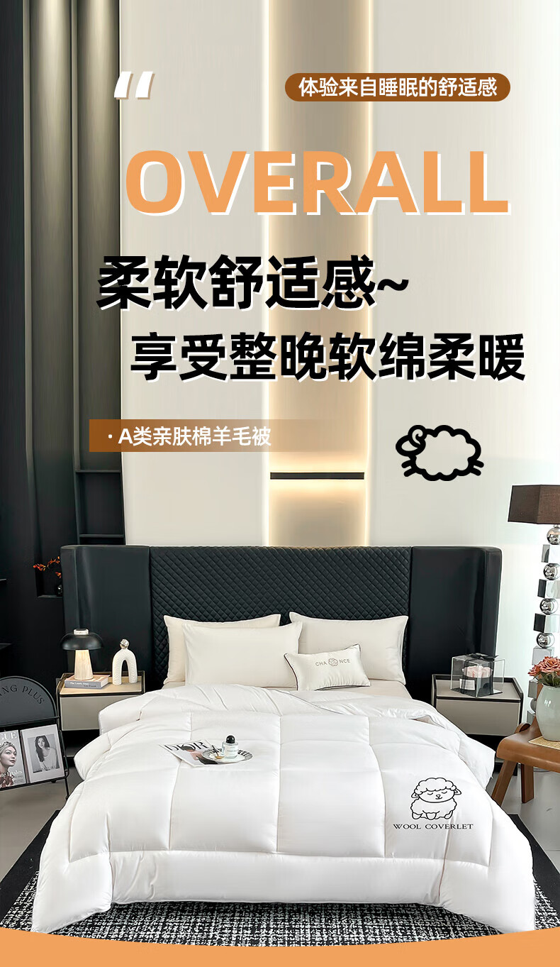 恒源祥高端A类进口澳洲绵羊毛被子10斤厚冬被冬被8斤加厚被芯春秋被保暖 白色 150*200cm【3.6斤春秋被】