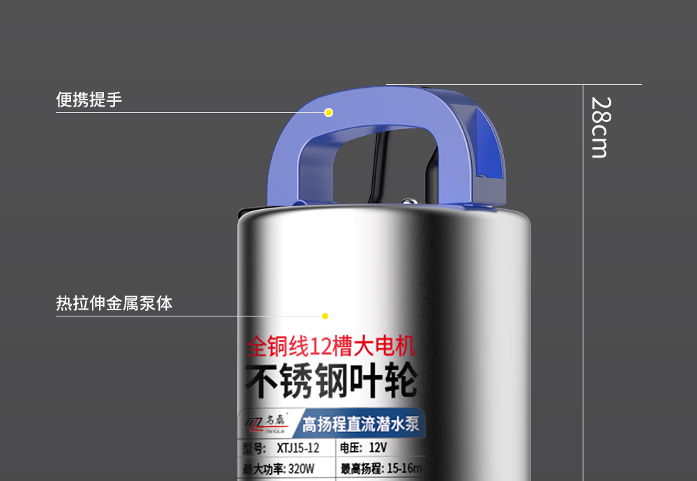 名磊直流潜水泵小型电动车抽水泵家用浇菜灌溉水泵 12V320W10米线