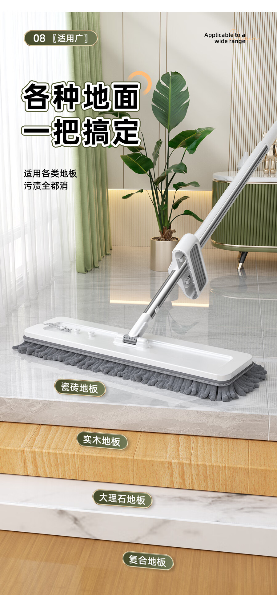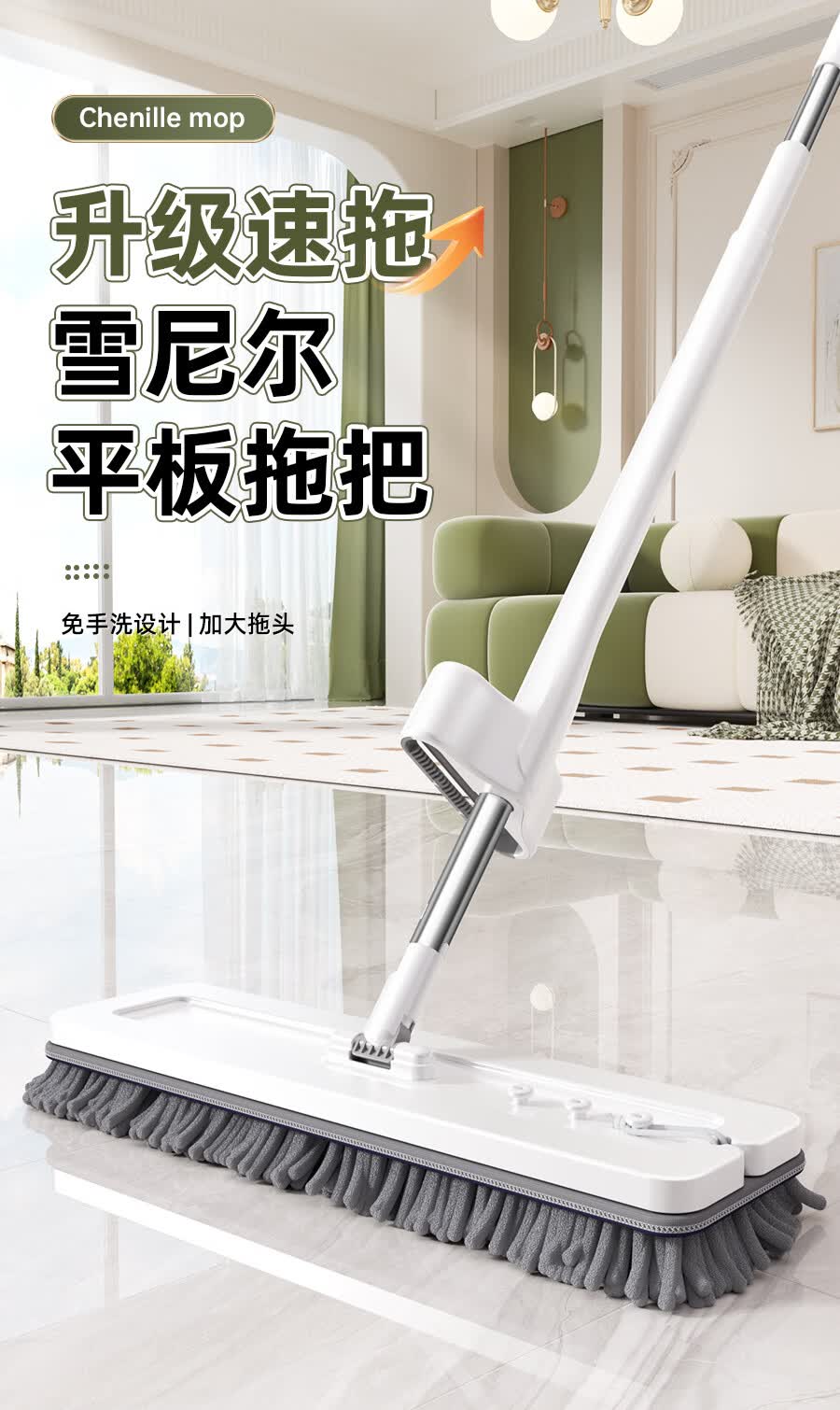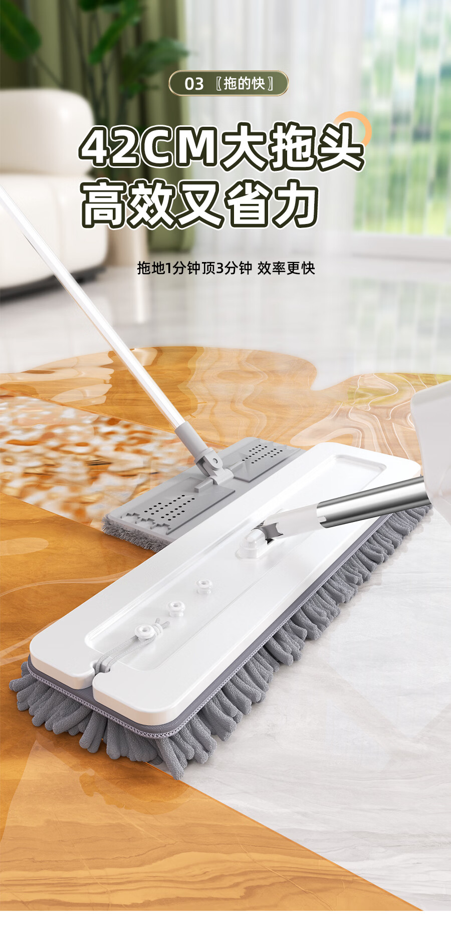 百家好世拖把家用免手洗一体杆干湿两用大面板加厚纤维布懒人拖地神器 标准款刮水平拖1布
