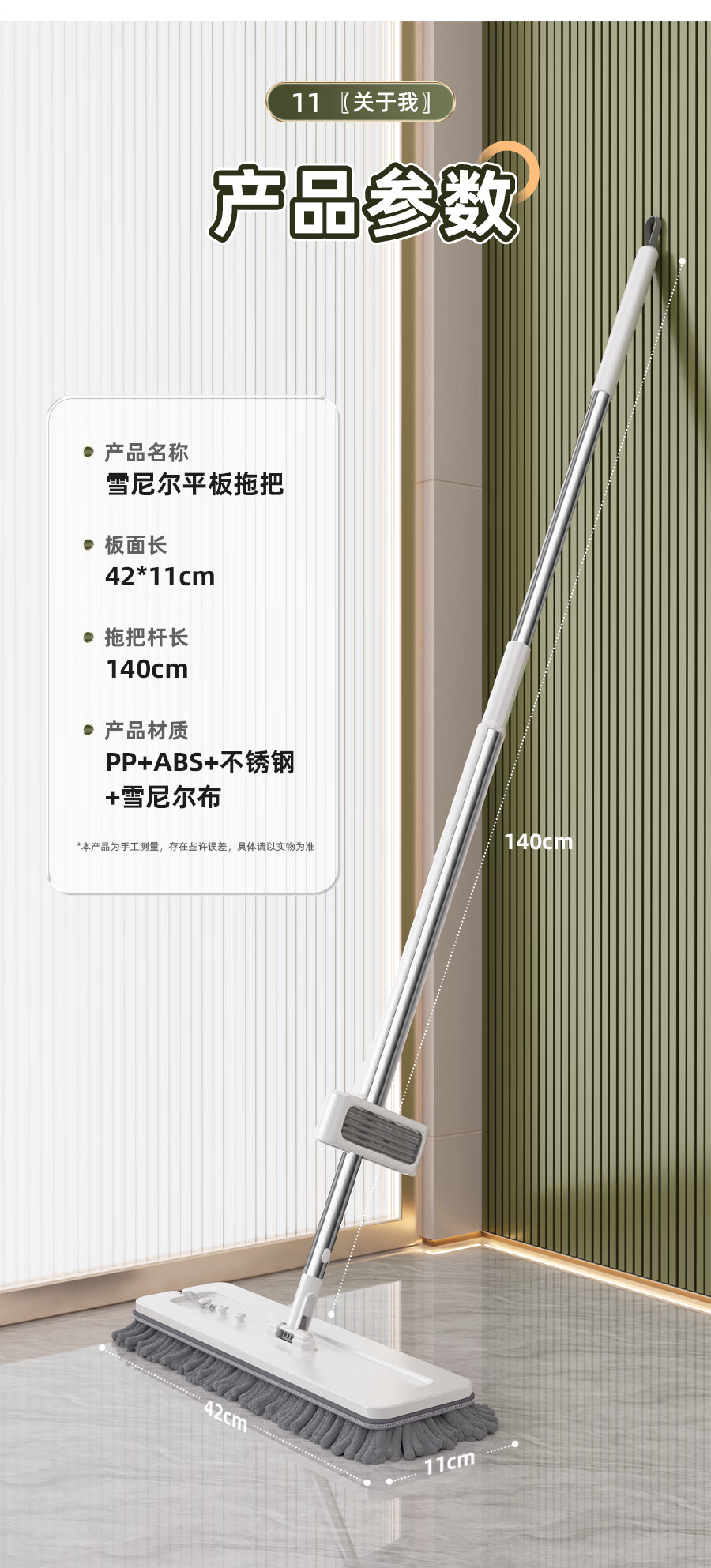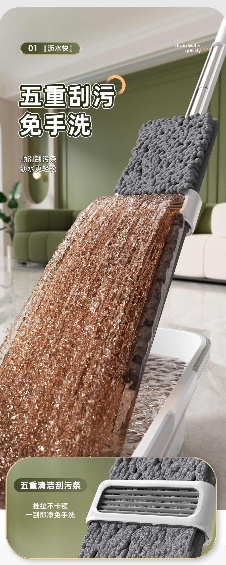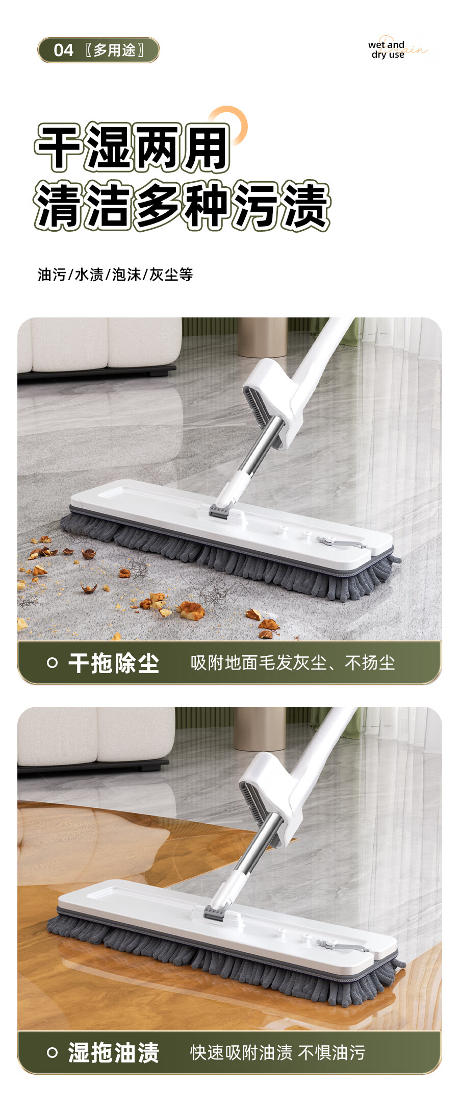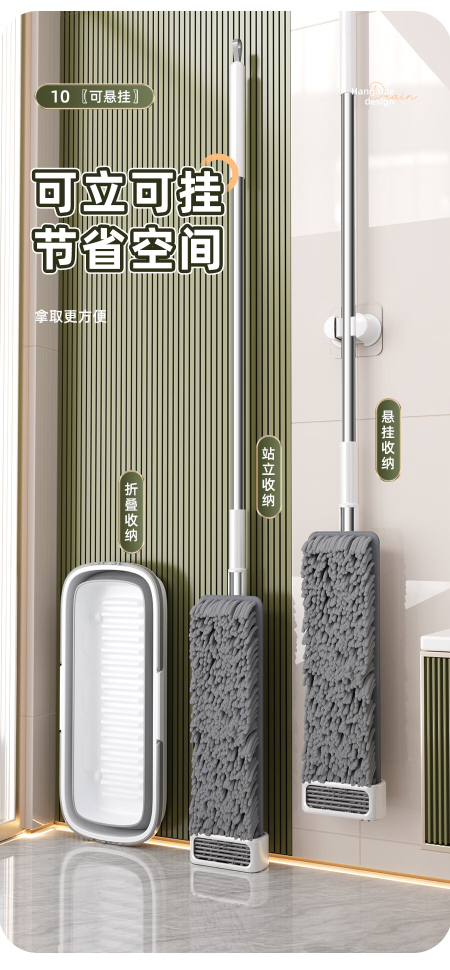 百家好世拖把家用免手洗一体杆干湿两用大面板加厚纤维布懒人拖地神器 标准款刮水平拖1布