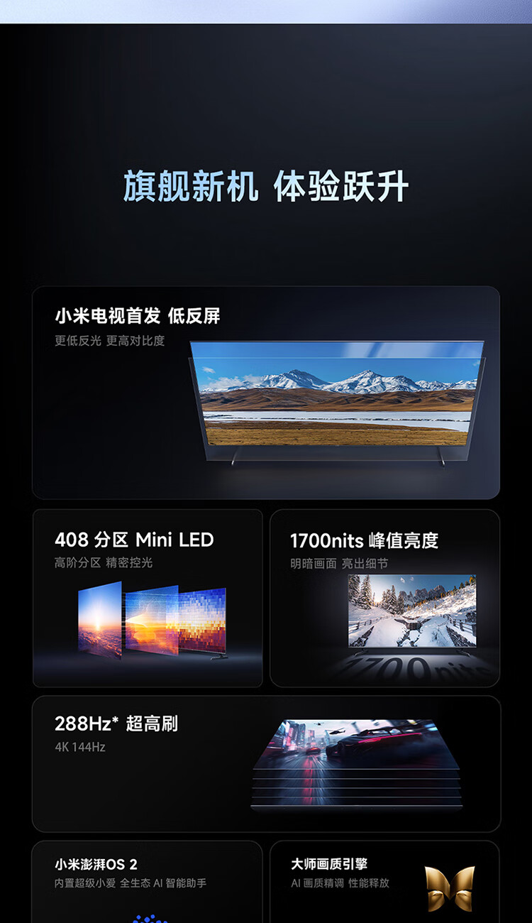 小米电视S55 Mini LED 2026 55英寸 576分区低反屏 2000nits峰值亮度 澎湃OS L55MC-S 国家补贴