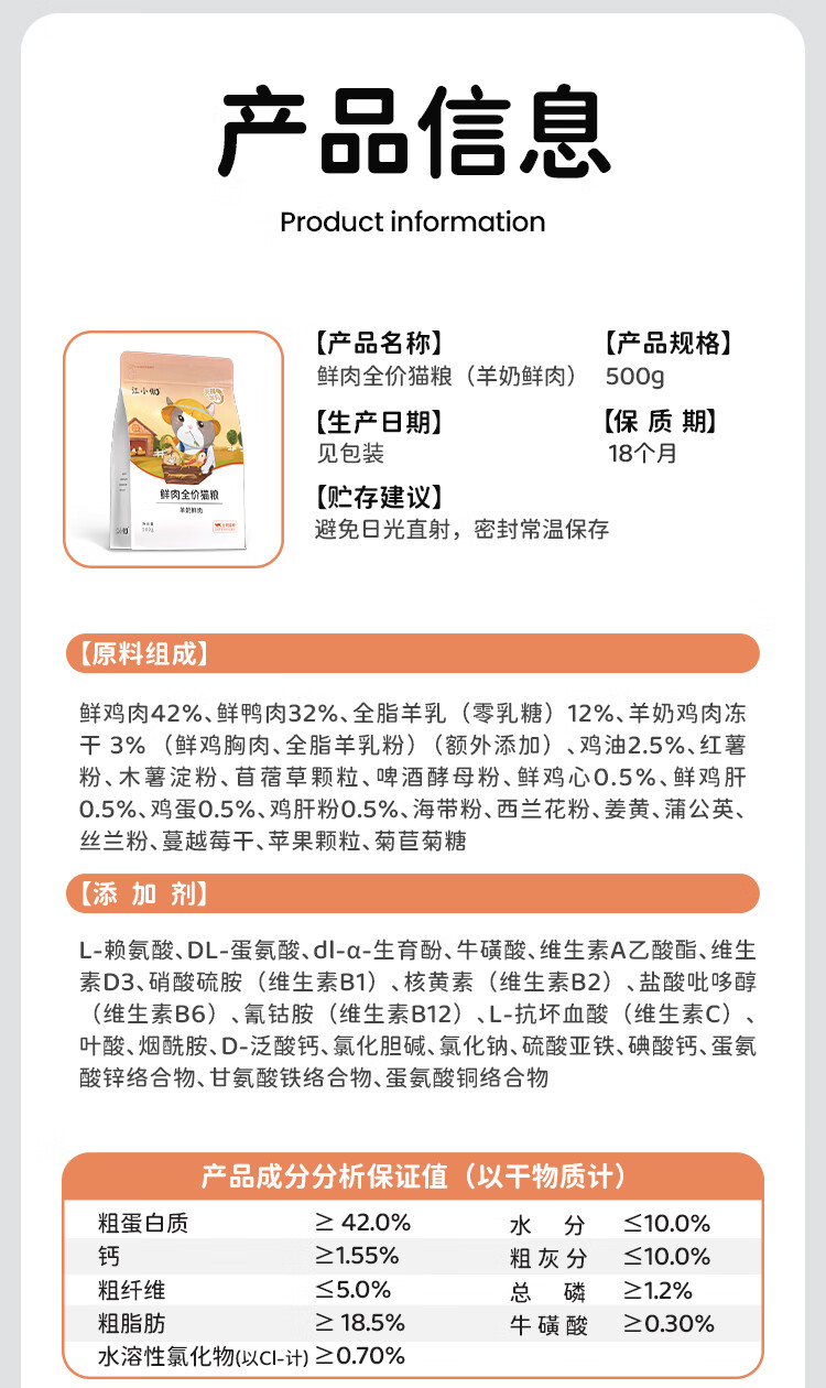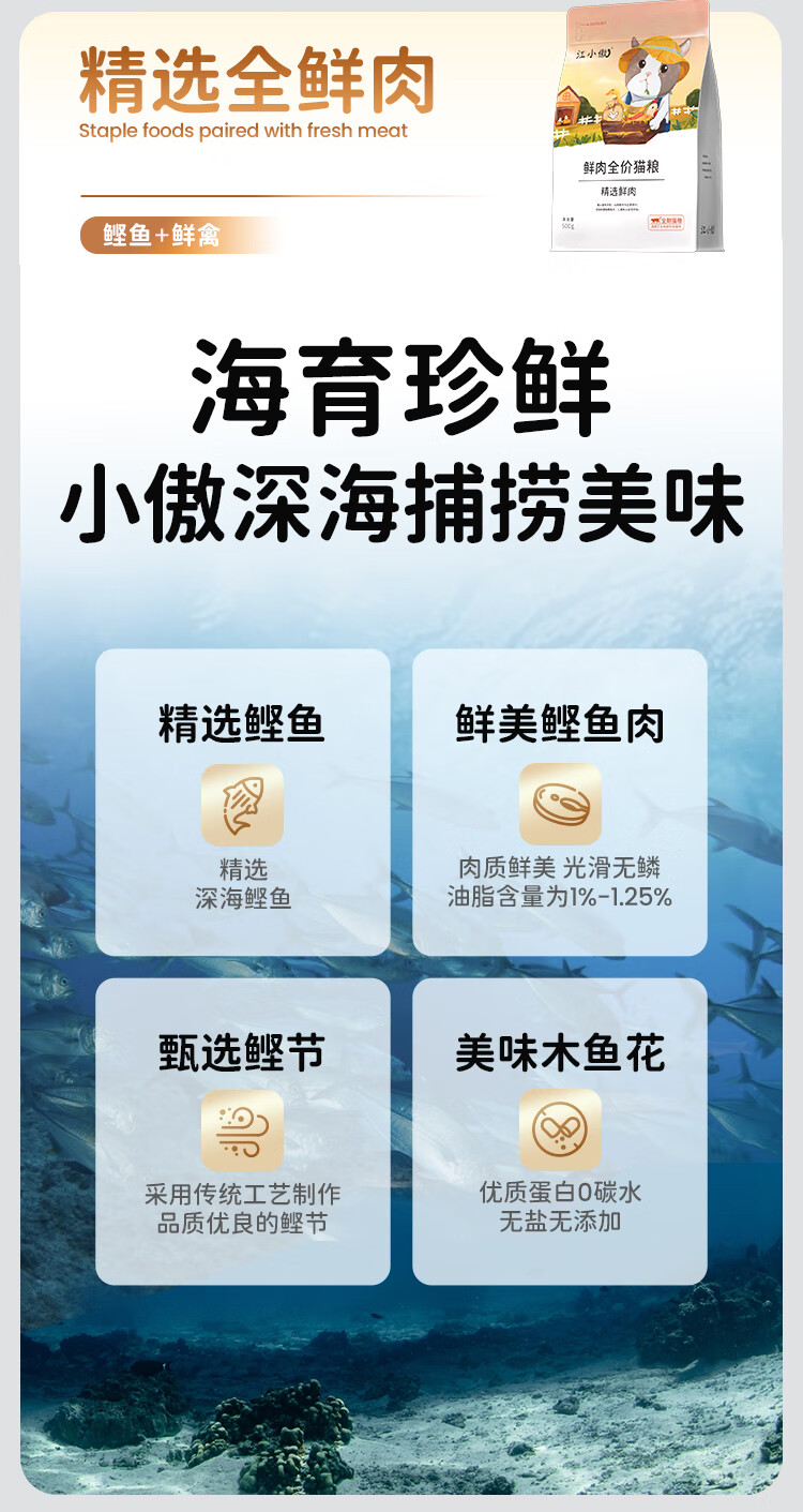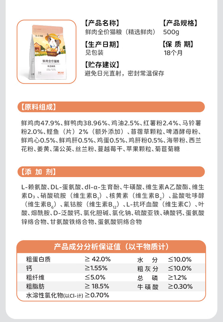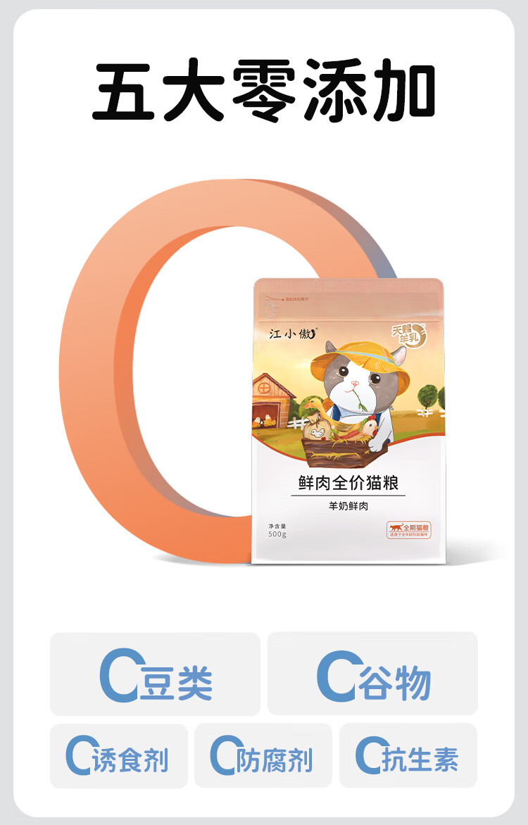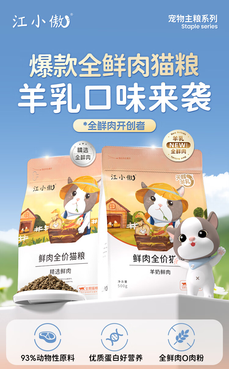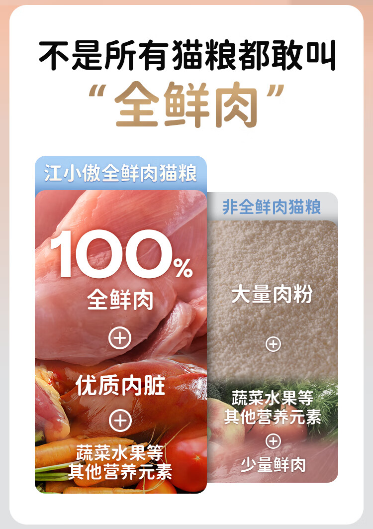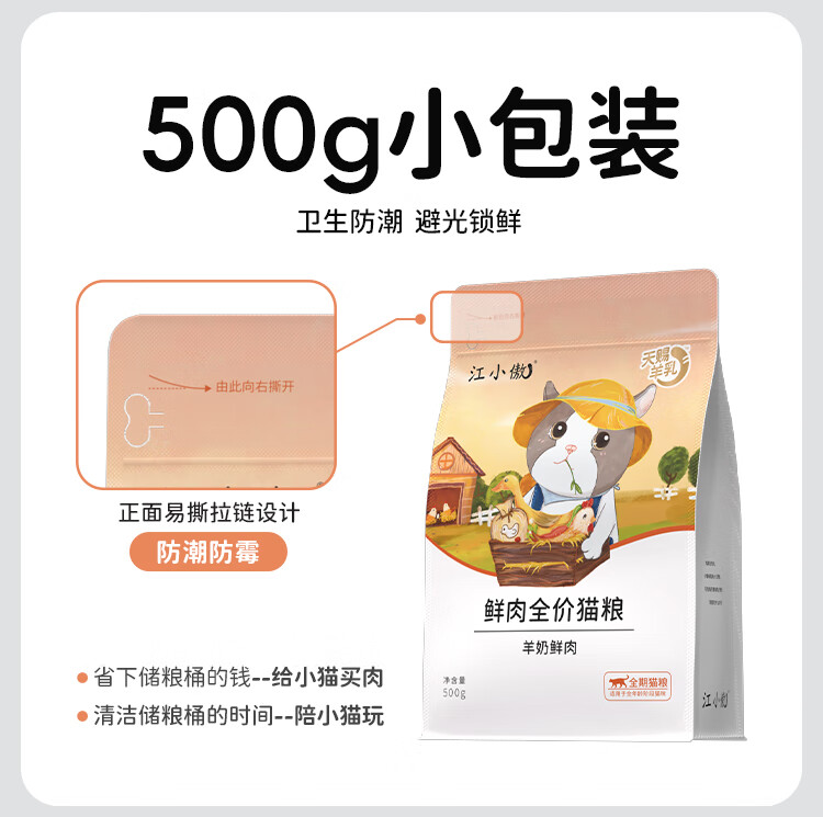 江小傲无谷鲜肉全价全期冻干猫粮幼猫成猫全阶段营养通用型猫粮 精选鲜肉1.5kg (1斤装3包)