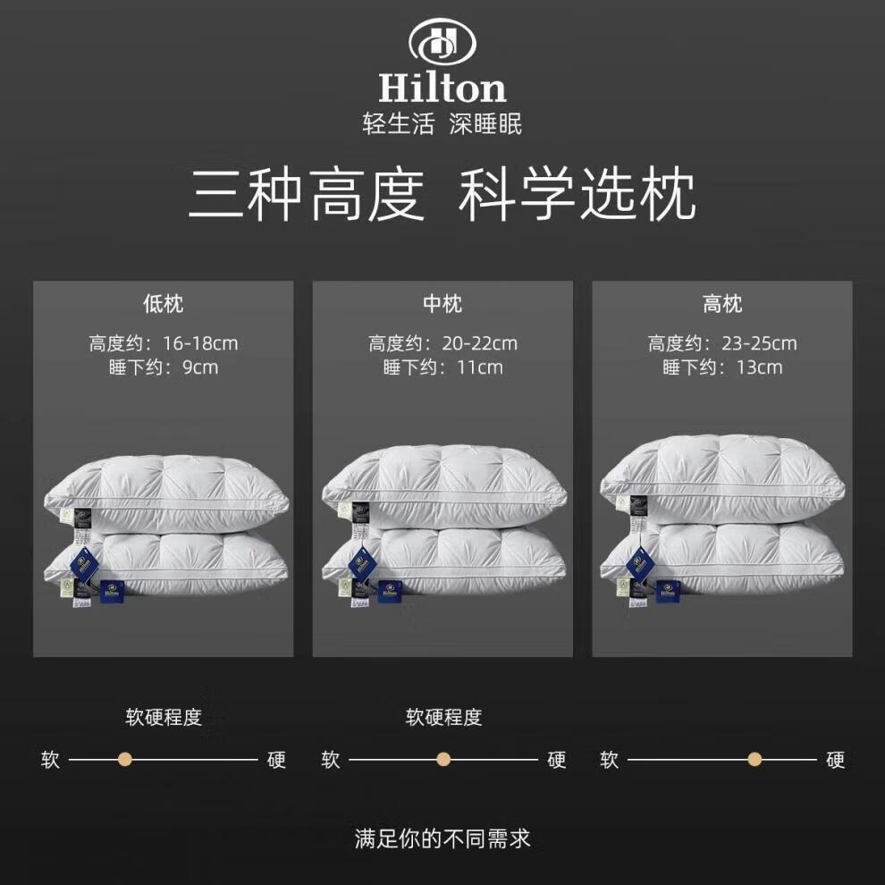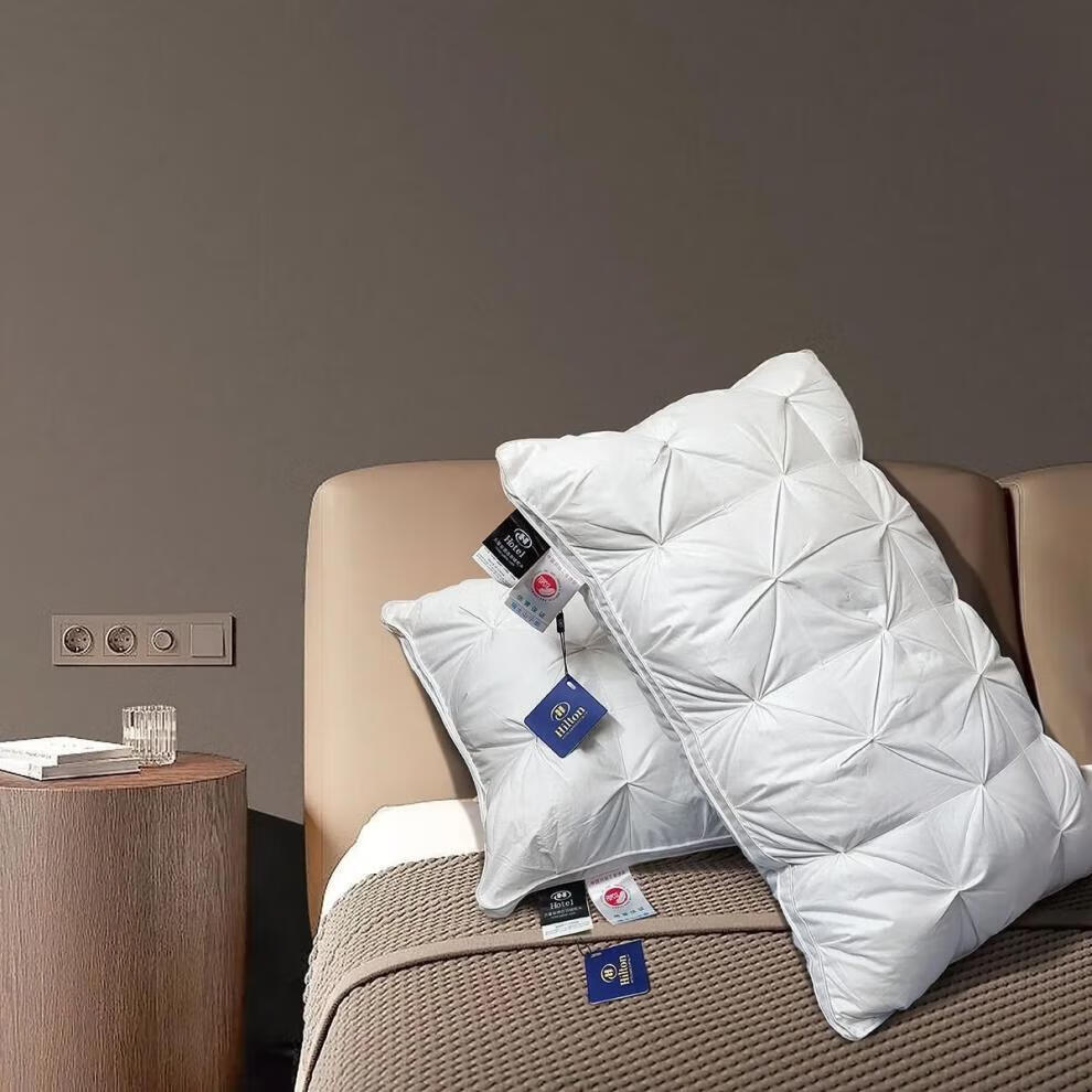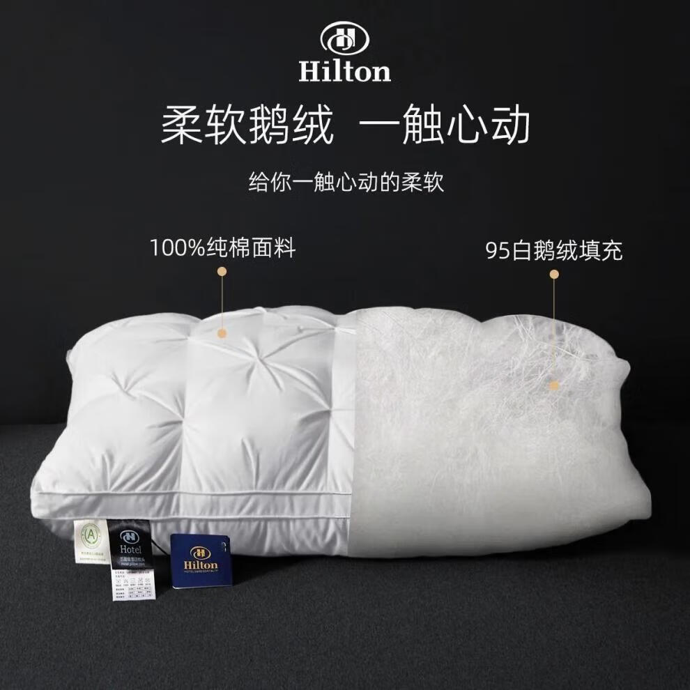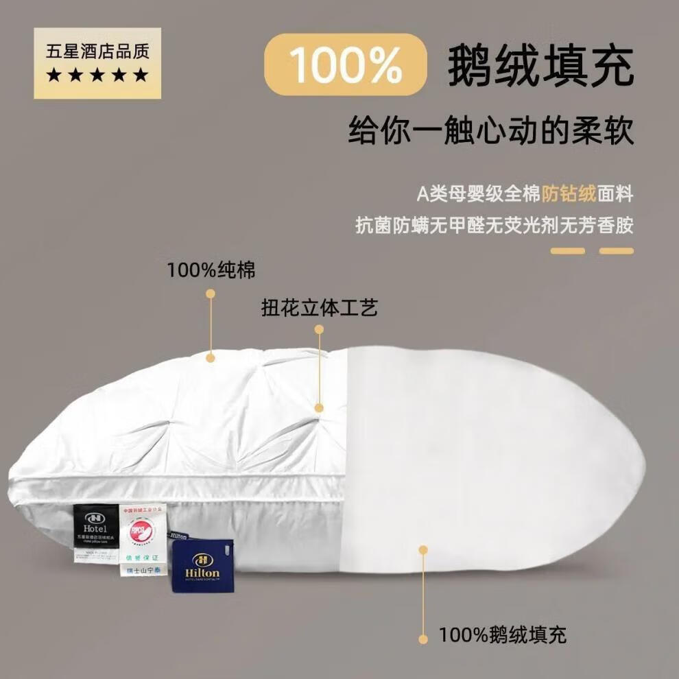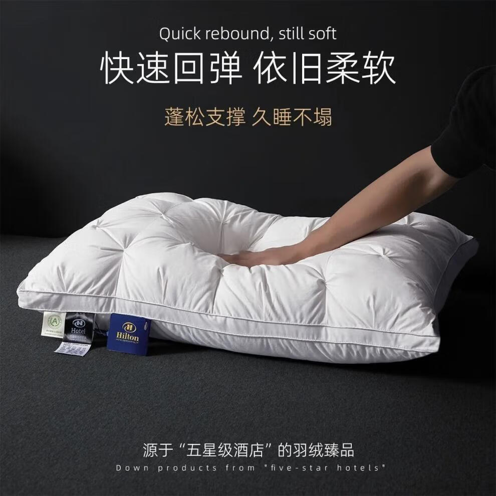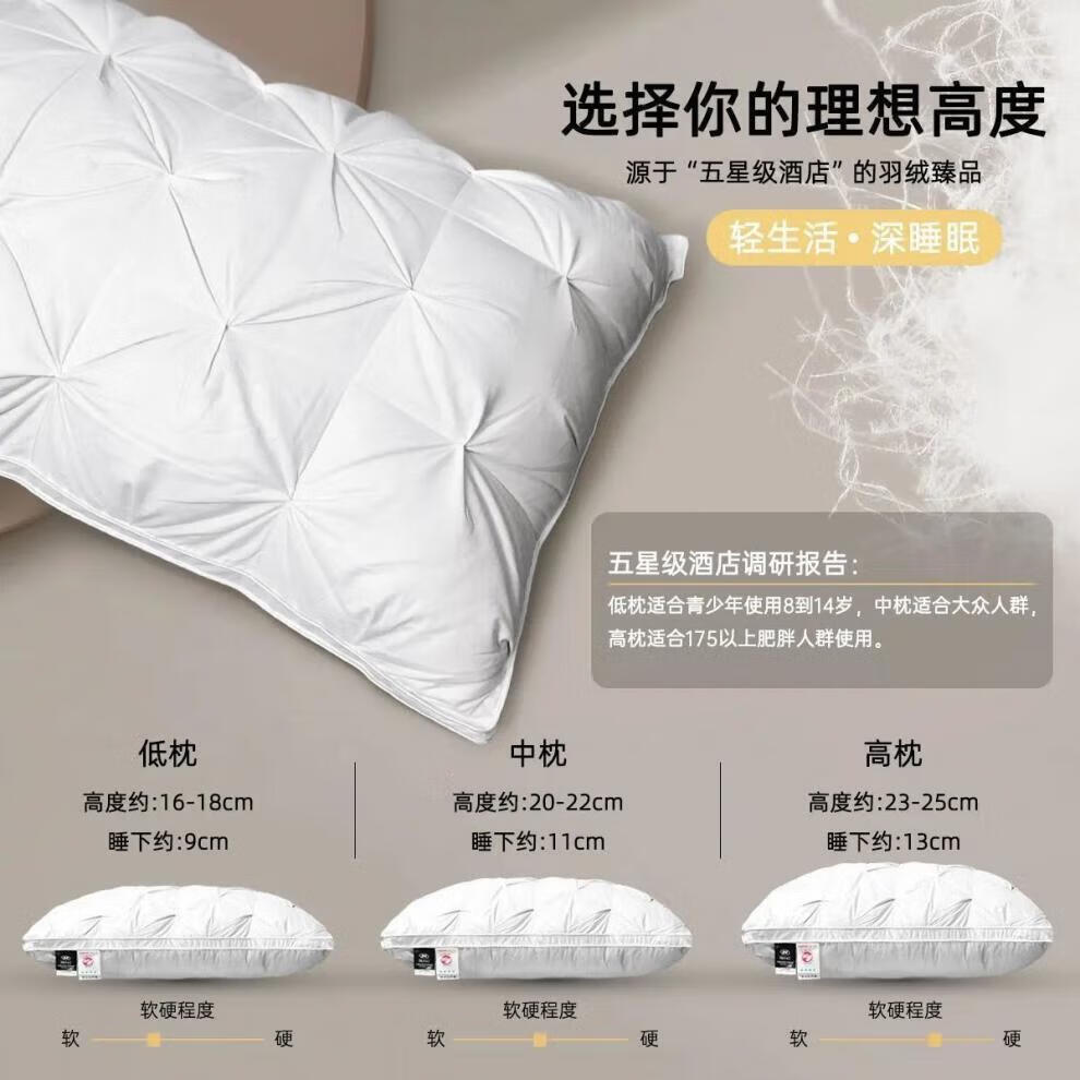 恒源祥羽绒枕头颈椎睡眠酒店95白鹅绒单人枕芯一对五星级A类白色不塌陷 低枕到手2只